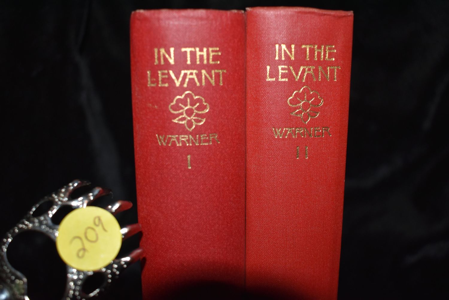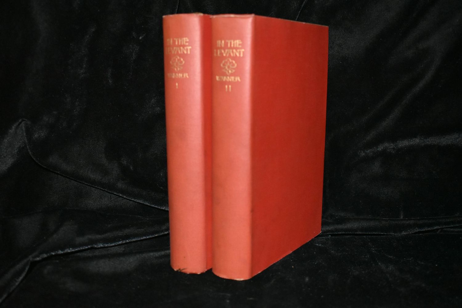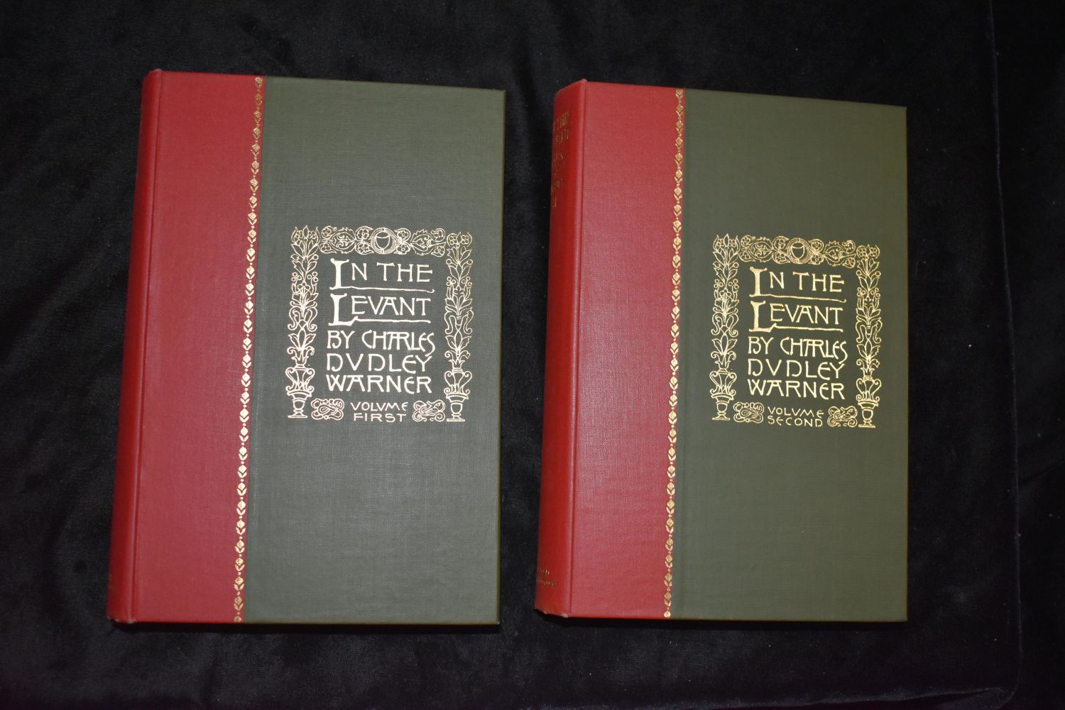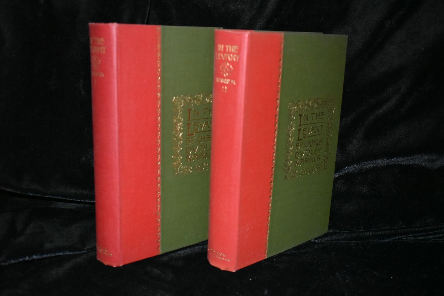 In the Levant by Warner, Charles Dudley, 2 volumes, photographic plates, gold foil on top page edges, original cloth, excellent condition, original red cloth dust-jackets, lettered in gilt on spines, Boston & New York, 1893.