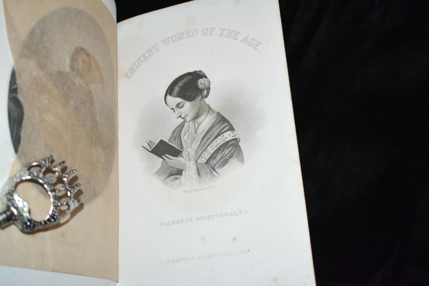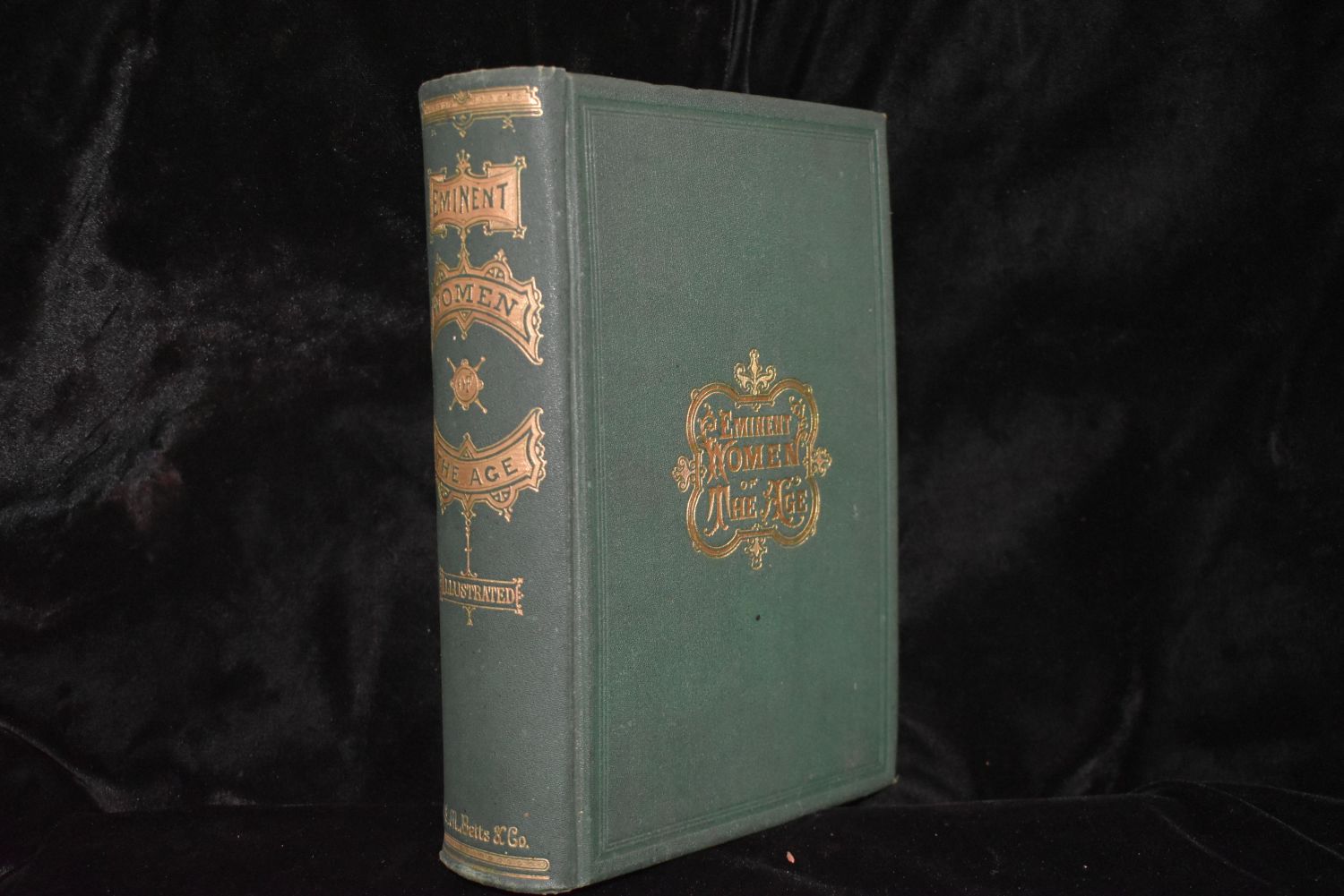 1869 EMINENT WOMEN OF THE AGE by many different authors. Published by S. M. Betts and Company 1869. 47 prominent women of the mid-1800s are featured, including Queen Victoria, Julia Ward Howe, Susan B. Anthony, Harriet Beecher Stowe and Florence Nightingale. Very Good Condition. Publishers Original Victorian era green cloth with Gold Gilt. Almost no shelf wear with some foxing to pages. Very Good Book. 628 pgs. 8 3/4" by 6 1/4"
