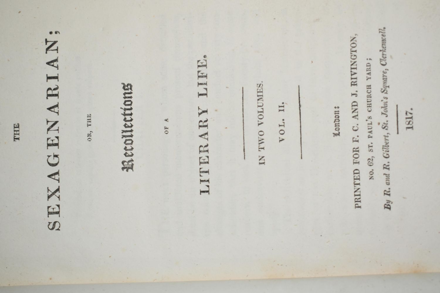 The Sexagenarian; Or, The Recollections of a Literary Life. Volume 1 and 2 by William Beloe. Published by F.C. & J Rivington (1817) RARE First Edition. Hardback Leather. Condition is fair. Both Have front covers that come off. Corner wear from use and shelving. Typical wear for books of their age. Pages are in good shape with very little foxing. 8 1/2" by 5 1/2"