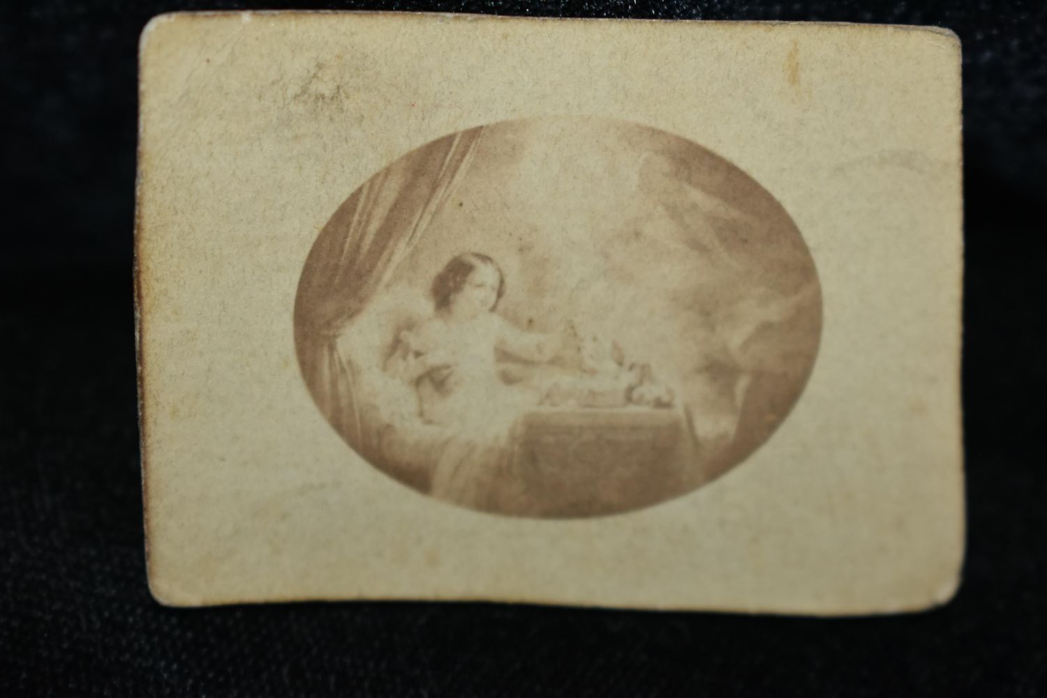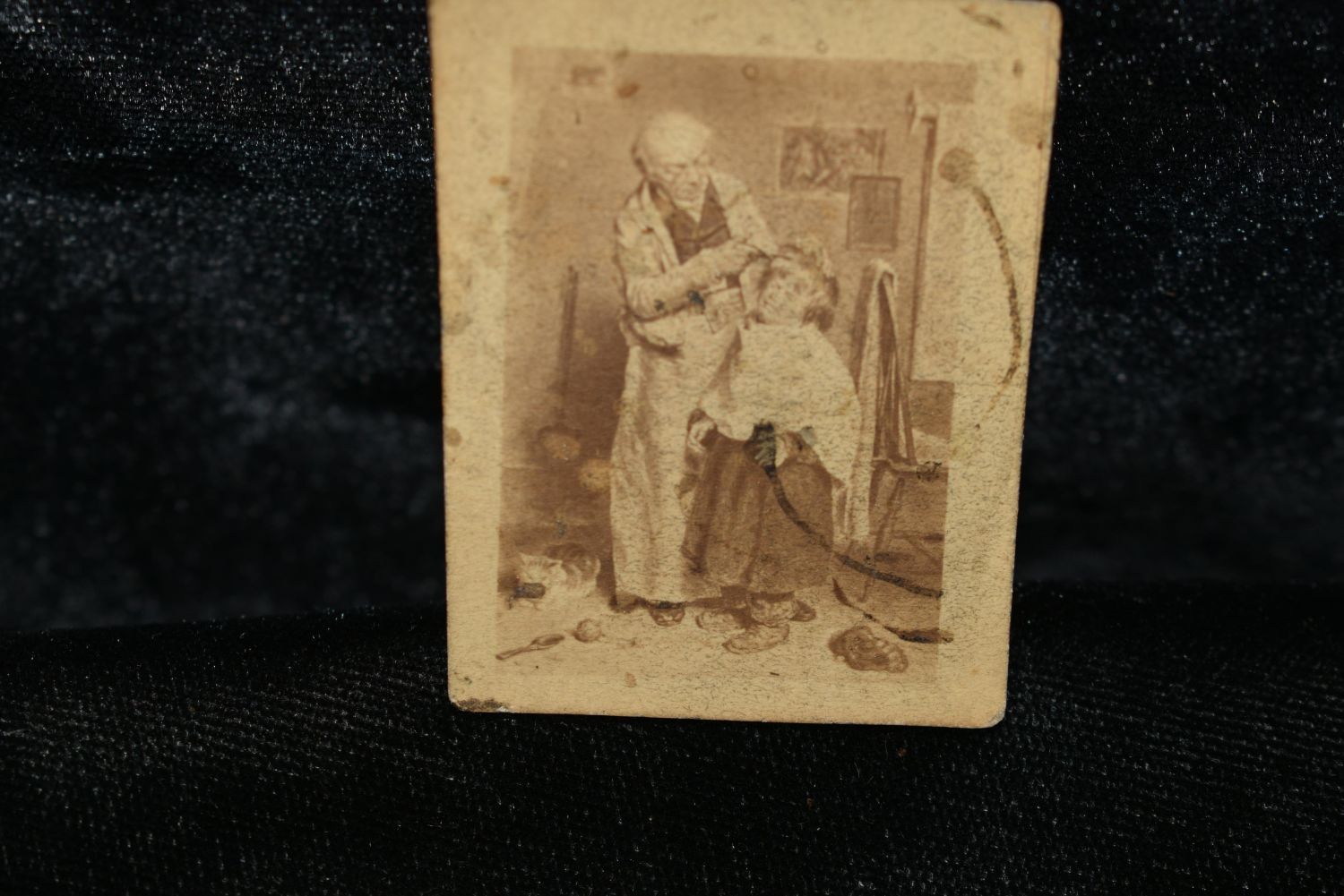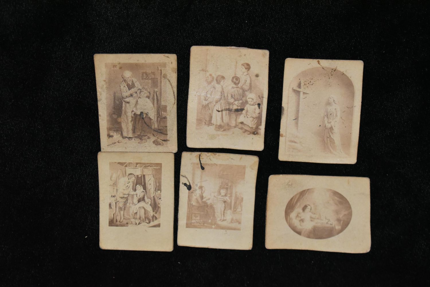 6 Miniature CDV’s from the mid to late 1800’s. No publisher shown on these cards. These cards depict children, a barber giving a hair cut and a religious picture. They are unevenly cut so that had to have been done by hand. Only thing i can guarantee is they were made pre-1900. Guessing mid-1800’s. 2 1/2" by 1 3/8"