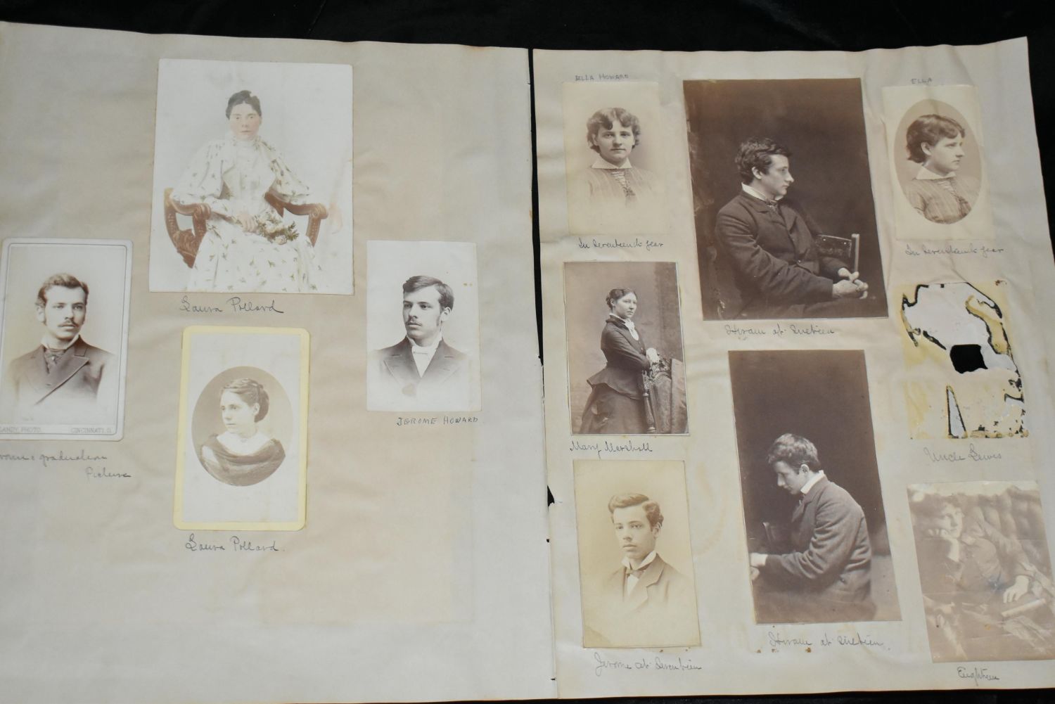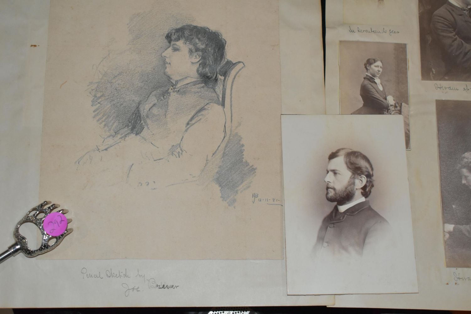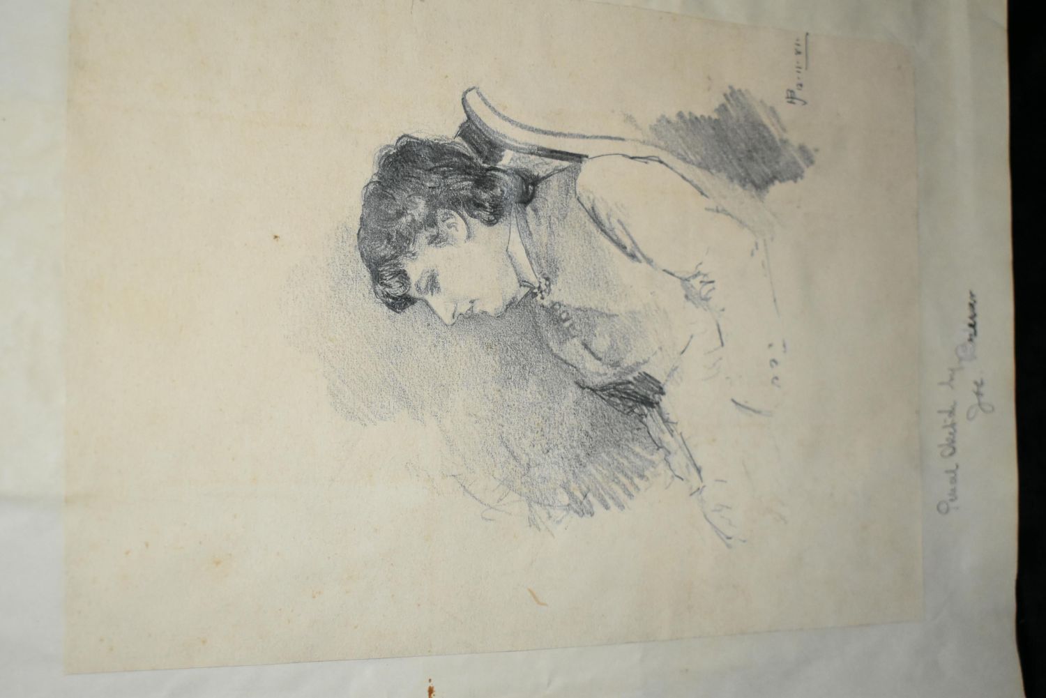 Early HENRY JOSEPH BREUER Portrait 1881. HENRY JOSEPH BREUER (Famous artist from San Francisco, California 1860-1932) Pencil Sketch Portrait of Dr. Ella Howard 1881, 11 in. by 7 1/2 in.. It is initialed by the artist in his fashion for the time. Contained in the photo Album was a photo of Joe Breuer (Picture goes with this lot) which was written below by Ella "Joe Breuer (Artist and Family Friend). Included is a page from the photo album that contains four photographs of Dr. Ella Howard from the 1870’s to early 1880’s. One is a tin. There are additional 1860-80’s photos on the back side of the pages, one is a tin, the artist and the doctor who was sketched. It is glued to the folio page so there is no removing photos from the back.