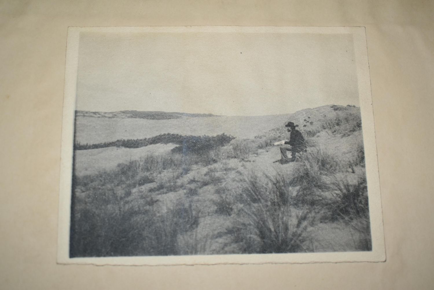 HENRY JOSEPH BREUER Picture Photo’s 1880’s. HENRY JOSEPH BREUER (Famous Artist from San Francisco, California 1860-1932) This page from the book has 2 photo’s of pictures that Joseph Breuer sent Elmira Howard in the 1880’s. On the back there is a picture/photo of Joseph Breuer studying an area that he is about to do a landscape picture of. And a photo of Jerome Bird Howard (Elmira’s brother inlaw) editor of the Phonographic Institute in Ohio. The page they are attached to is 11" by 14".