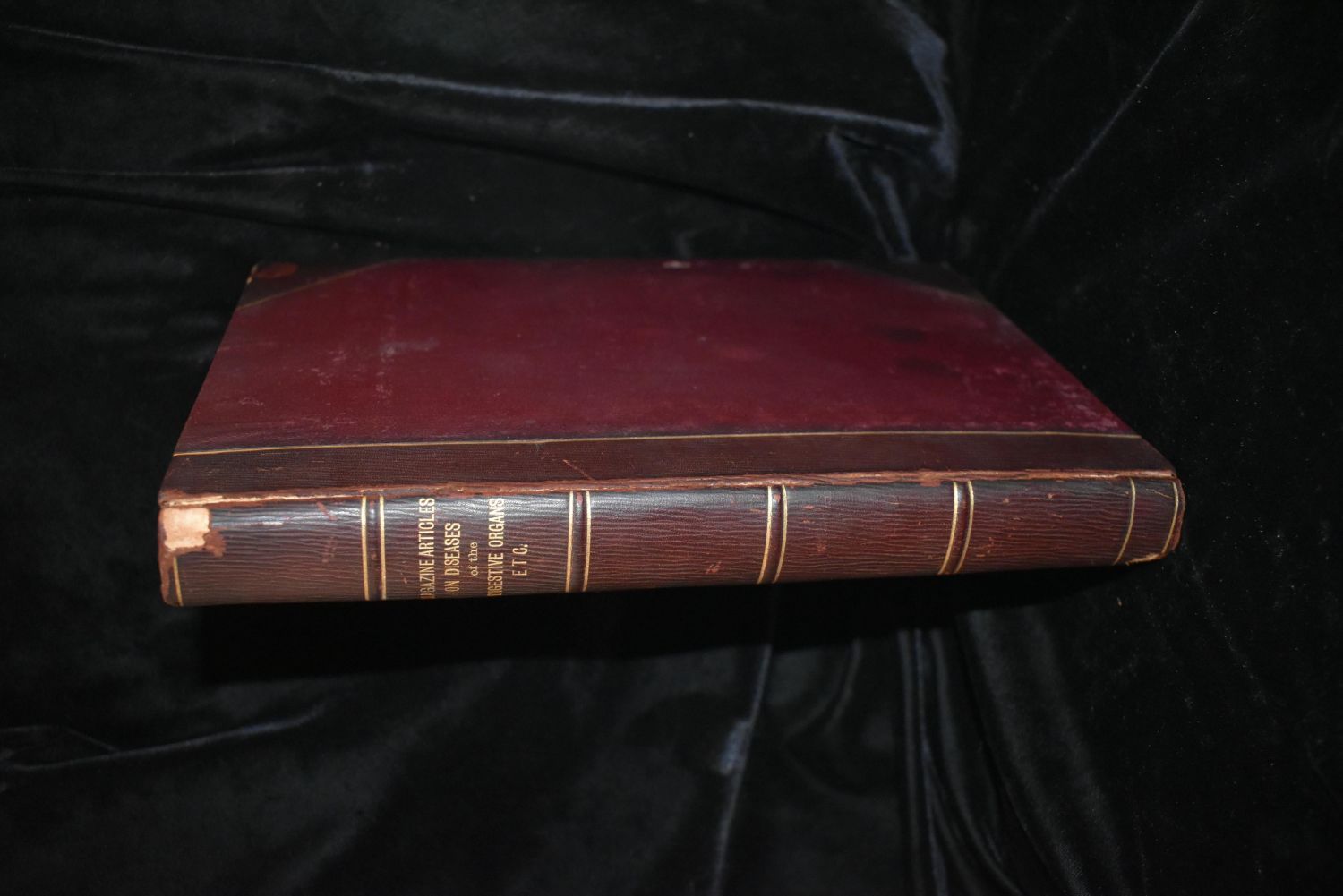 Digestive Organ Magazine Articles 1894 Hardback. Compiled magazine articles in a leather and cloth hardback nearly port folio size. Contains pictures, illustrations and articles pertaining to digestive organs and health. Was part of an 1800’s doctors medical library. Has shelf wear to corners cover and spine. 1 1/4" thick 11 1/2" by 8 3/8"