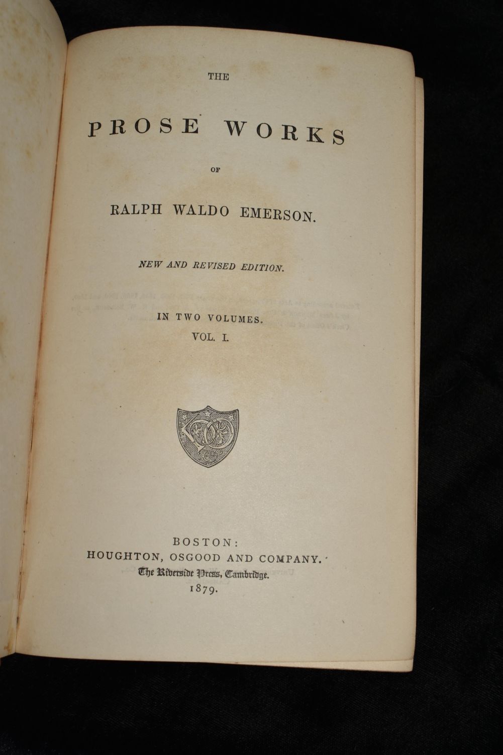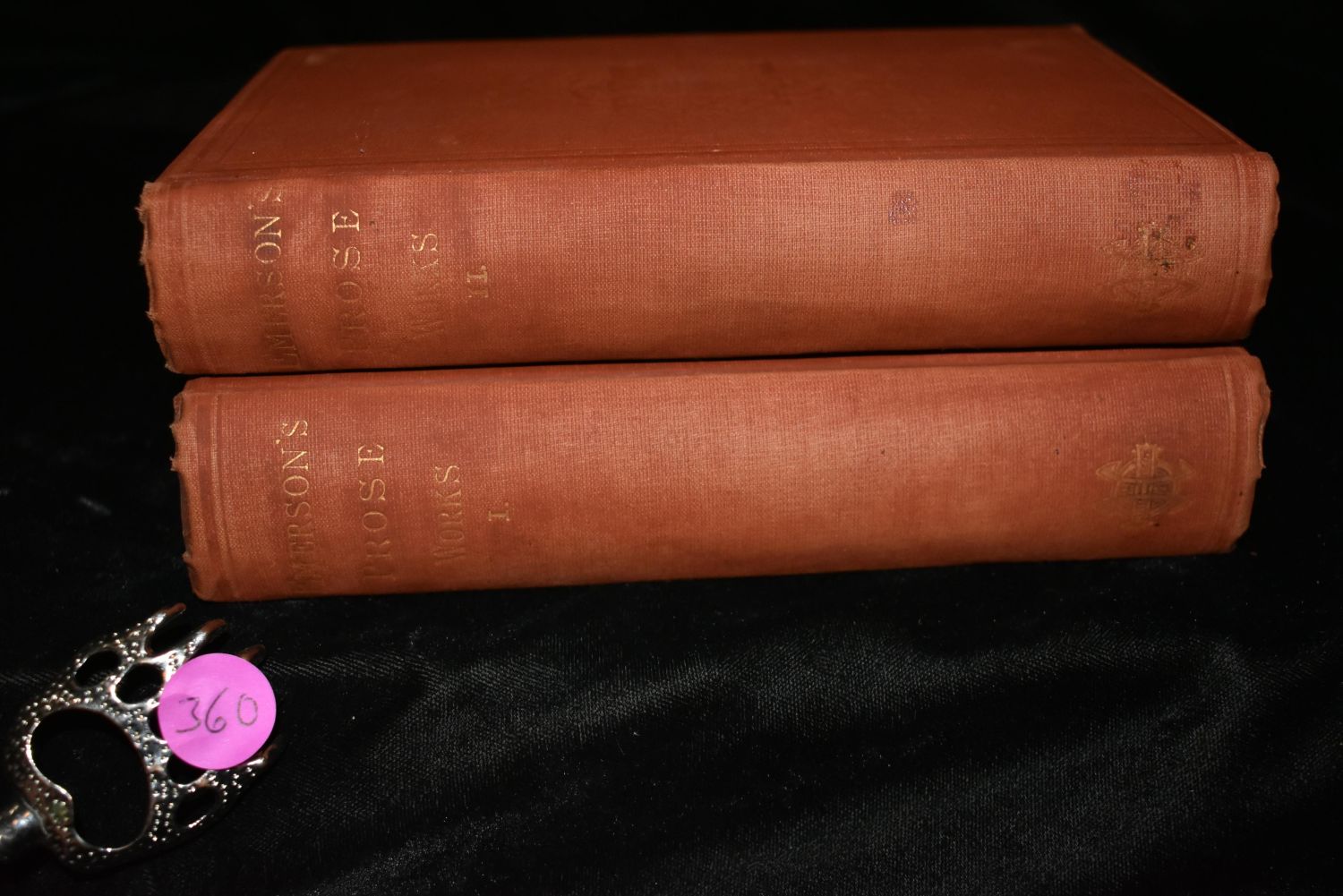 THE PROSE WORKS OF RALPH WALDO EMERSON: Vol. 2 Emerson, Ralph Waldo Published by Houghton, Osgood & Co., Boston (1879). Publishers red cloth with gold print. Good Condition. Some shelf wear with fading to cover. 566 and 491 pgs. 8 5/8" by 5 1/8"