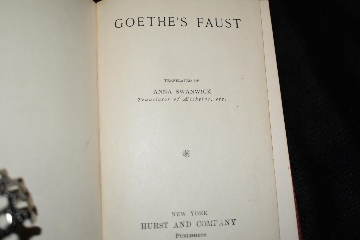 Goethe’s Faust by Goethe, Johann Wolfgang von, and Anna Swanwick, (Translated by). Published by Hurst and Company, New York 1890. Good condition. Fading to spine and a soiling inside the covers. 261 pgs 6" by 4 3/8"