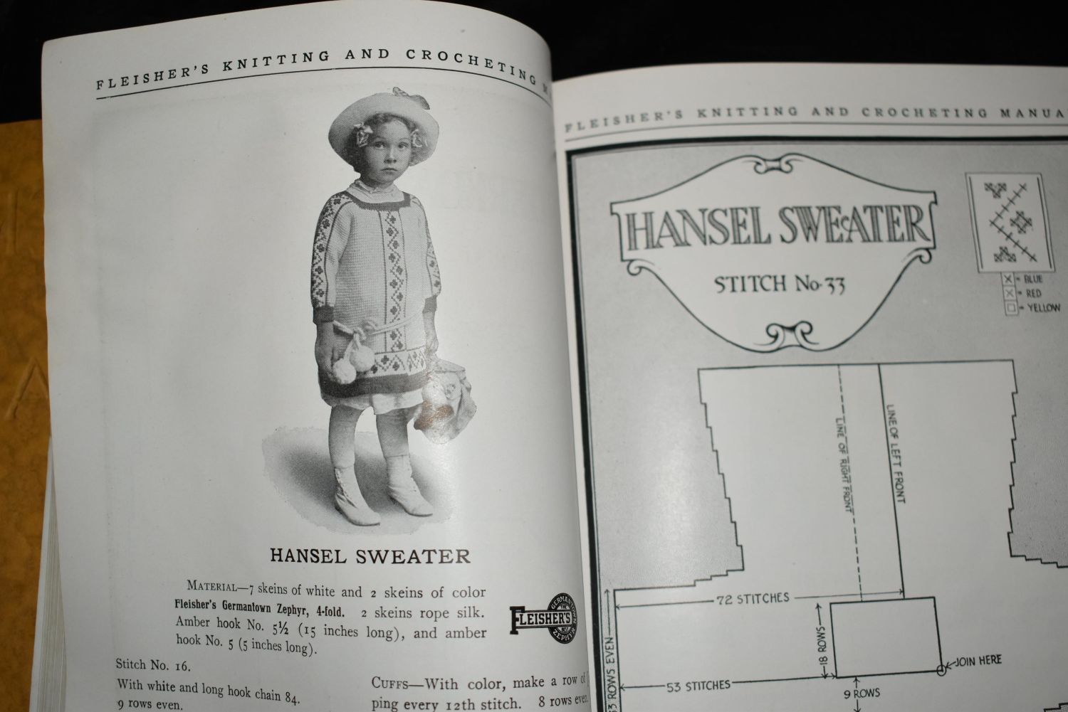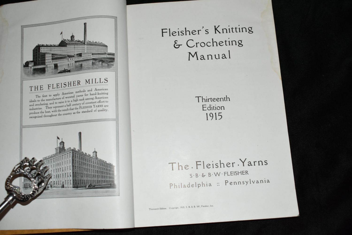 Fleisher’s Knitting & Crocheting Manual – 13th Edition by S.B. & B.W. Fleisher, Philadelphia. Published by Fleisher Yarns (1915). Softback in Very Good Condition. Minor shelf wear. Loaded with pictures and illustrations from the early 1900’s era. Has a few patterns on notes that were still in the book. I left those for future owner. 207 pgs 9 1/2" by 6 7/8"