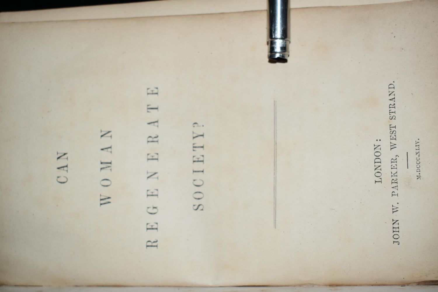 Can woman regenerate society? by Anne Richelieu Lamb Dryden. Published by London: John W. Parker 1844. Publishers original soft cover. Very Good Condition for a soft cover of its age. 183 pages 6 1/2" by 4 1/8"