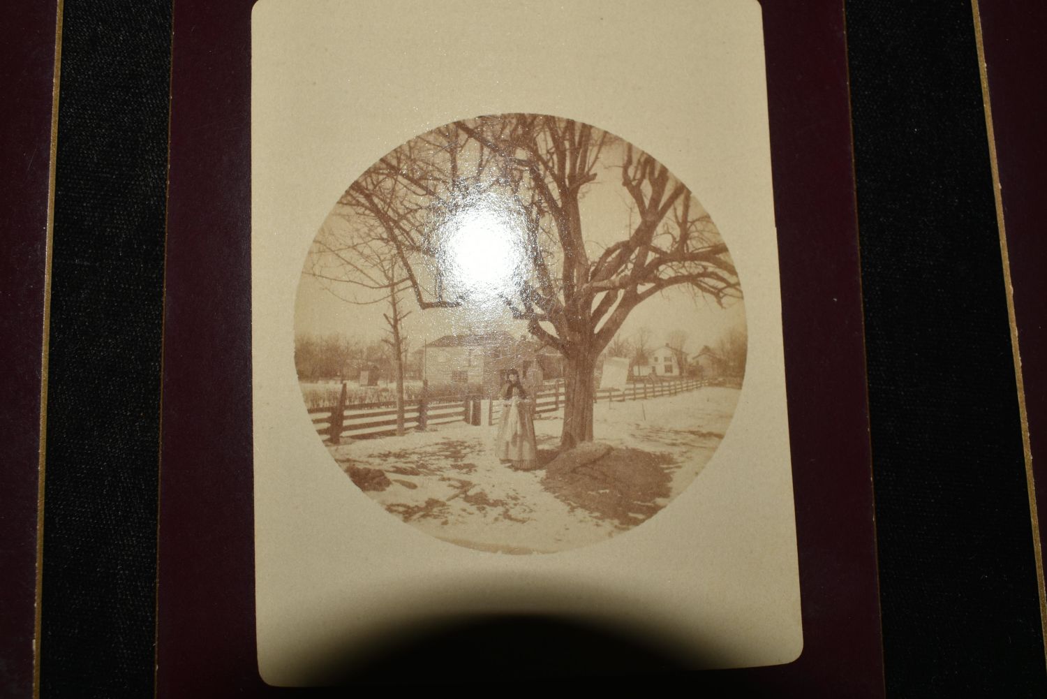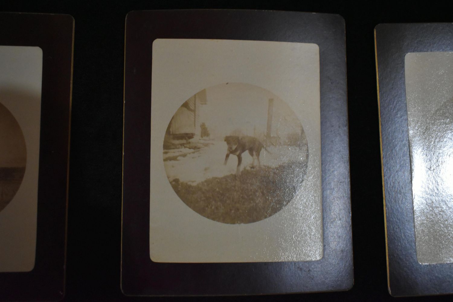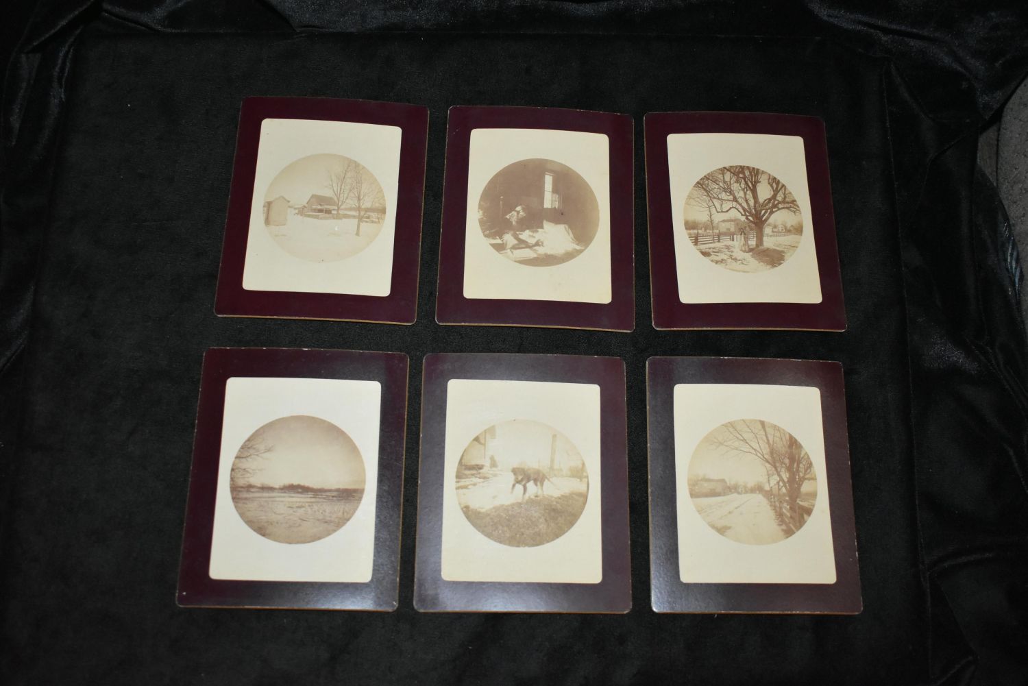 These are some of the earliest of kodak pictures (1880’s) by Manufacturers of the Kodak Camera, The Eastman Company, Rochester N.Y. By far the most significant event in the history of amateur photography was the introduction of the Kodak #1 camera in 1888. Invented and marketed by George Eastman (1854 to 1932), a former bank clerk from Rochester, New York, the Kodak was a simple box camera that came loaded with a 100-exposure roll of film. All pictures are in very good condition. I believe they are photo’s taken in Ohio based on the collection they are from. Picture of a girl holding what looks like a big doll or maybe a baby under a tree in winter. Another is a picture of a girl sewing. Picture of someones dog…, and 3 farm photo’s one includes the outhouse. 5 1/4" by 4 1/4"