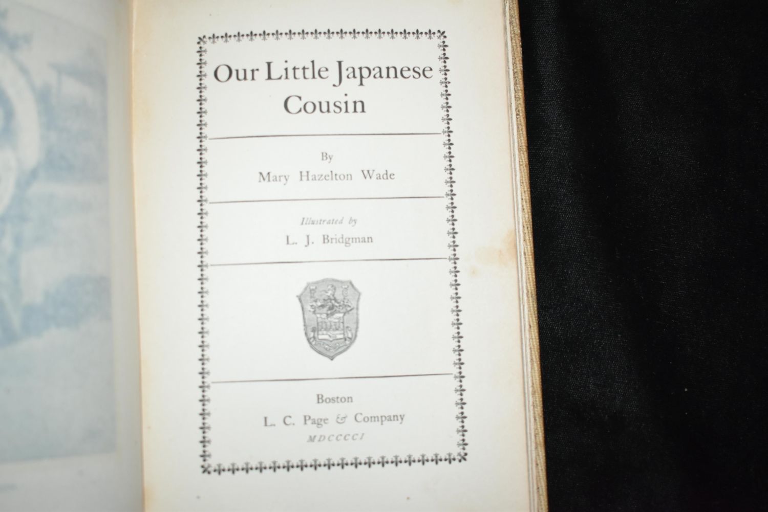 Our Little Japanese Cousin by Wade by Mary Hazelton Wade. Published by L. C. Page & Company, Boston 1901. Original hardback with decorative cloth cover. Good condition for its age. 66 pgs plus adds. 7 5/8" by 5 3/8"
