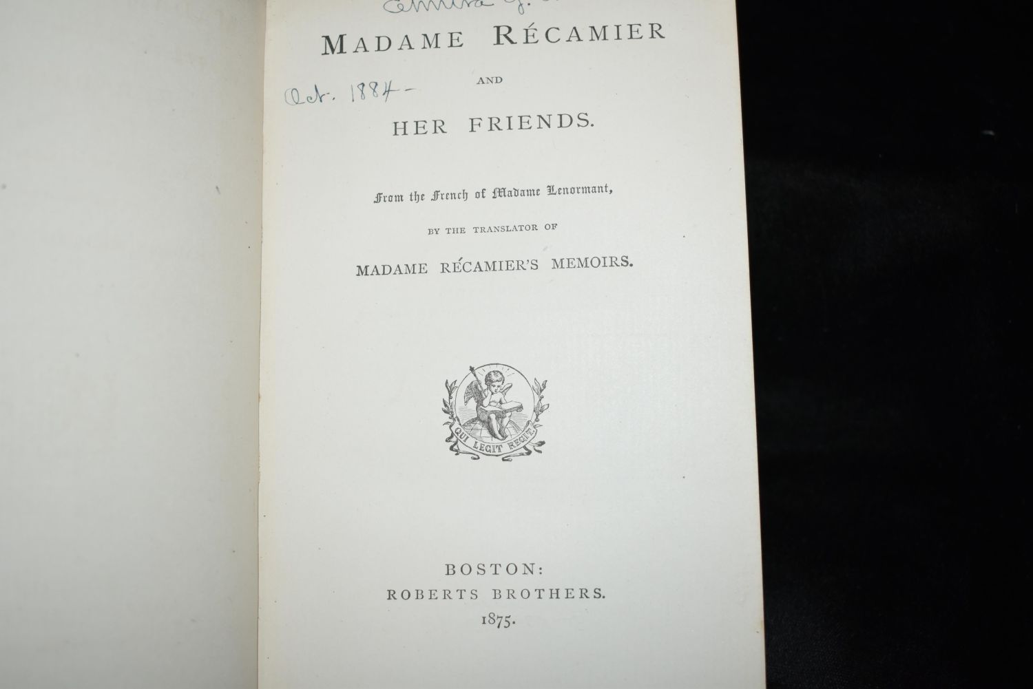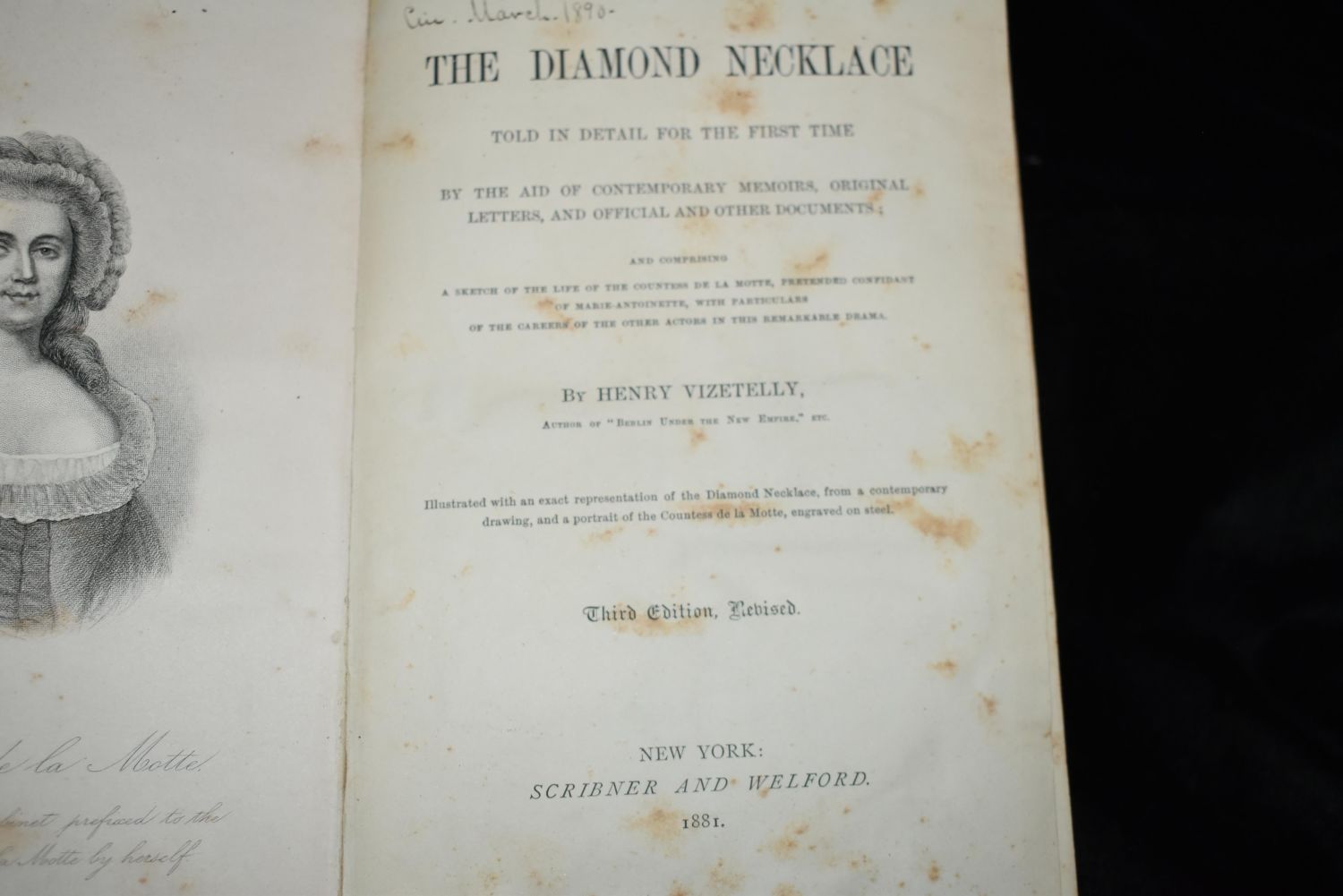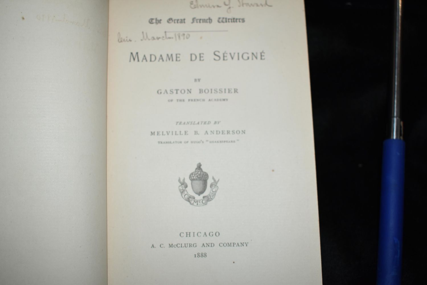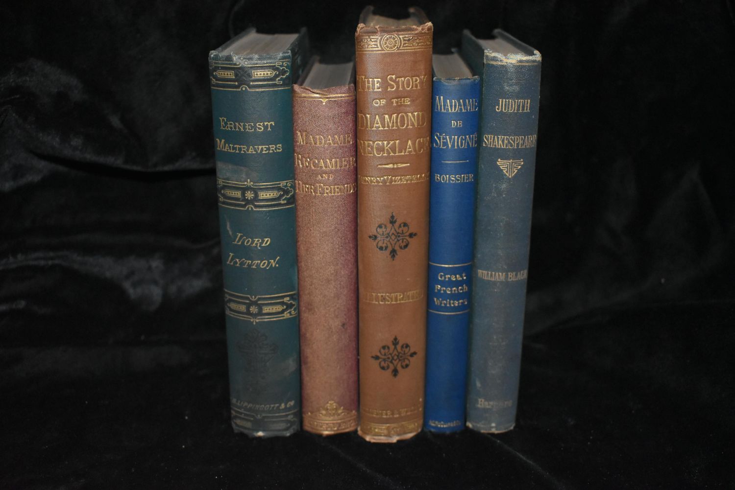 Judith Shakespeare by William Black 1884; Madame De Sevigne by Melville B. Anderson 1888; The Story of the Diamond Necklace by Henry Vizetelly 1881; Ernest Maltravers but Sir Edward Lyton 1879; and Madame Reclaimier and her Friends 1875. All in Good or better condition.