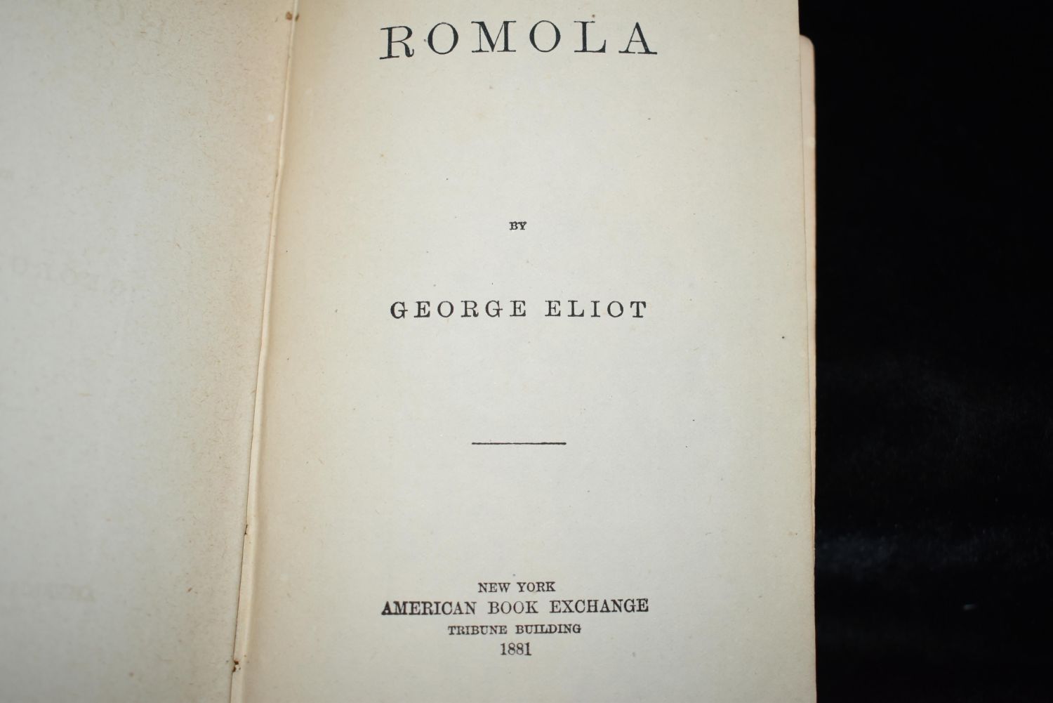 Romala by George Eliot. Published by American Book Exchange 1881. Good condition for its age. Some shelf wear. 446 pgs 6 1/2" by 4 3/4"
