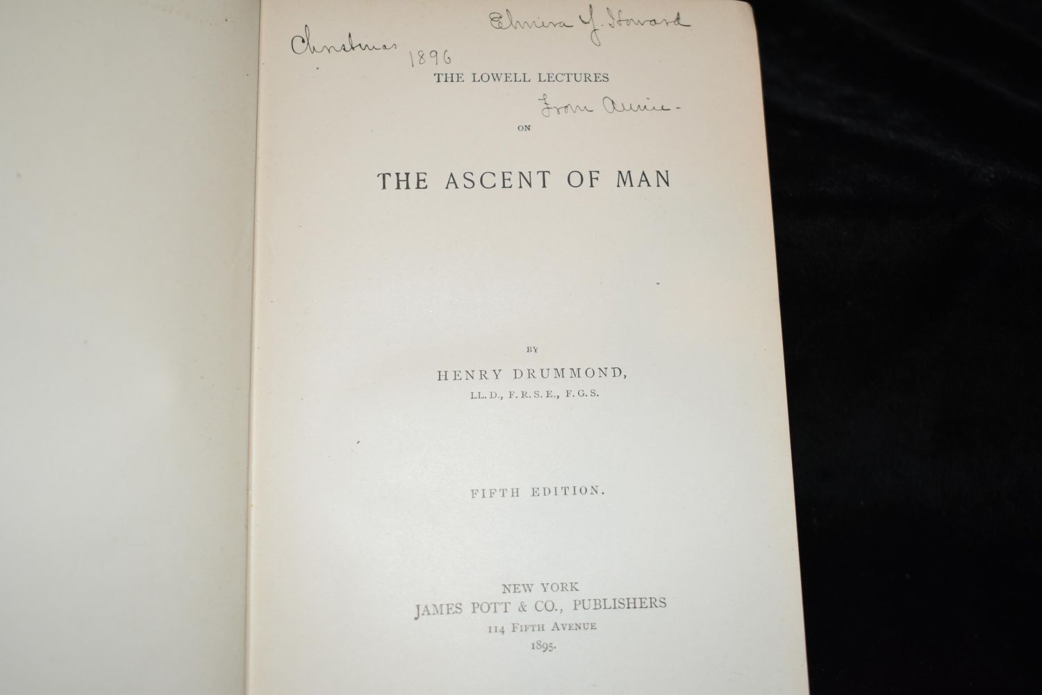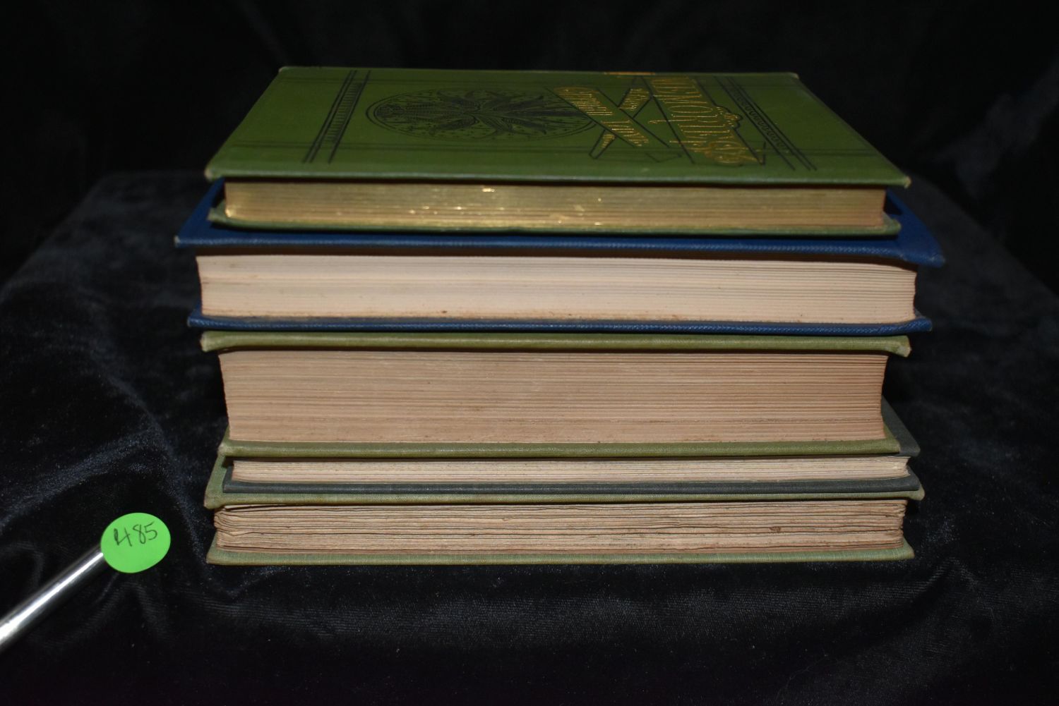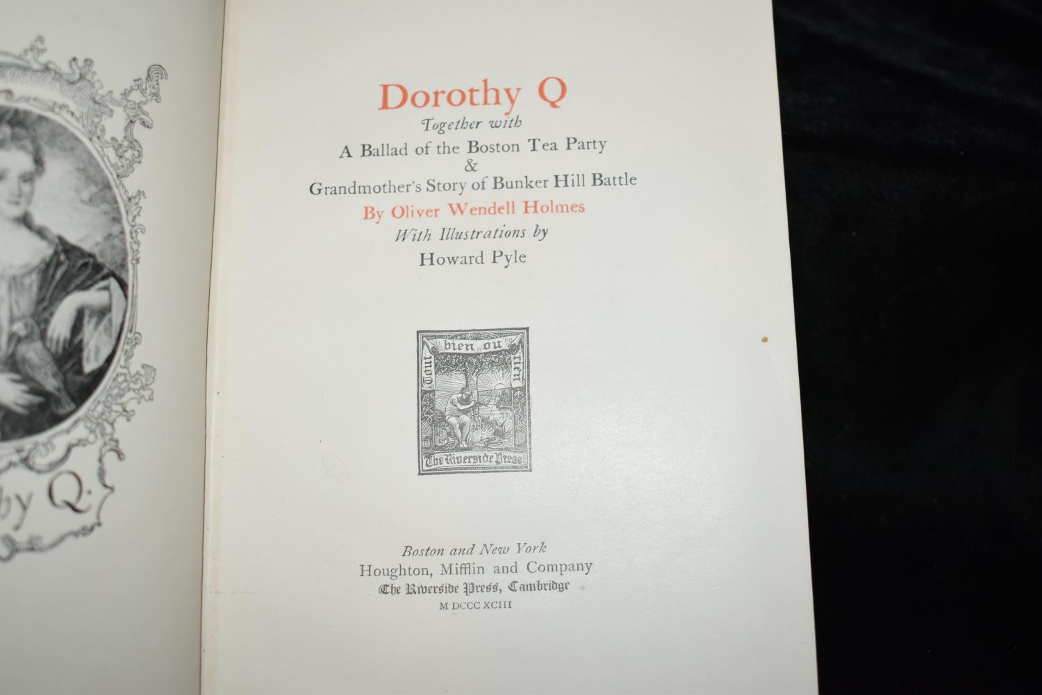 Dorothy Q ; together with A ballad of the Boston Tea Party ; & Grandmother’s story of Bunker Hill Battle by Oliver Wendell Holmes and Howard Pyle 1883; The Lowell Lectures on the Ascent of Man by Henry Drummond; Memories; A Story of German Love by F Max Muller 1885; Elizabeth and her German garden by Mary Annette von Arnim 1899; and Tales from Shakespeare by Charles and Mary Lamb 1896. All in Very Good condition. Tallest book of the five is 8 1/8" by 5 1/8"
