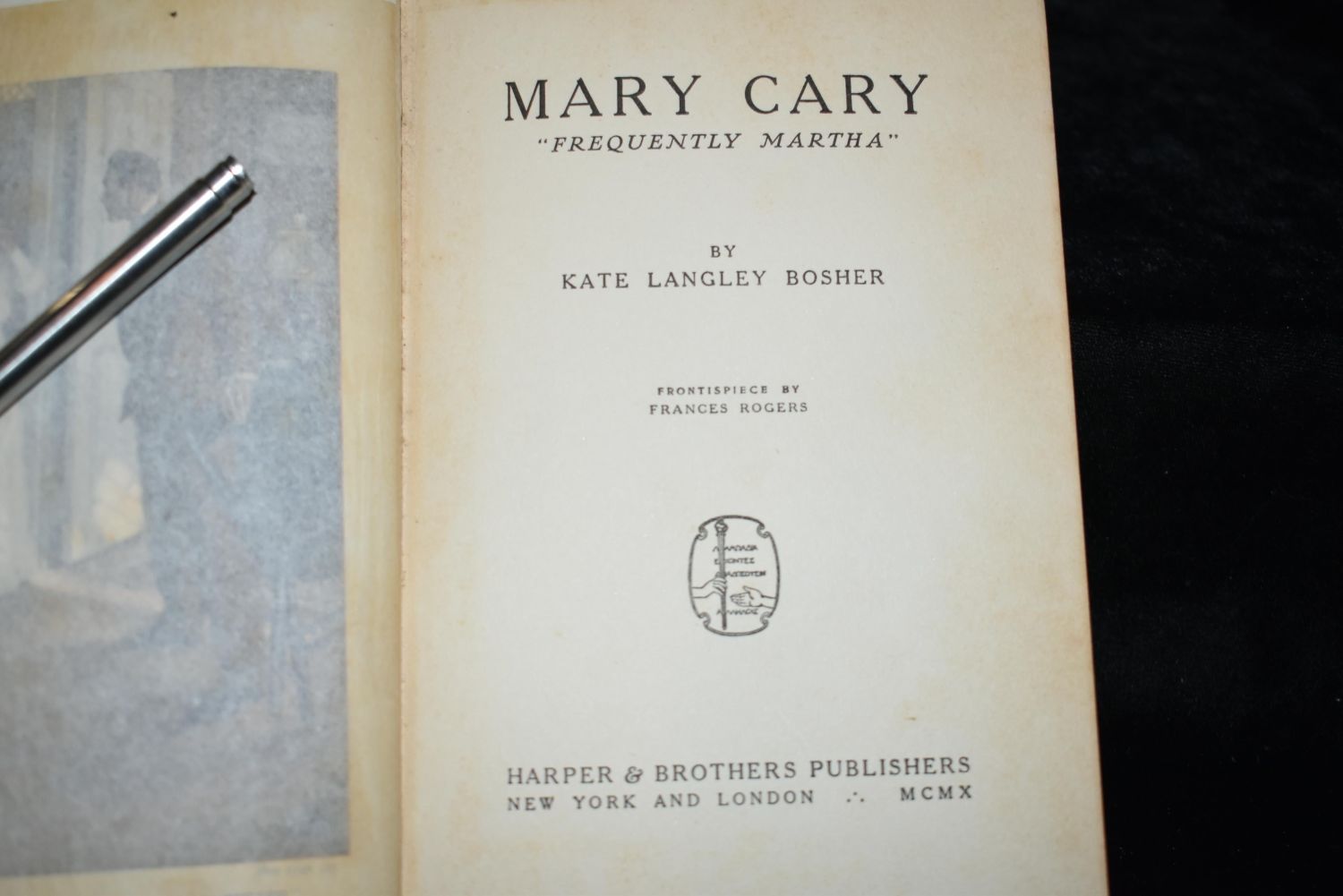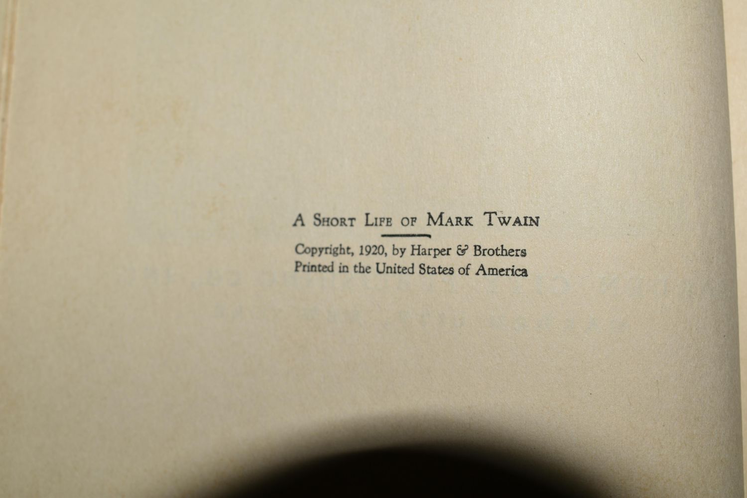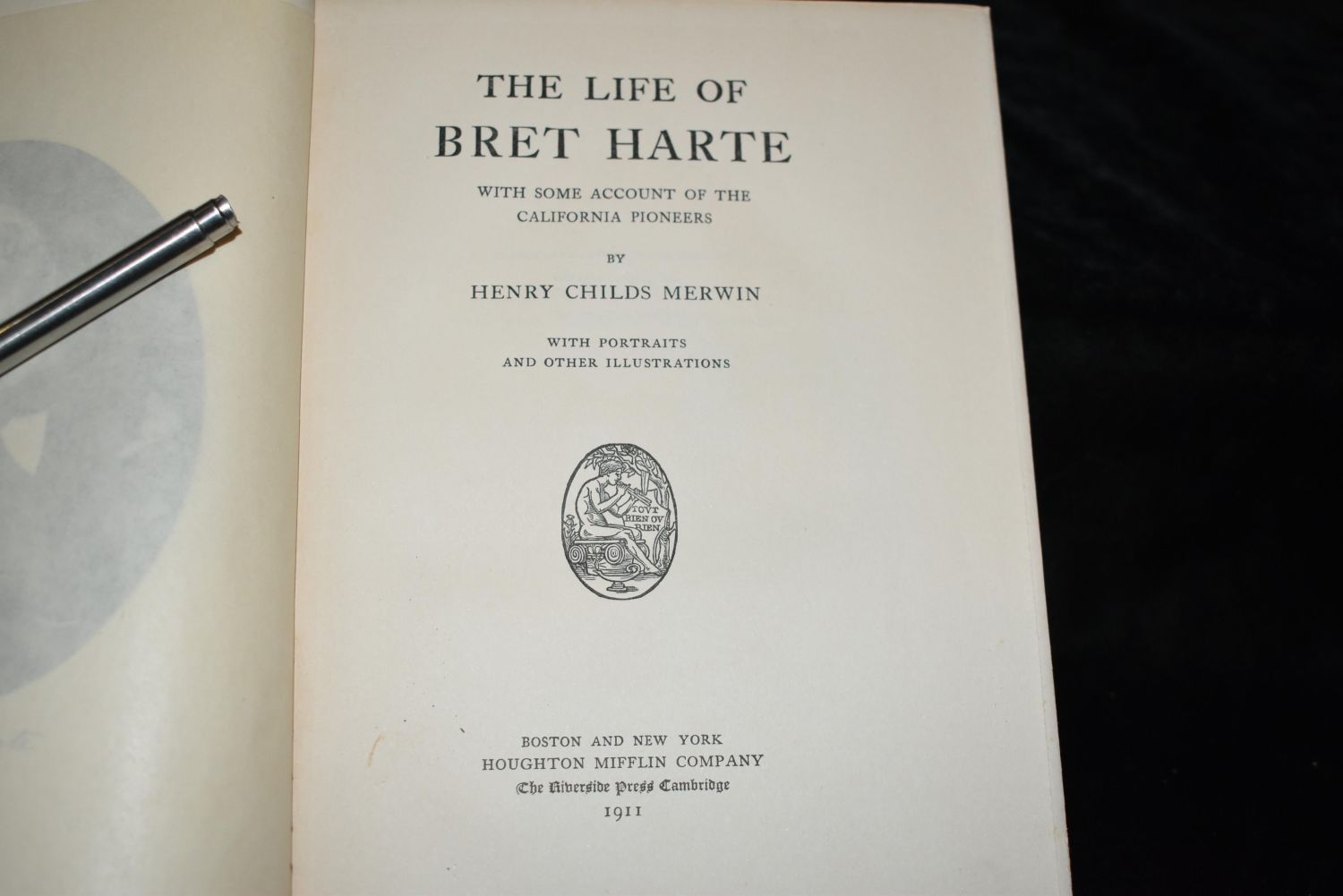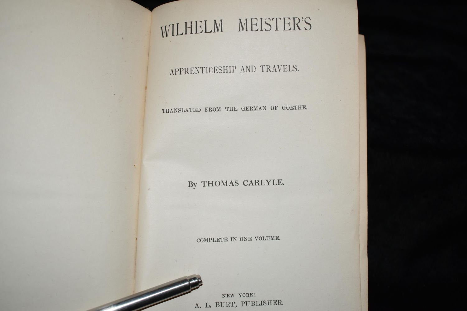 Wilhelm Meister’s Apprenticeship and Travels by Johann Wolfgang von Goethe 1900; A Short Life of Mark Twain by Albert Paine 1920; The Adventure’s of Elizabeth in Rugen by Elizabeth von Arnim 1904; Mary Cary by Kate Langsley Bosher 1910; and the Life of Bret Harte by Henry Merwin 1911. All books in good to very good condition. Tallest book is 8 7/8" by 6 1/8"