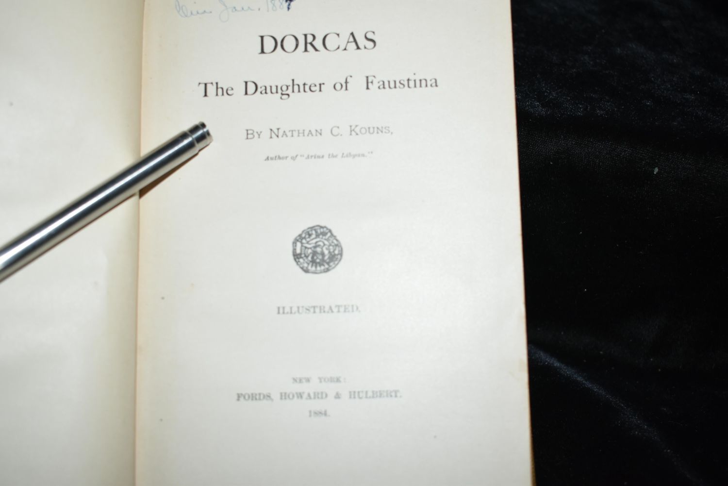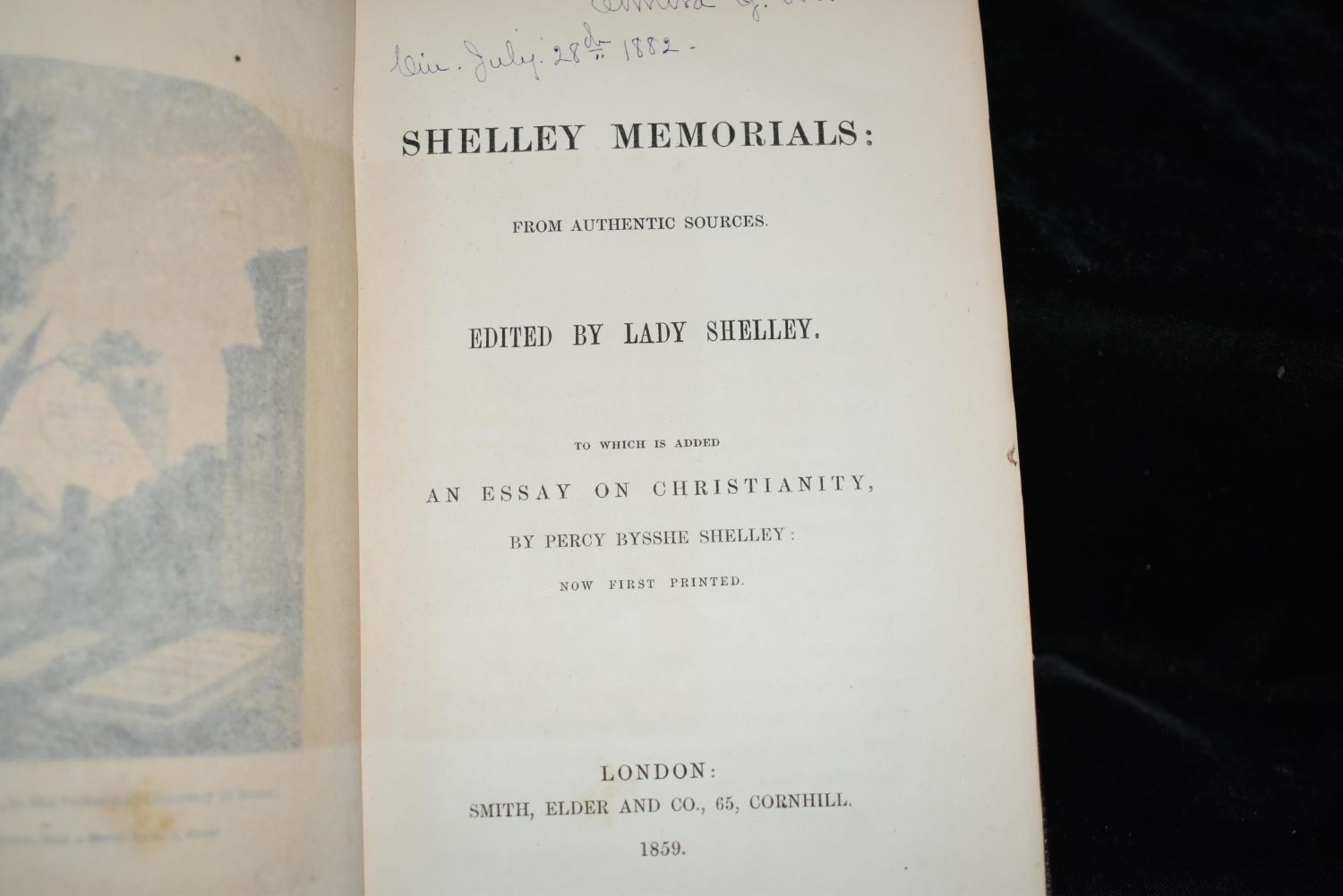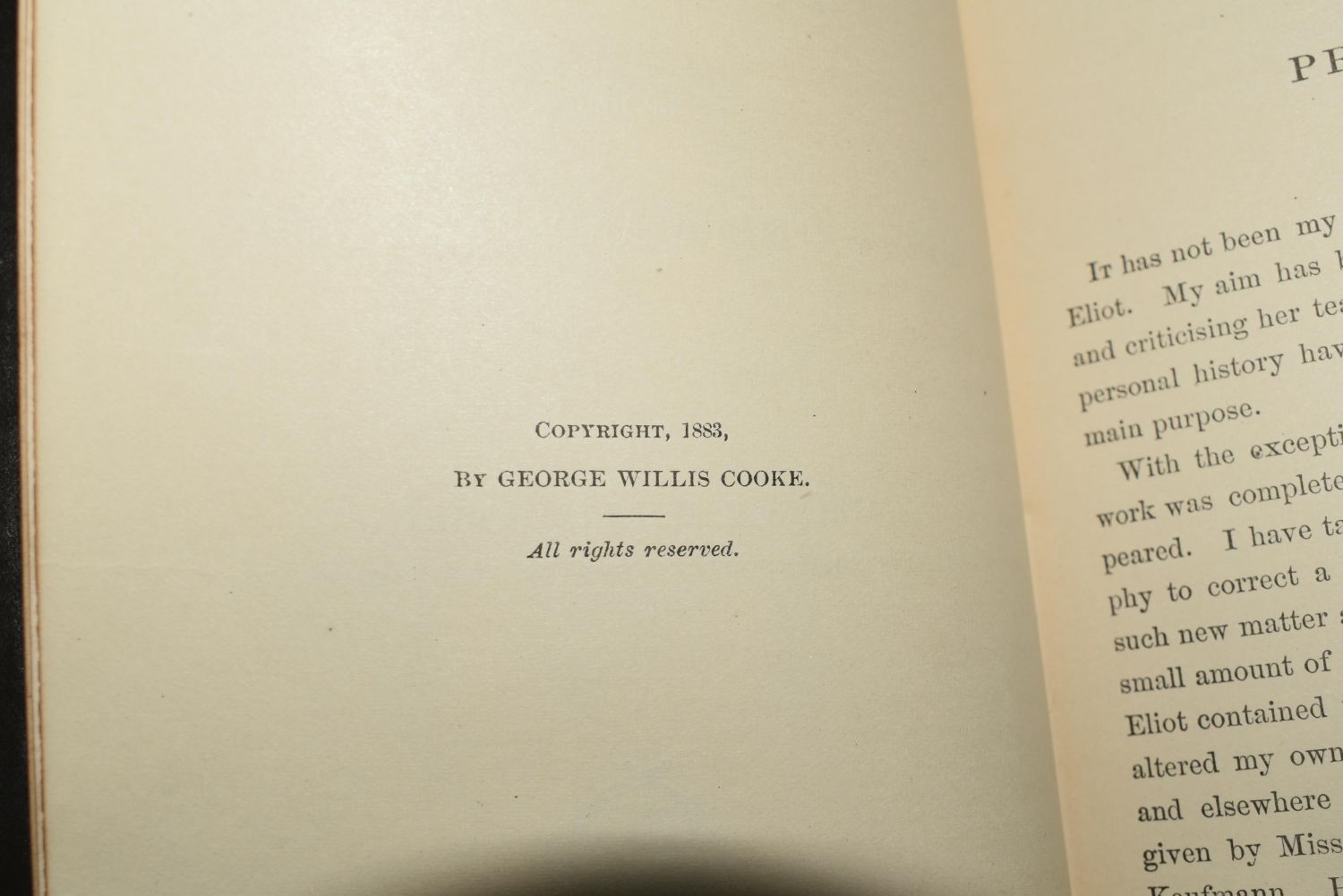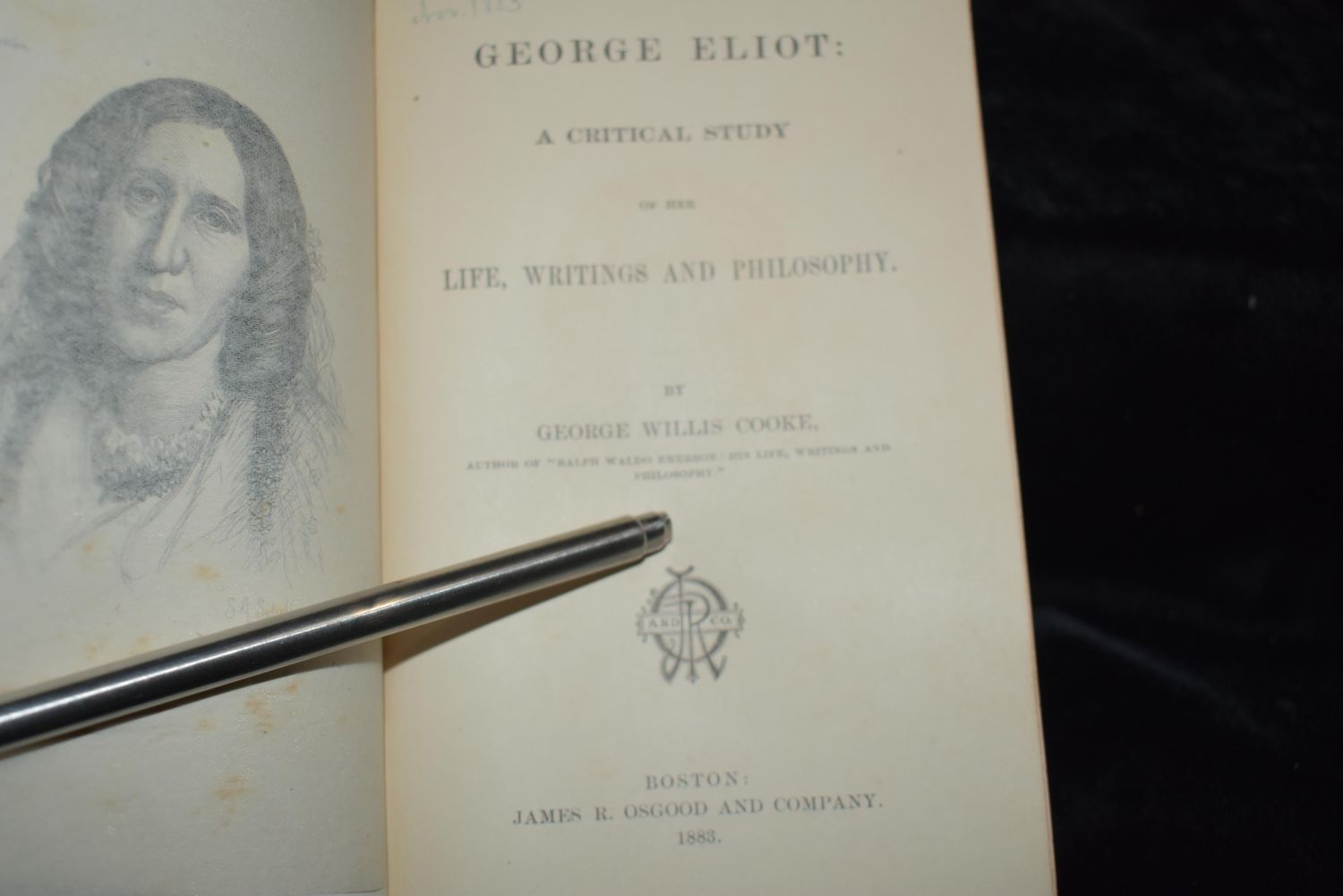 Baldwin: Dialogues on Views and Aspirations by Vernon Lee 1886 1st Ed; Dorcus: The Daughter of Faustina by Nathan Kouns 1884 1st Ed; Arius the Libyan : an idyl of the primitive church by Nathan C Kouns 1884 1st Ed; Shelley Memorials: From Authentic Sources. To which is added an essay on Christianity. Now first reprinted. SHELLEY, Lady. (editor) 1859 1st Edition; and George Elliot by George Cooke 1883 1st ed. All books in good to very good condition. Some shelf wear some foxing to some pages. Tallest book is 7 3/4" by 5 3/8"