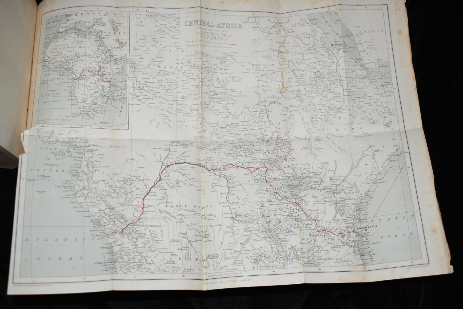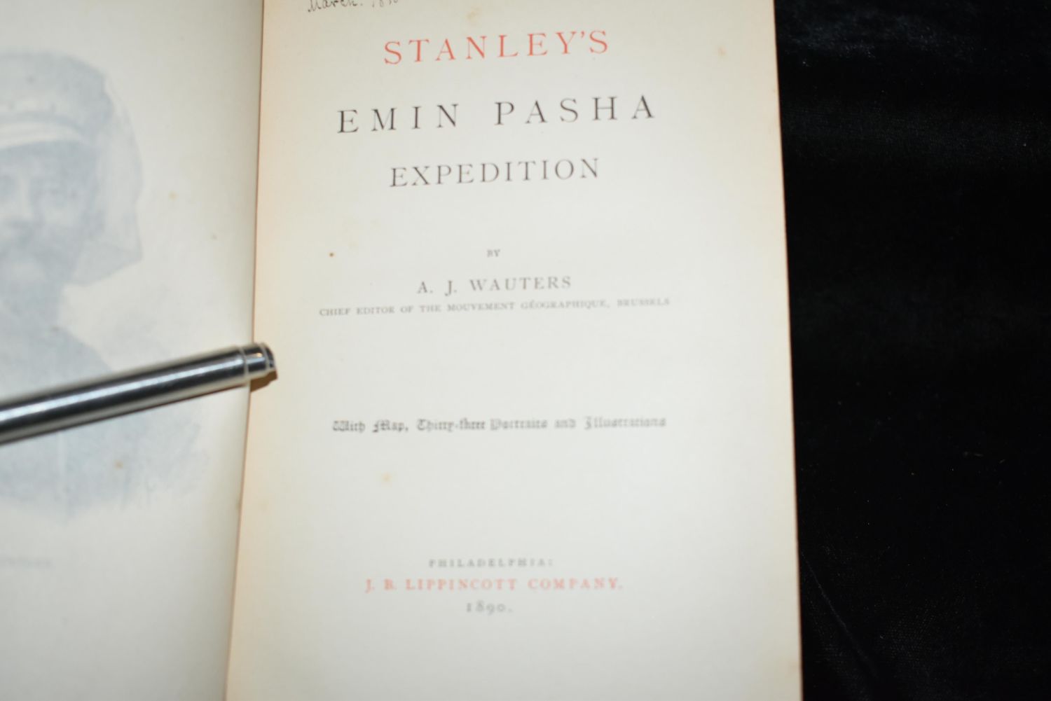 Stanley’s Emin Pasha Expedition by A. J.Wauters. Published by Lippincott, Philadelphia 1890. 1st Edition Original Publishers brown cloth with decorative gold gilt/print. Very Good+ Condition. 369 plus fold out map. 7 5/8" by 5 3/8"