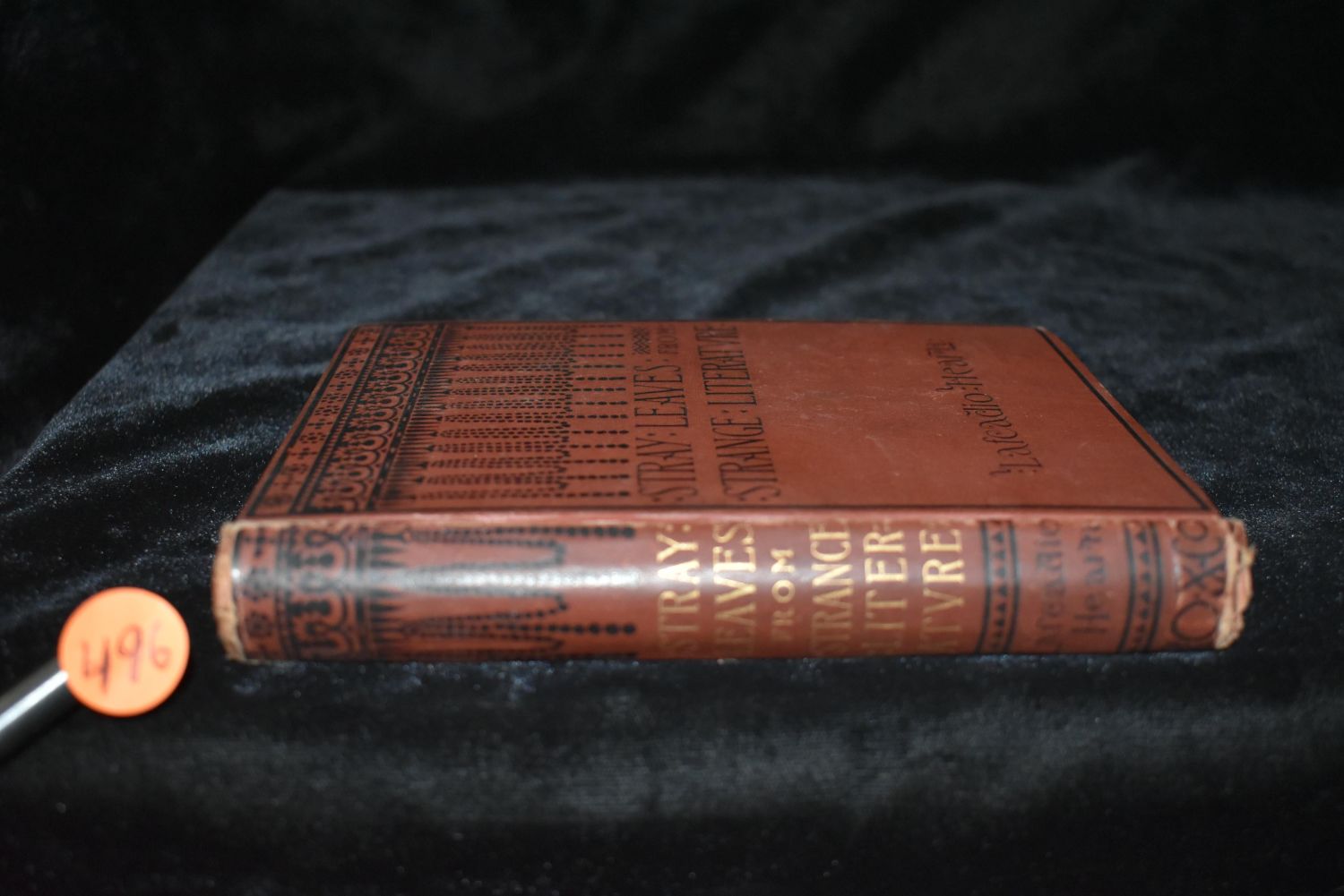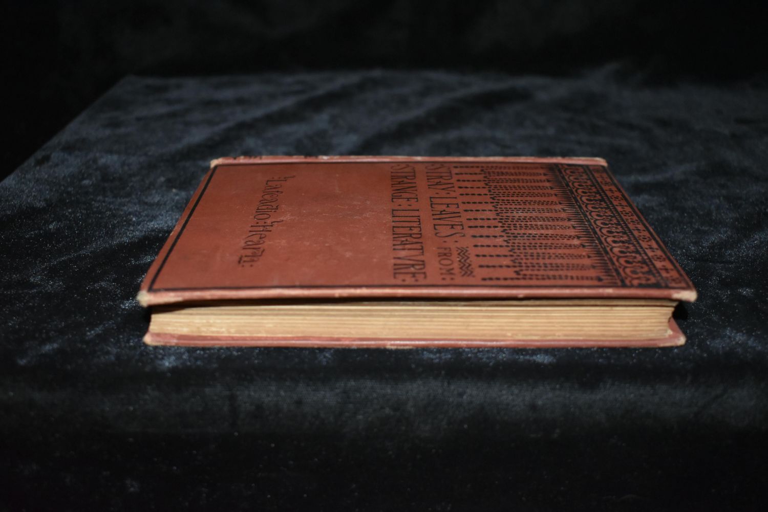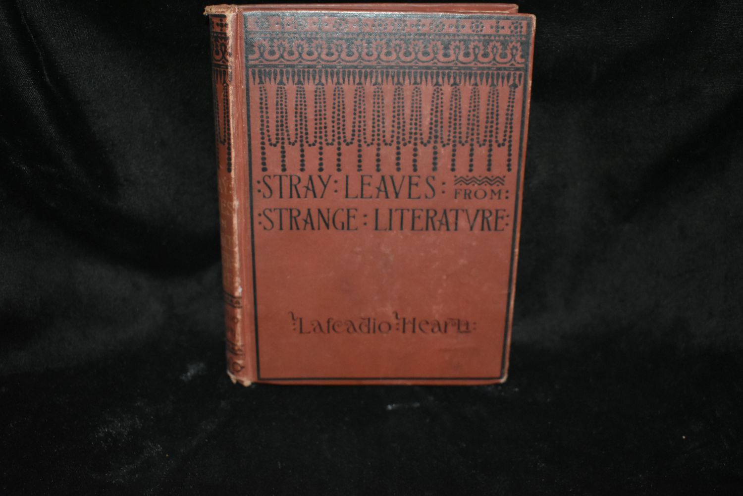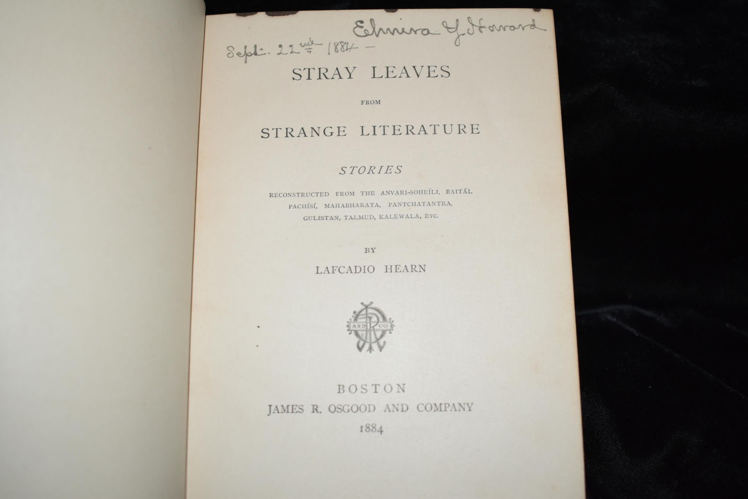 Stray leaves from strange literature: Stories reconstructed from the Anvari-Soheili, Baital Pachisi, Mahabharata, Pantchatantra, Gulistan, Talmud, Kalewala, etc by Lafcadio Hearn. Published by James R. Osgood and Co (1884). 1st Edition. Good condition but has some ink marks on the back cover. 225 pgs 6 7/8" by 5 3/8"