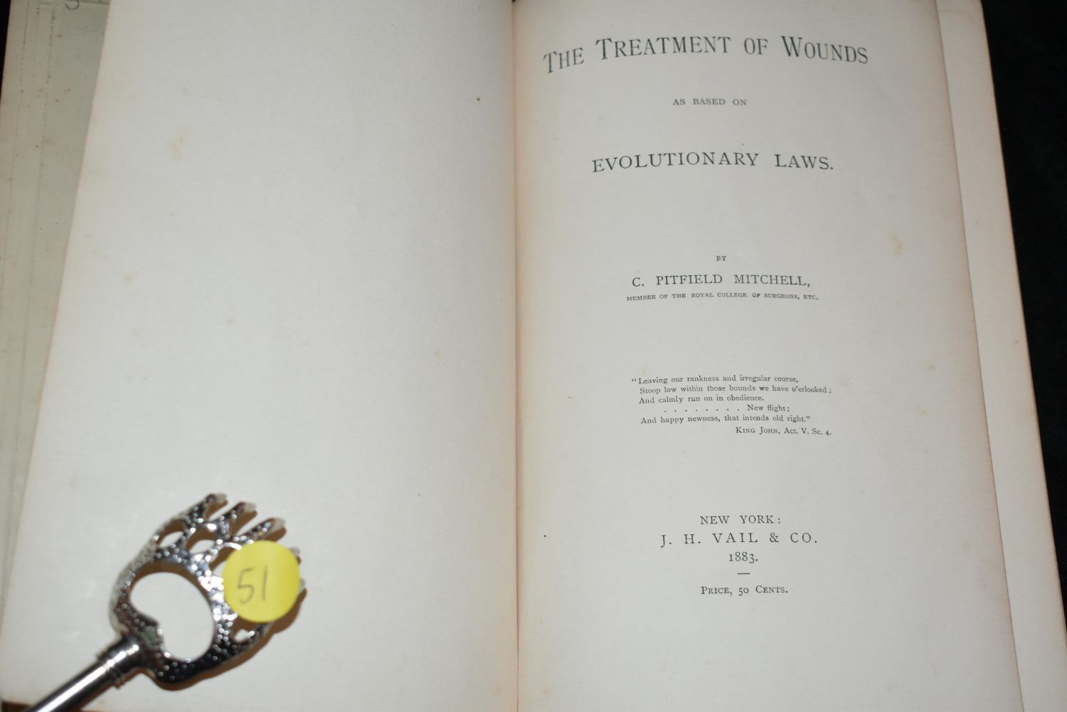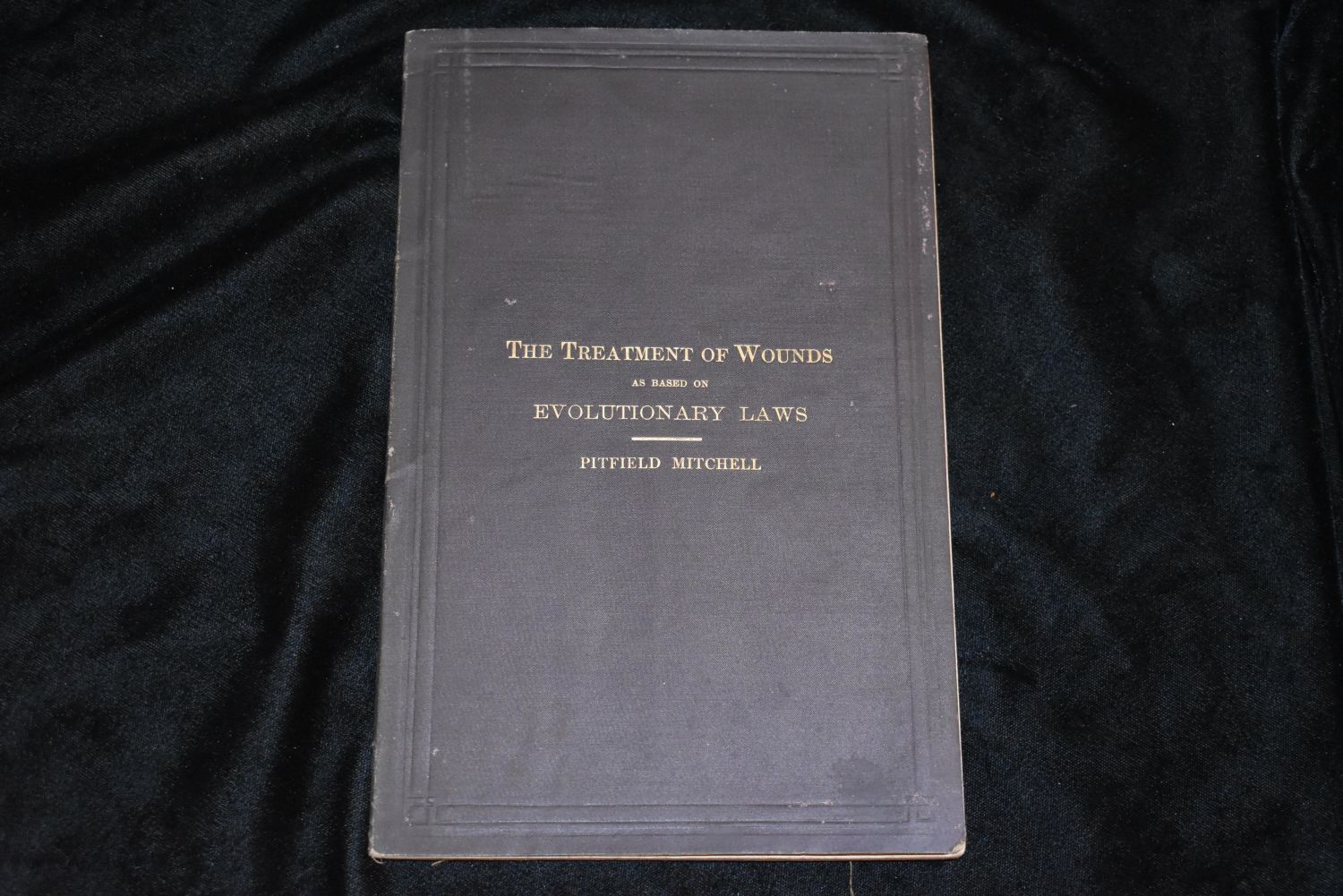 Treatment of Wounds based on Evolutionary Laws 1883 by C. Pitfield Mitchell. New York J. H. Vail & Co. 1883. Presumed 1st edition. Softcover Brown Cloth with Gold Gilt. Good Condition. 29 pgs 9 1/8" by 5 7/8"