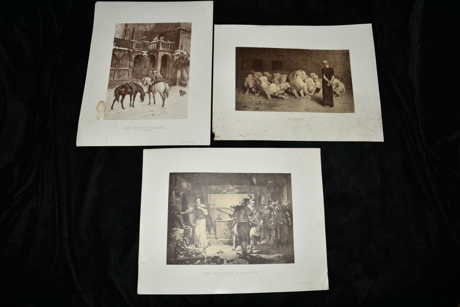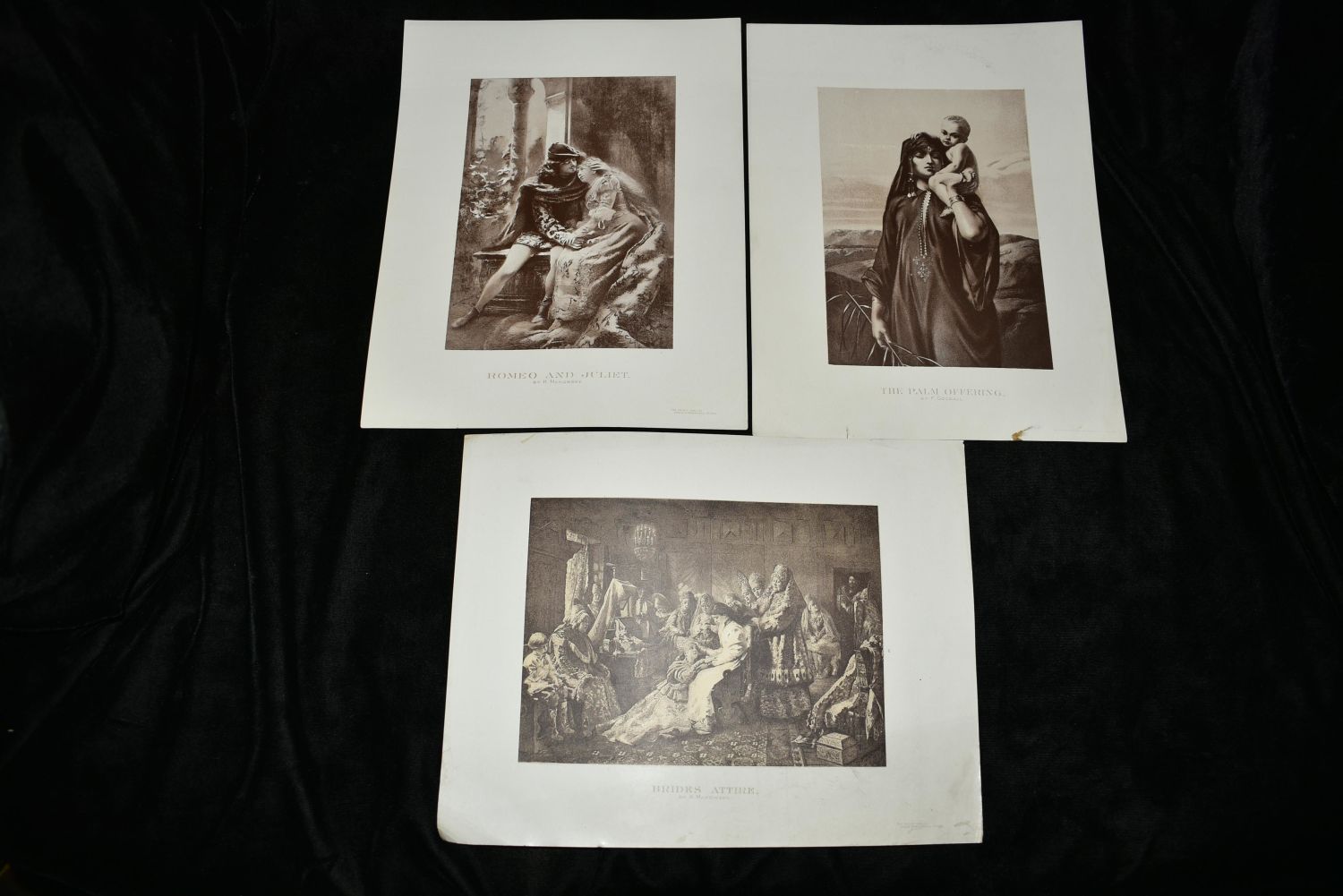 This listing is for a partial portfolio of litho prints that were made by The Orcutt Co., Chicago expressly for the Columbian Expo of 1893. Each 8 /1/2" x 11" print is by a famous artist from the 18-19th Century. Titles in this lot include Brides Attire by K. Makowsky; The Empty Saddle by S. E. Waller; The Palm Offering by F. Goodall; The Martyr’s Daughter by A. Baur; Romeo and Juliet by K. Makowsky; and Daniel by B. Riviere. Minor tatter to some page edges and an occasional stain on a few. Tares on 3. See Photos