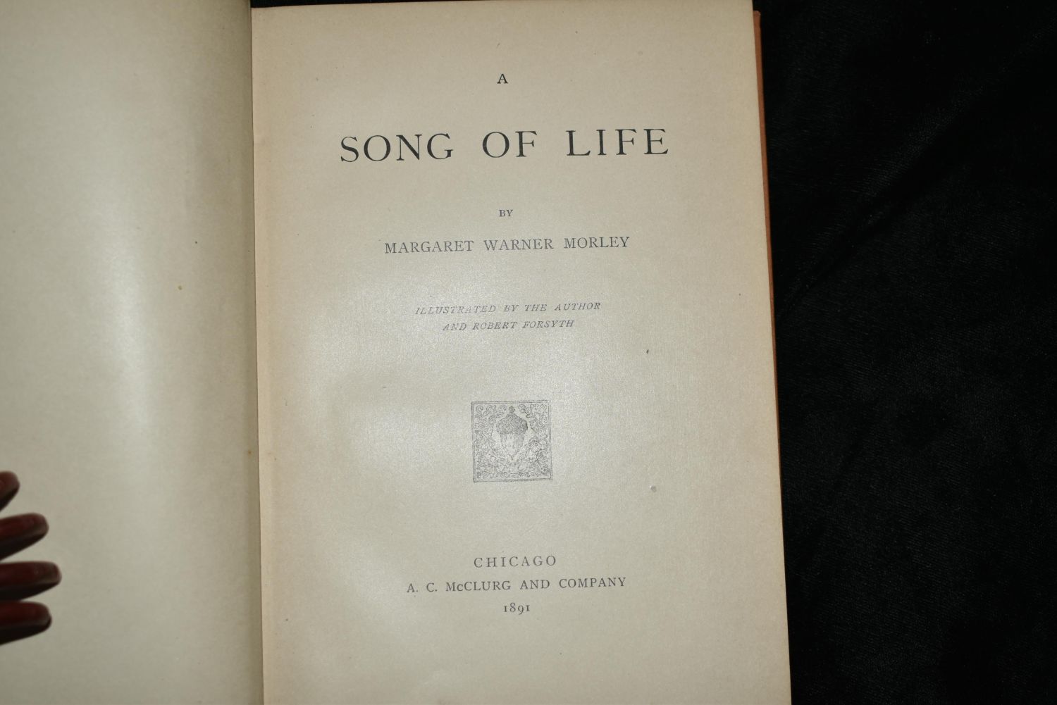 A Song of Life by Margaret Warner Morley. Published by Chicago : A.C. McClurg & Co. 1891. 1st Edition Original Publishers Peach Cloth with red embossed print. Good Condition. Cover has some fading. 155 pgs with lots of illustrations. 7 5/8" by 5 1/2"