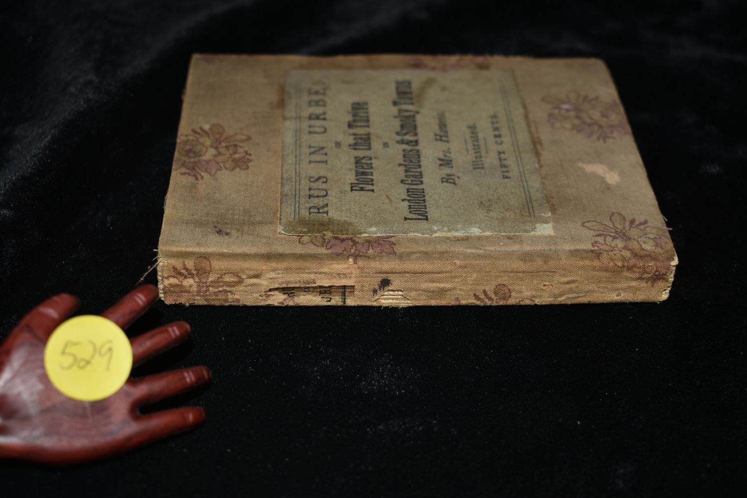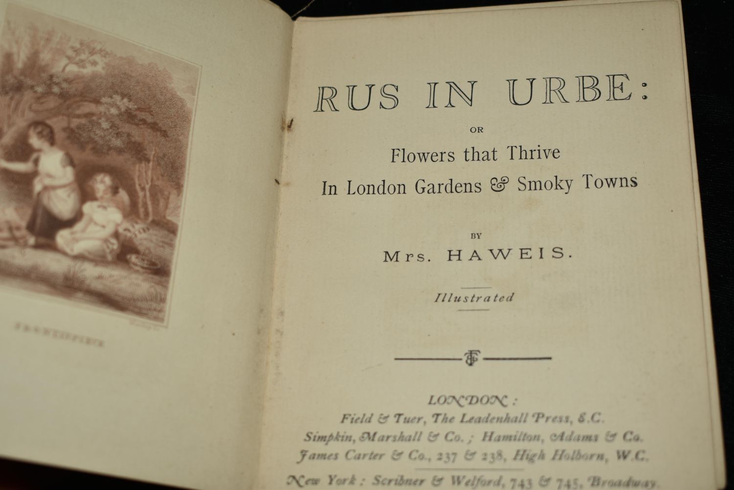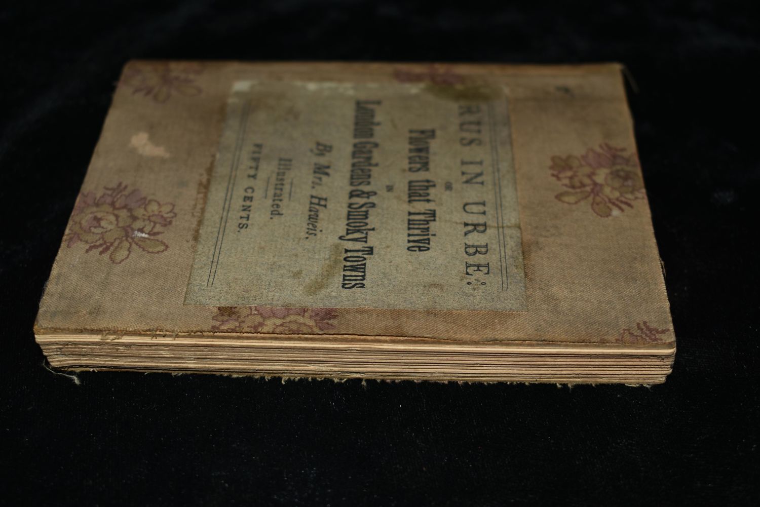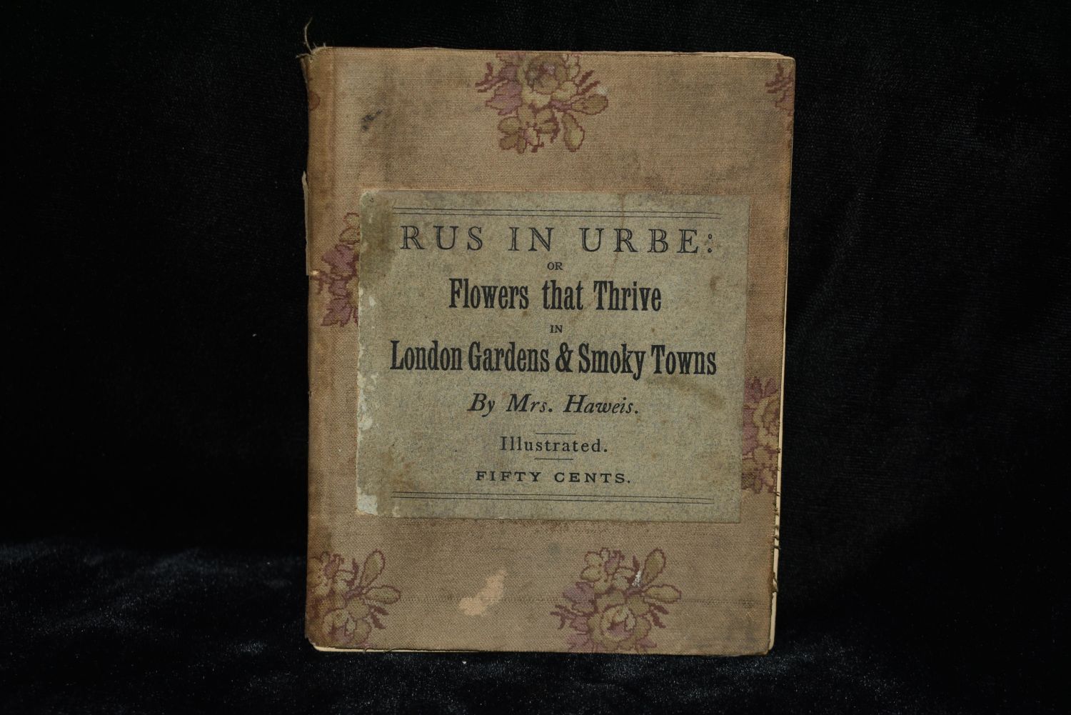 Rus In Urbe : or Flowers That Thrive in London Gardens & Smoky Towns by Mary Eliza Haweis. Published in London by Field and Tuer, The Leadenhall Press 1886. Very Rare Book. 1st Edition. Publishers original thin hardback with flowered cloth and label to front cover. Fair shape. Its still all there but as can be seen on the photos needs a new cover. Pages are all intact with very little foxing or age spotting. Flowers That Thrive in London Gardens & Smoky Towns is a charming botanical book which offers a window onto late Victorian urban life. 136 pgs plus adds. 5 1/4" by 4 1/8"