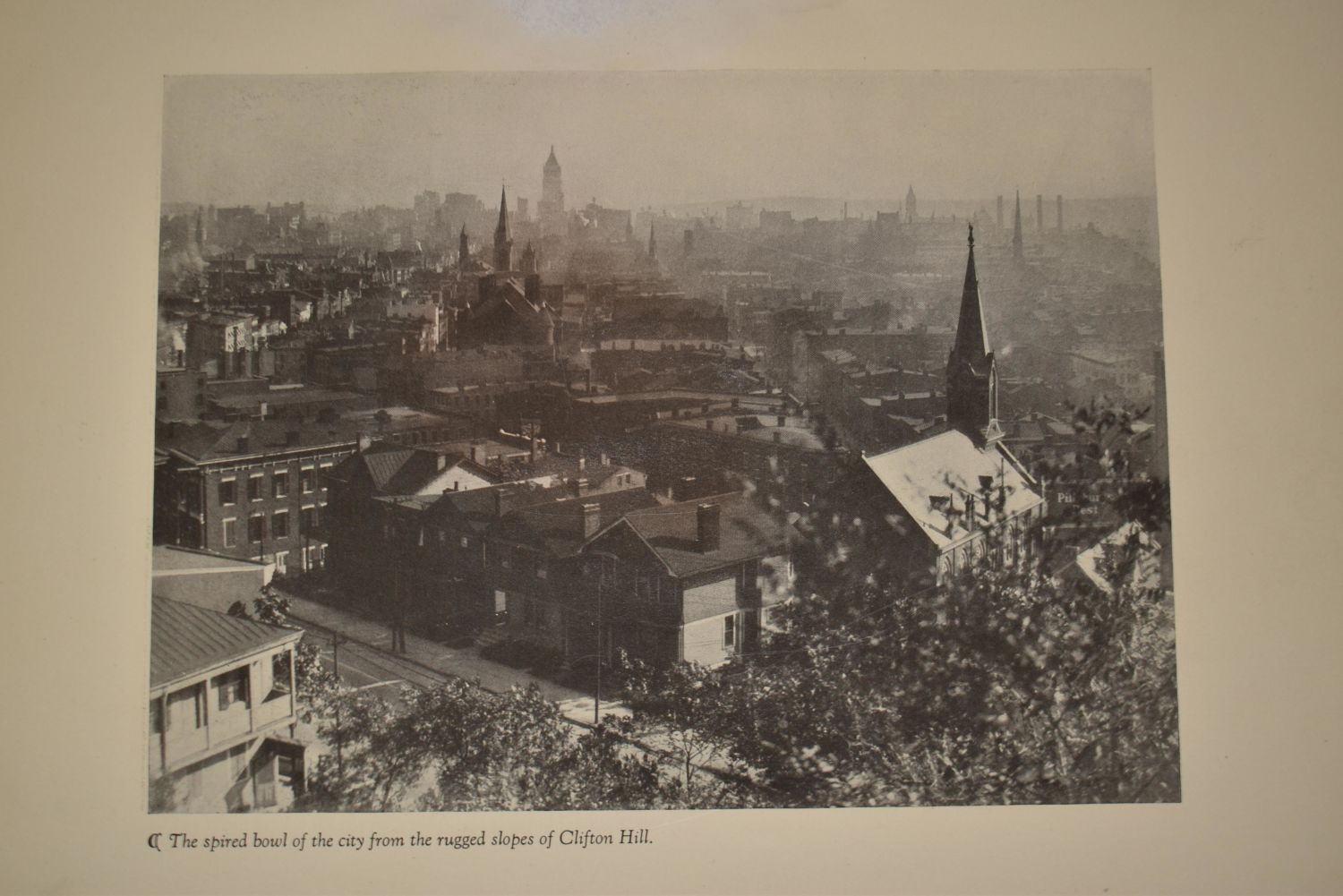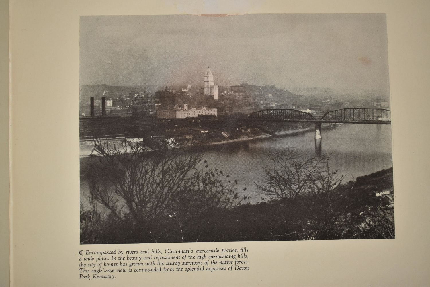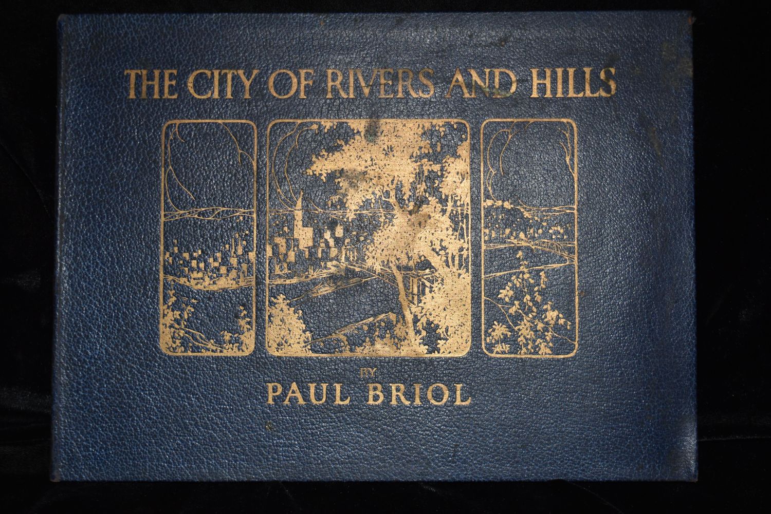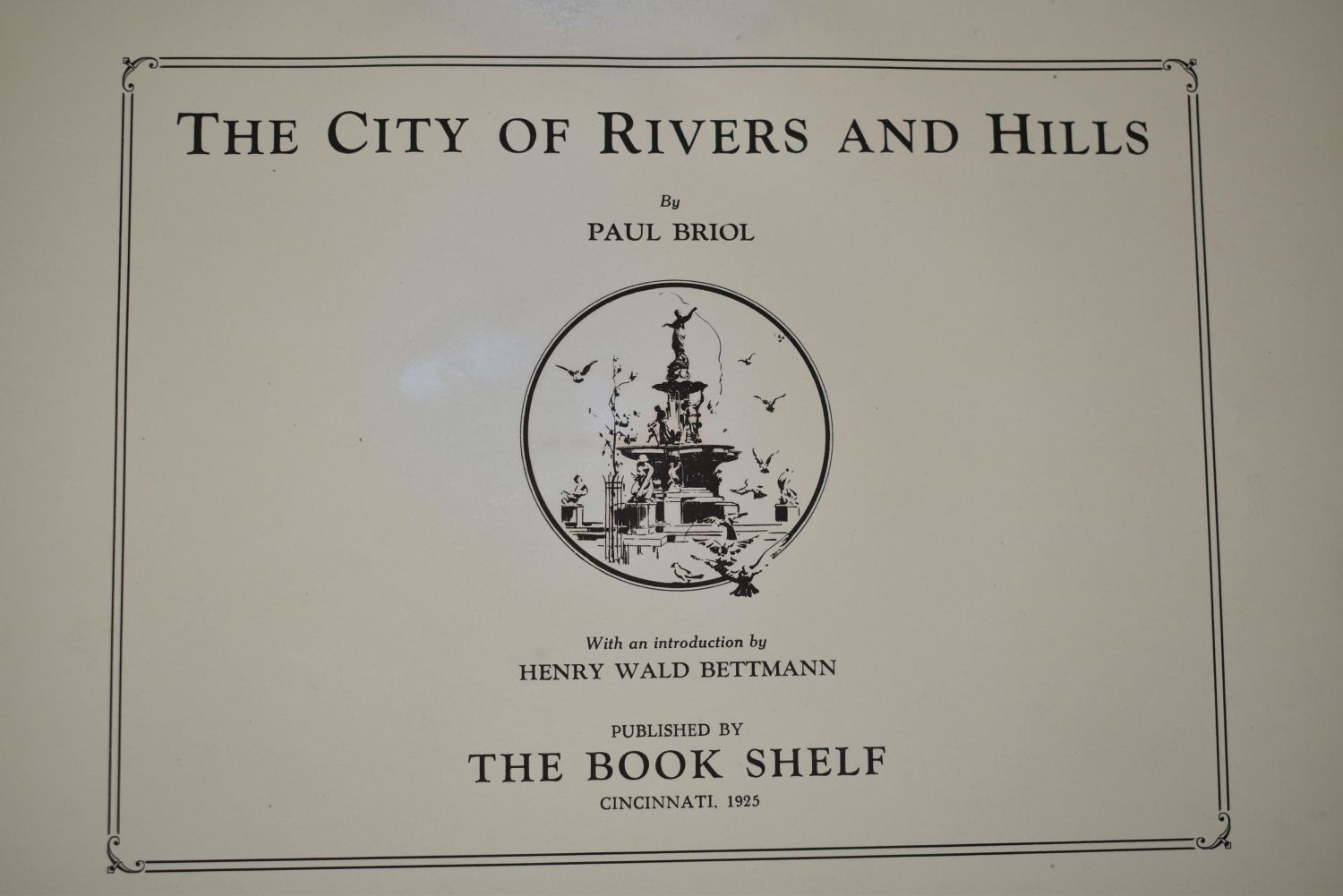 The City of Rivers and Hills by Paul Briol. Published by The Book Shelf 1925. 1st Edition in Very Good + Condition. This book highlights the city of Cincinnati and its surrounding country side. It is Loaded with photos of 1924 pictures taken there. Blue Flexible hardback with gold print. 86 pgs 11 1/4" by 8 1/2"