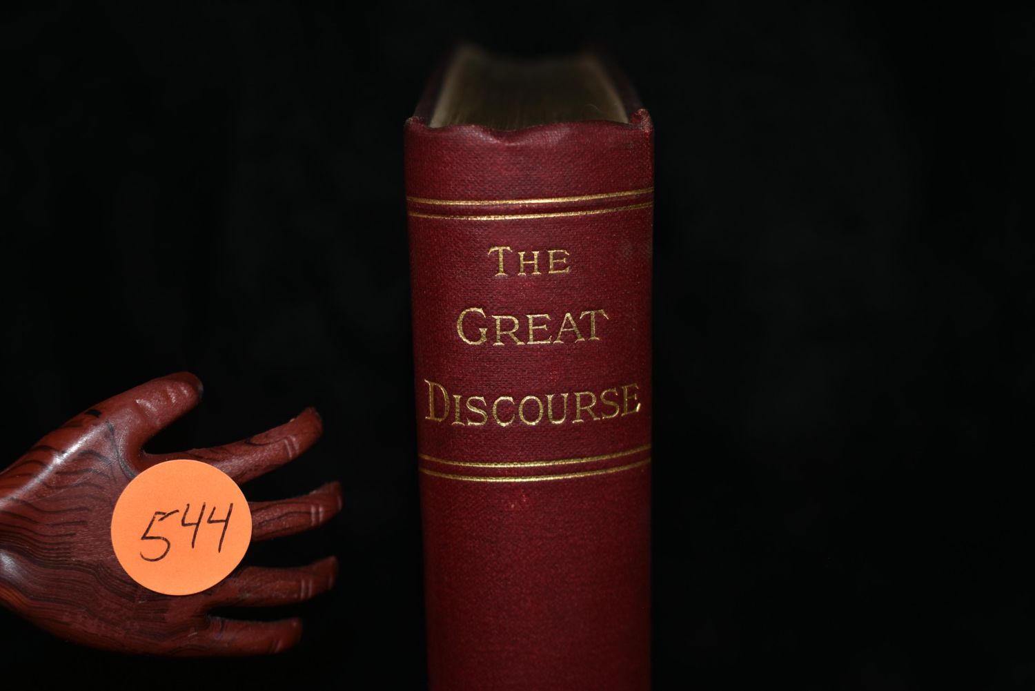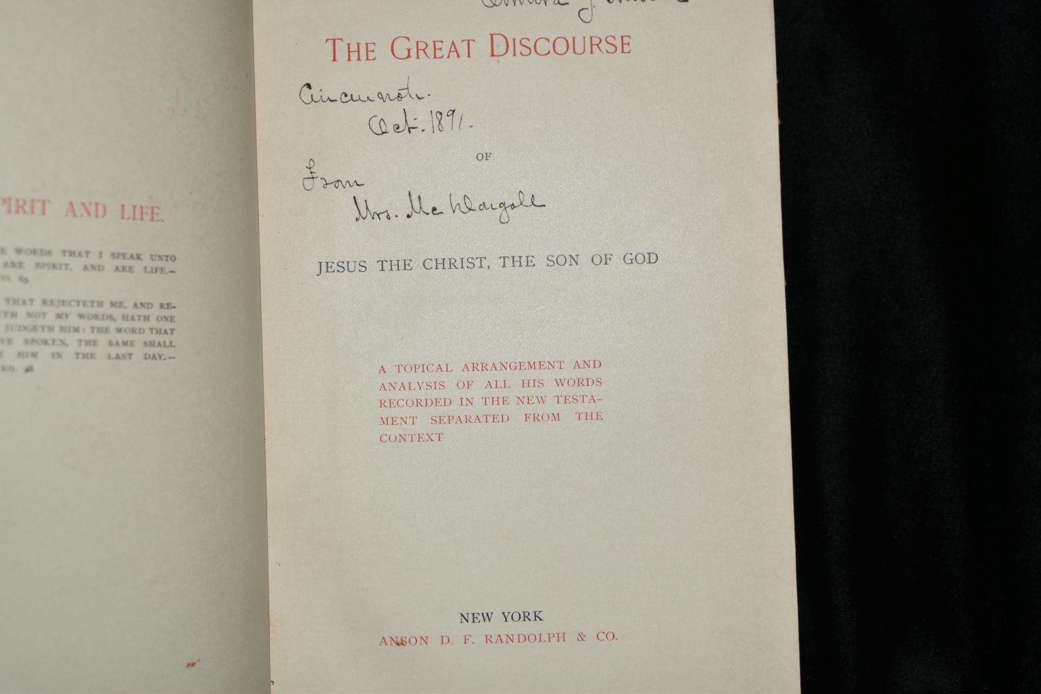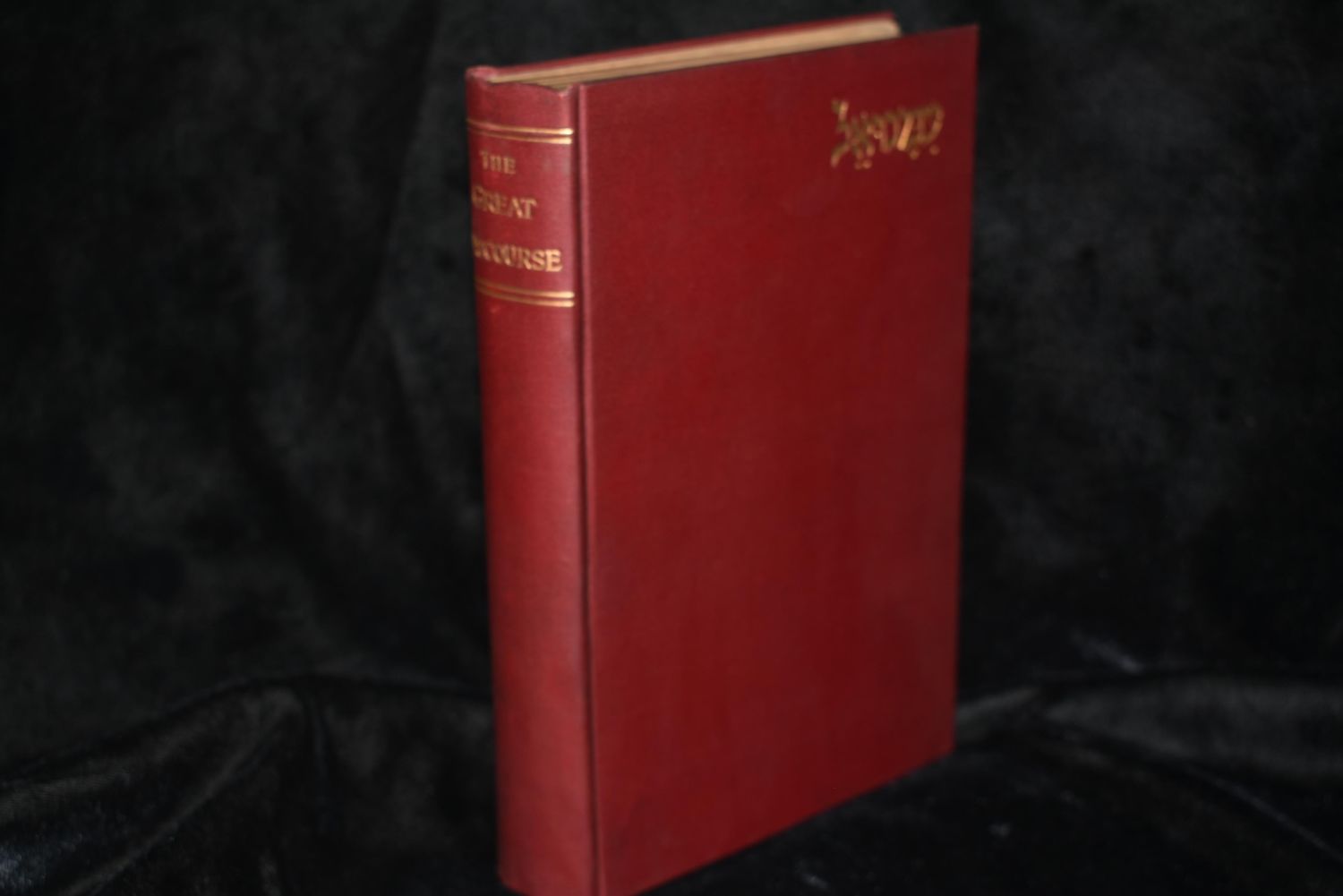 The Great Discourse Of Jesus The Christ, The Son Of God by Charles William Larned. Published by Anson D. F. Randolph & Co. NY 1890. 1st Edition. Publishers original red cloth hard back with gold gilt. Very Good Condition. Decko style page ends. 358 pgs 8" by 5 1/2"