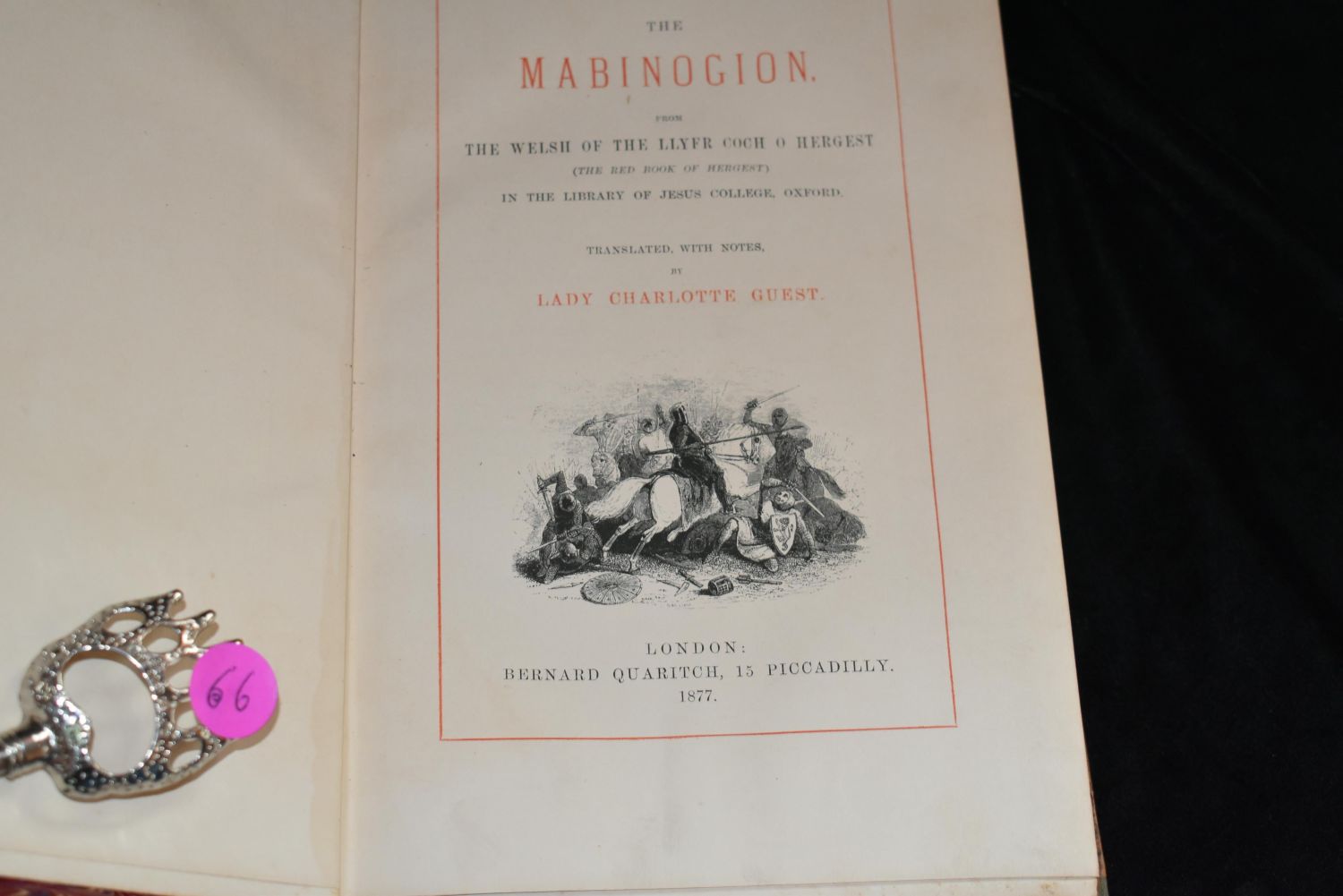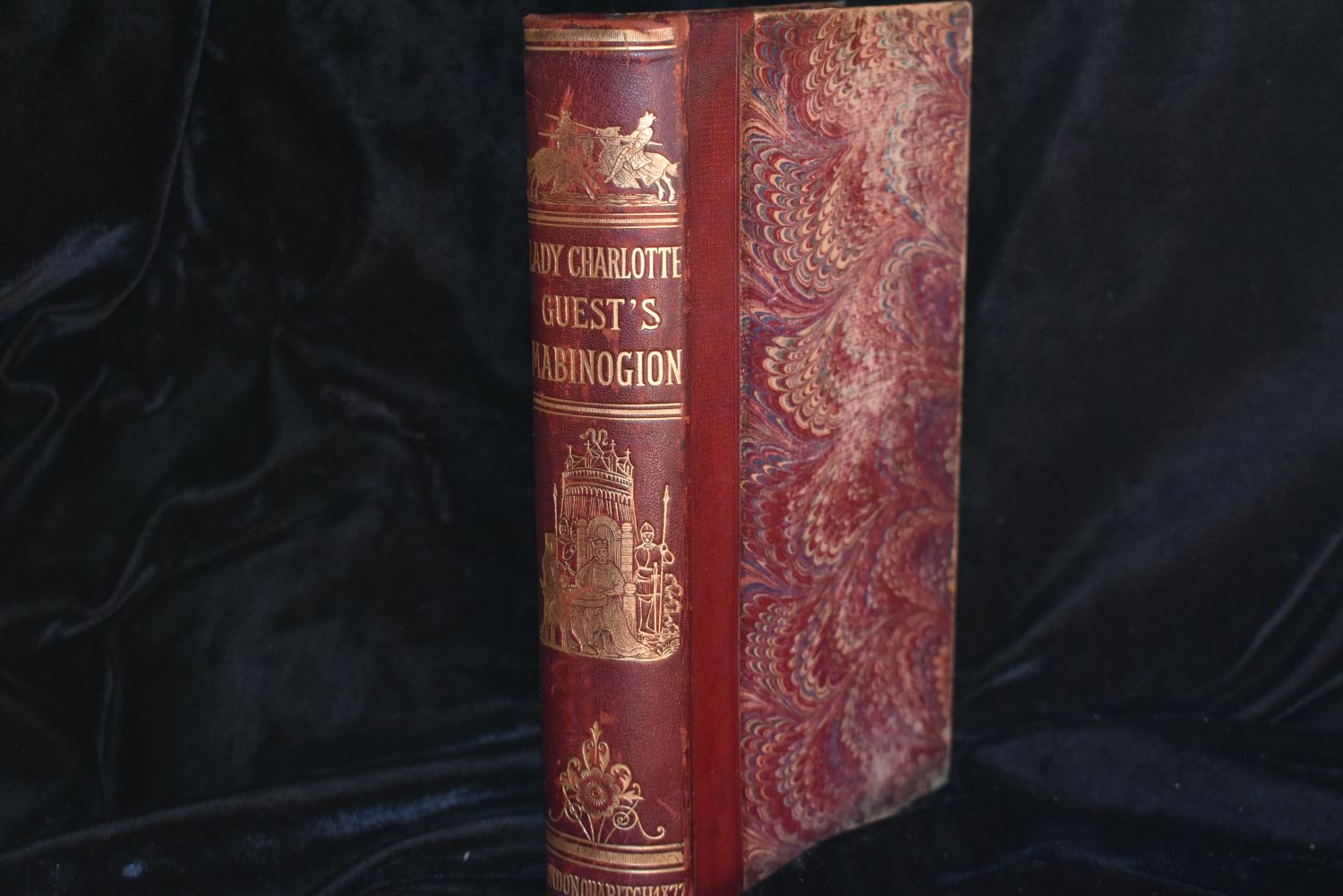 The Mabinogion 1877 Charlotte Guest. Published by Bernard Quaritch, 1877. Marbled boards with red leather spine. Gilt lettering and stamping on spine. Good Condition for its age. Cover is a little loose and there is some shelf wear. Still an attractive, collectible and readable book. 504 pgs 10 1/8" by 7"