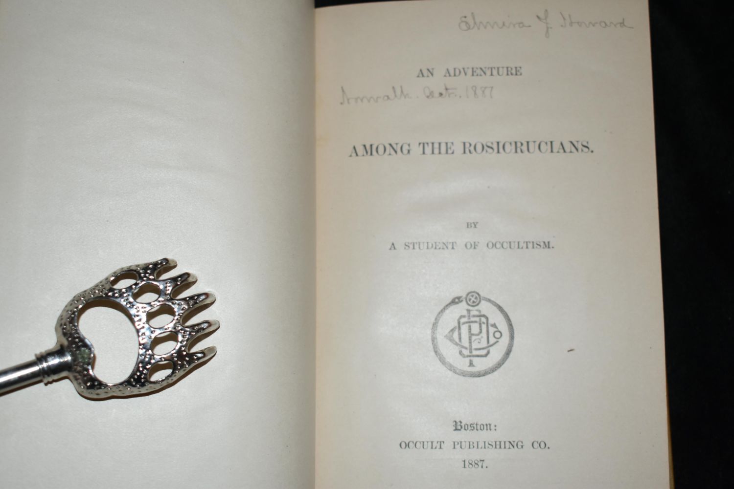 An Adventure Among the Rosicrucians 1887 1st Ed Occult. An Adventure Among the Rosicrucians by a student of Occultism. Published in Boston by Occult Publishing Company 1887. 1st Edition. Hardback in publishers original yellow cloth with gold gilt. Excellent Condition. 181 pgs. 7 3/8" by 5"