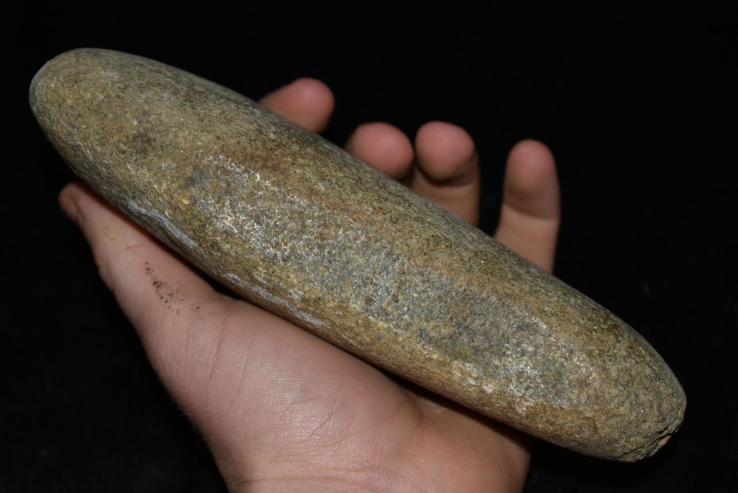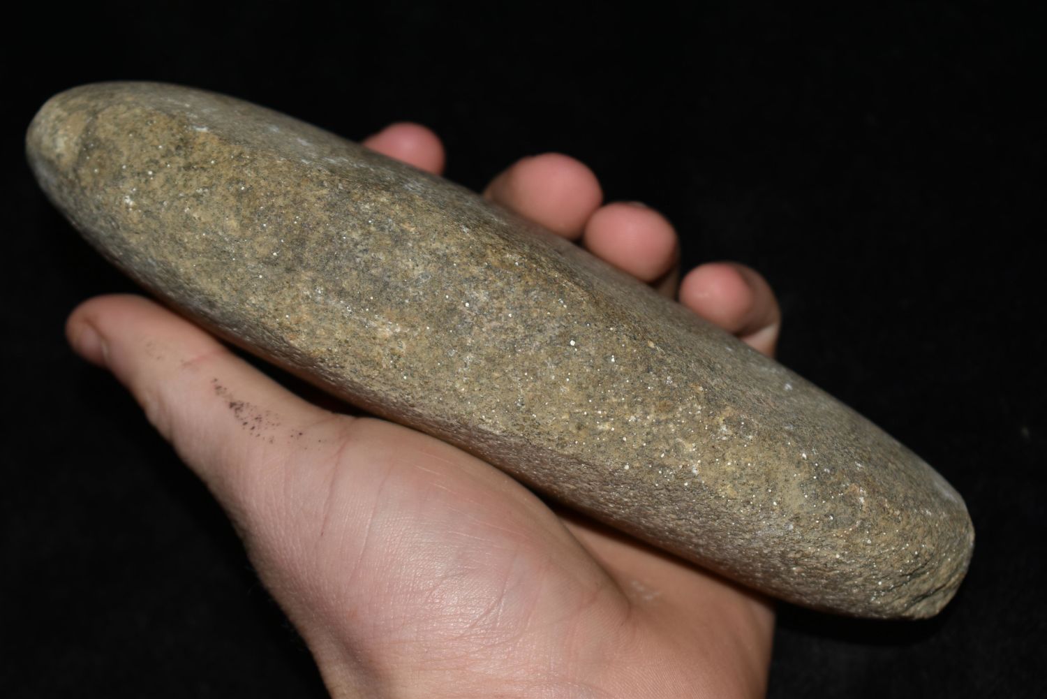 7" Hardstone tool. Found in Musselshell, Montana. Creel Poore was born and raised in Musselshell, Montana where he found his first arrowhead at a very early age. This led Creel on a lifetime search for Montana’s prehistoric past. Creel owned a ranch in Musselshell and collected from sites and in and around the Musselshell River and tributaries. Every piece in Creel’s collection is personally found. He did not purchase pieces, nor did he accept pieces as gifts. He took pride in the fact he found every piece. He also made the cedar frames from cedar trees that were cut on his ranch. Many of the pieces were collected from the buffalo jumps which were plentiful nearby