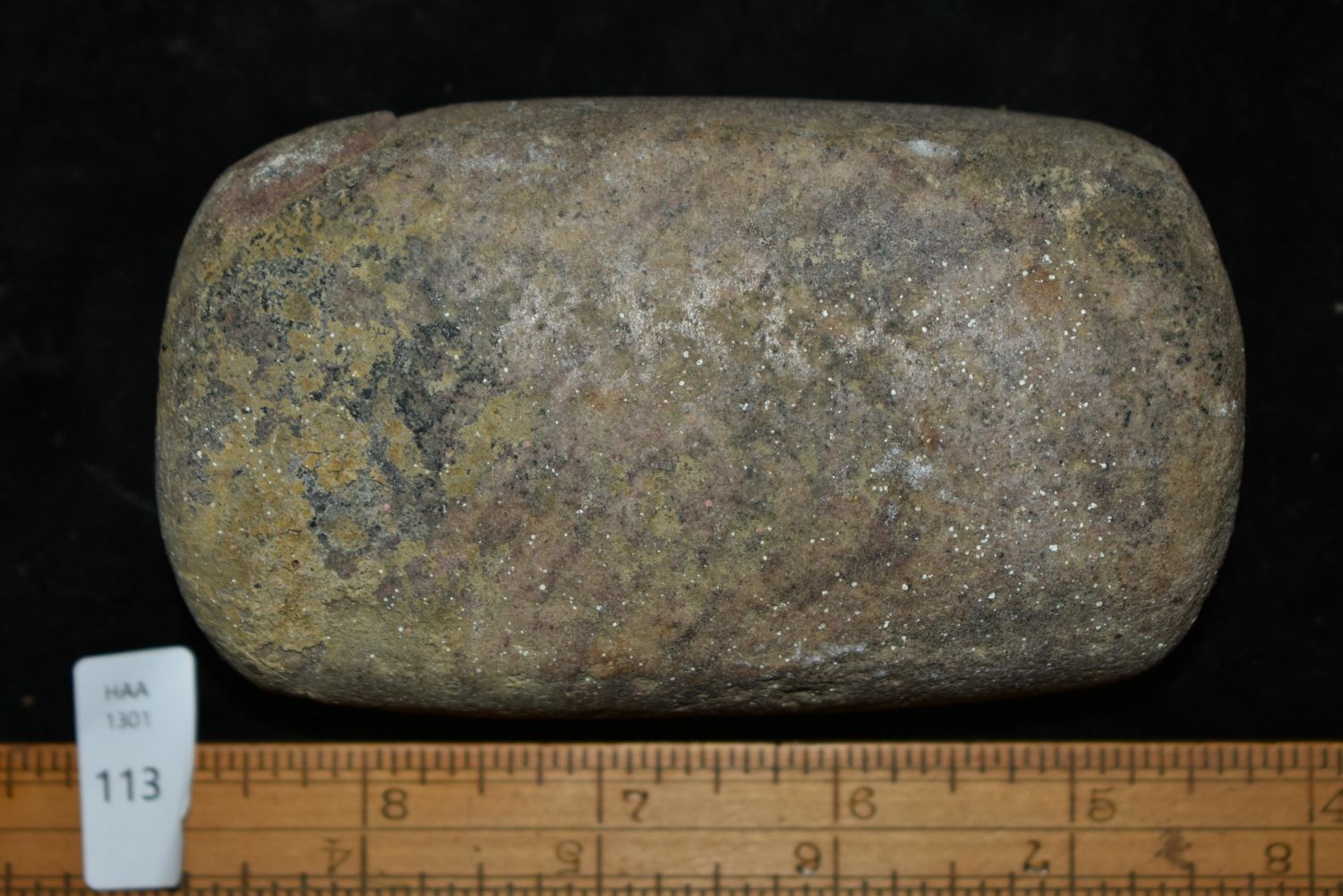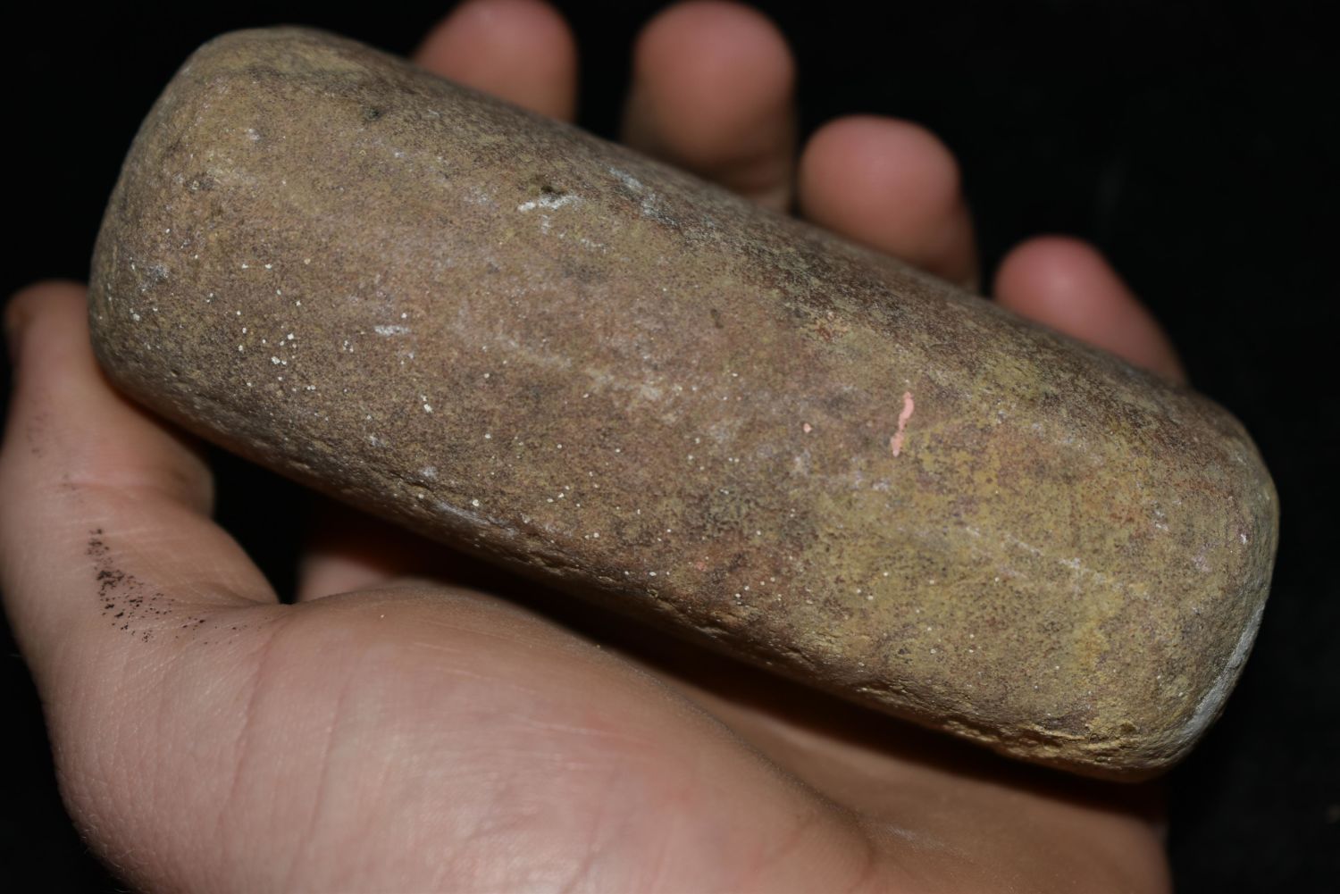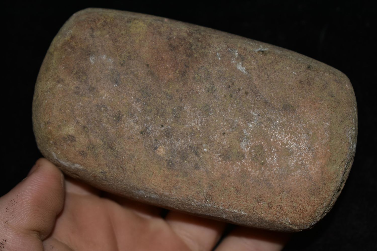 4 1/4" – 4 Sided grinding stone. Found in Musselshell, Montana. Creel Poore was born and raised in Musselshell, Montana where he found his first arrowhead at a very early age. This led Creel on a lifetime search for Montana’s prehistoric past. Creel owned a ranch in Musselshell and collected from sites and in and around the Musselshell River and tributaries. Every piece in Creel’s collection is personally found. He did not purchase pieces, nor did he accept pieces as gifts. He took pride in the fact he found every piece. He also made the cedar frames from cedar trees that were cut on his ranch. Many of the pieces were collected from the buffalo jumps which were plentiful nearby