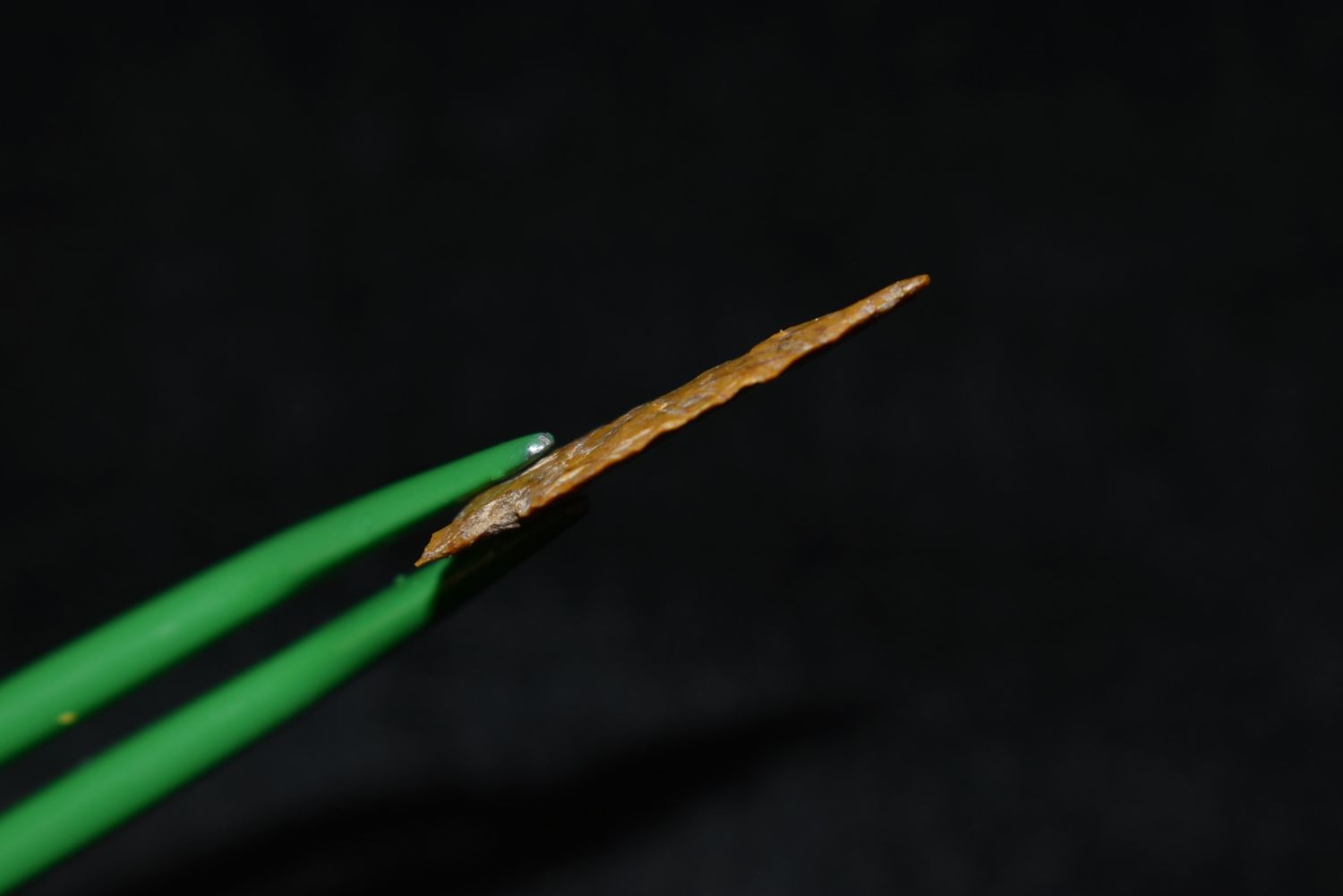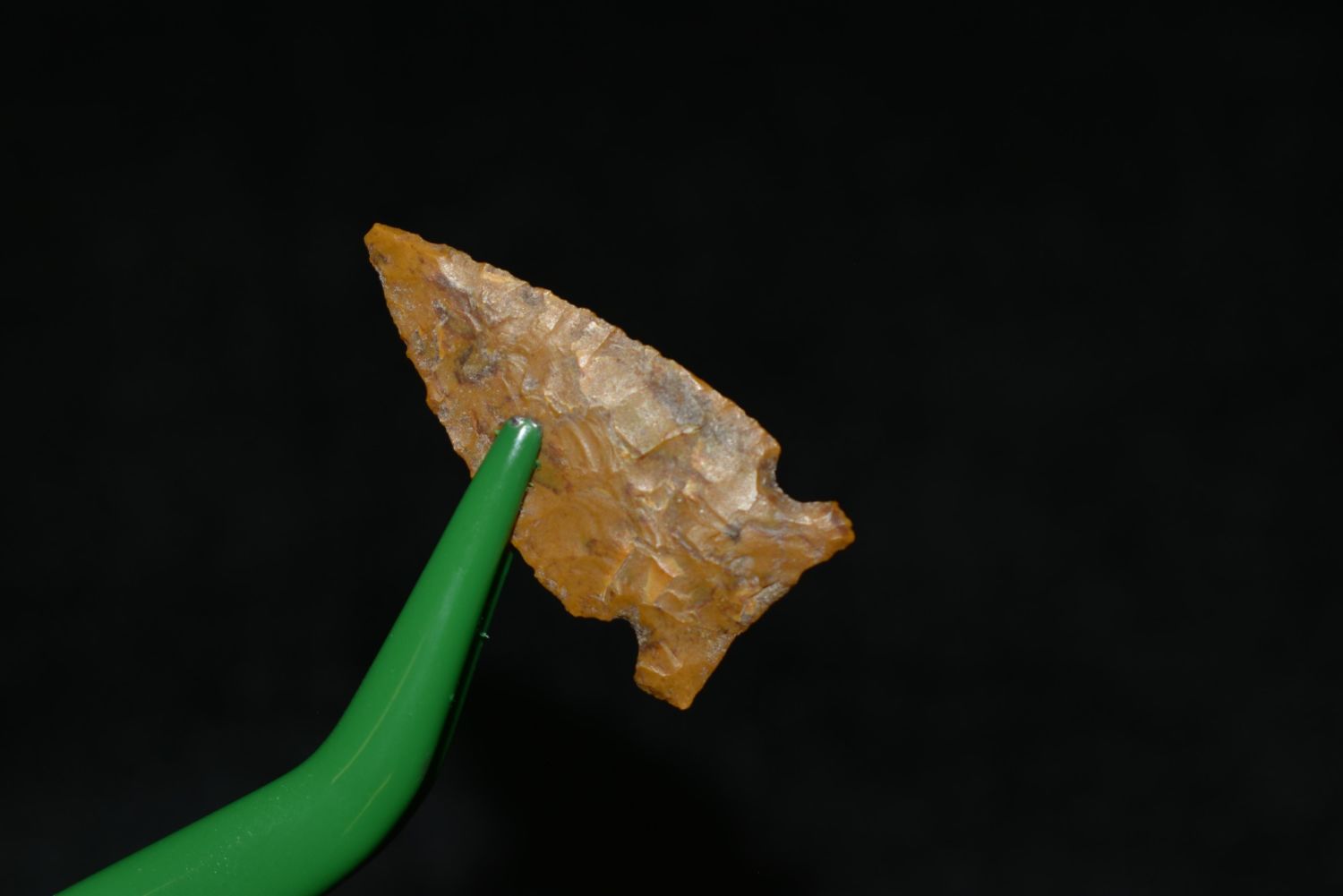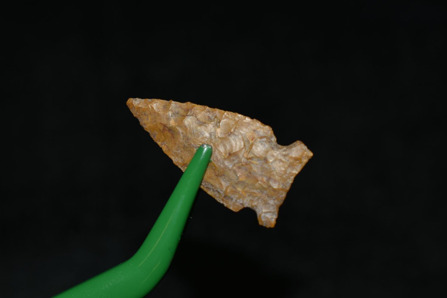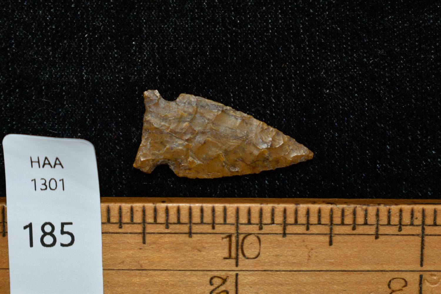 1" Avonlea point. Found in Musselshell, Montana. Creel Poore was born and raised in Musselshell, Montana where he found his first arrowhead at a very early age. This led Creel on a lifetime search for Montana’s prehistoric past. Creel owned a ranch in Musselshell and collected from sites and in and around the Musselshell River and tributaries. Every piece in Creel’s collection is personally found. He did not purchase pieces, nor did he accept pieces as gifts. He took pride in the fact he found every piece. He also made the cedar frames from cedar trees that were cut on his ranch. Many of the pieces were collected from the buffalo jumps which were plentiful nearby