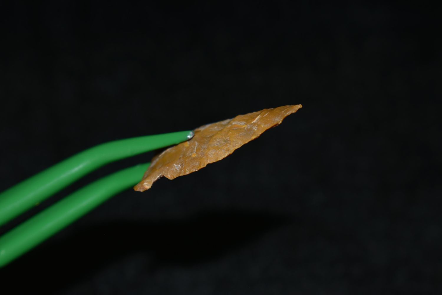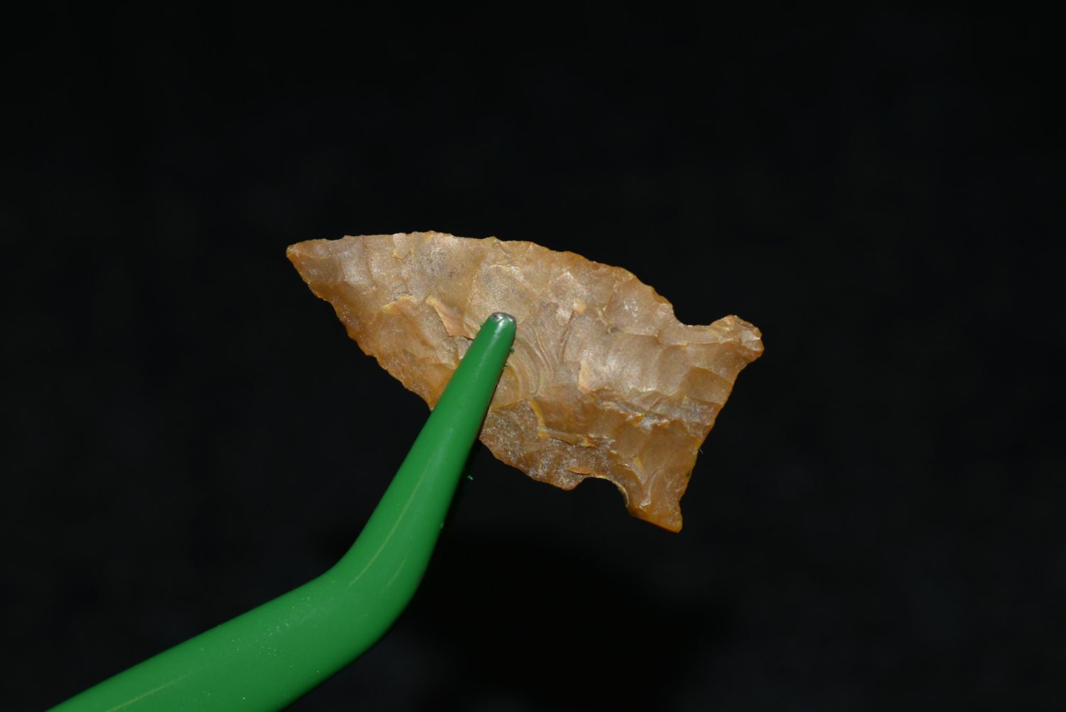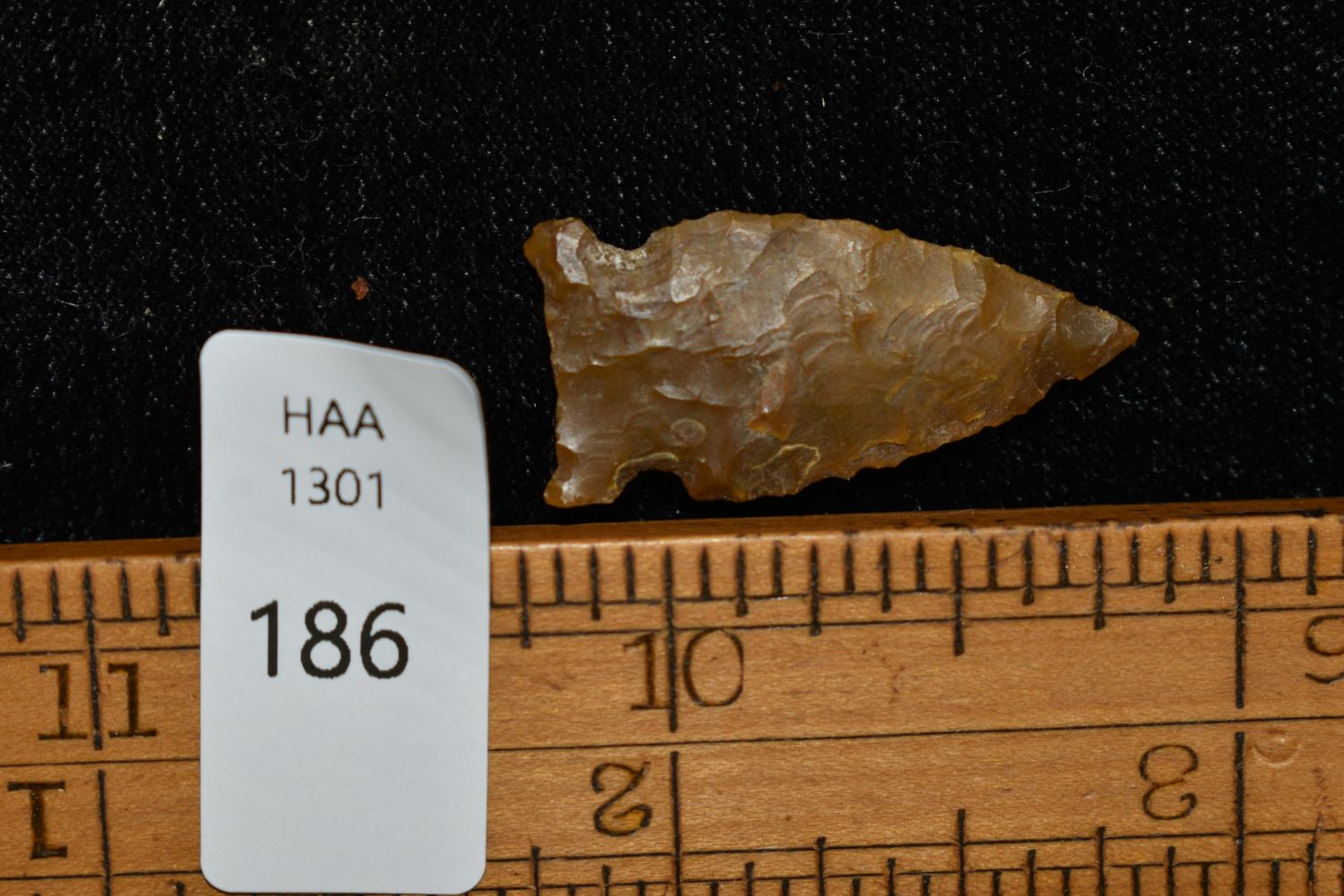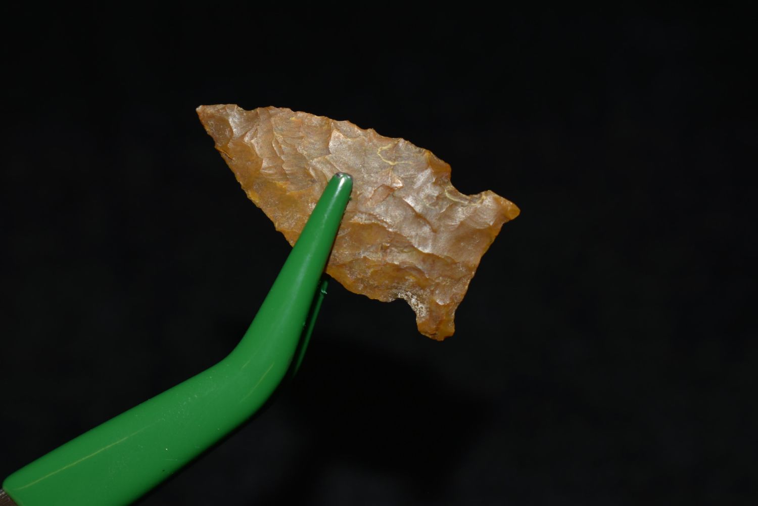 1" Avonlea Point. Found in Musselshell, Montana. Creel Poore was born and raised in Musselshell, Montana where he found his first arrowhead at a very early age. This led Creel on a lifetime search for Montana’s prehistoric past. Creel owned a ranch in Musselshell and collected from sites and in and around the Musselshell River and tributaries. Every piece in Creel’s collection is personally found. He did not purchase pieces, nor did he accept pieces as gifts. He took pride in the fact he found every piece. He also made the cedar frames from cedar trees that were cut on his ranch. Many of the pieces were collected from the buffalo jumps which were plentiful nearby