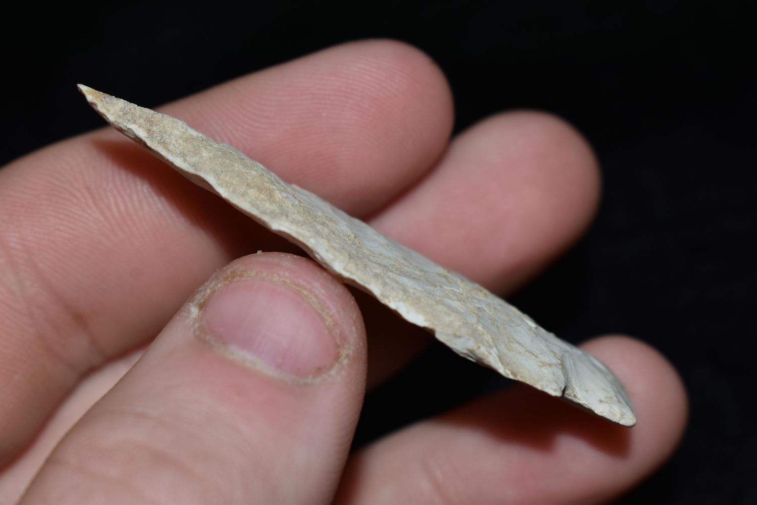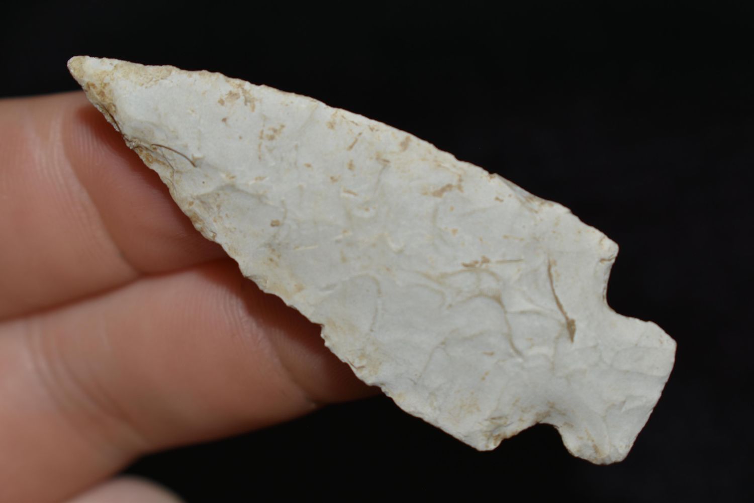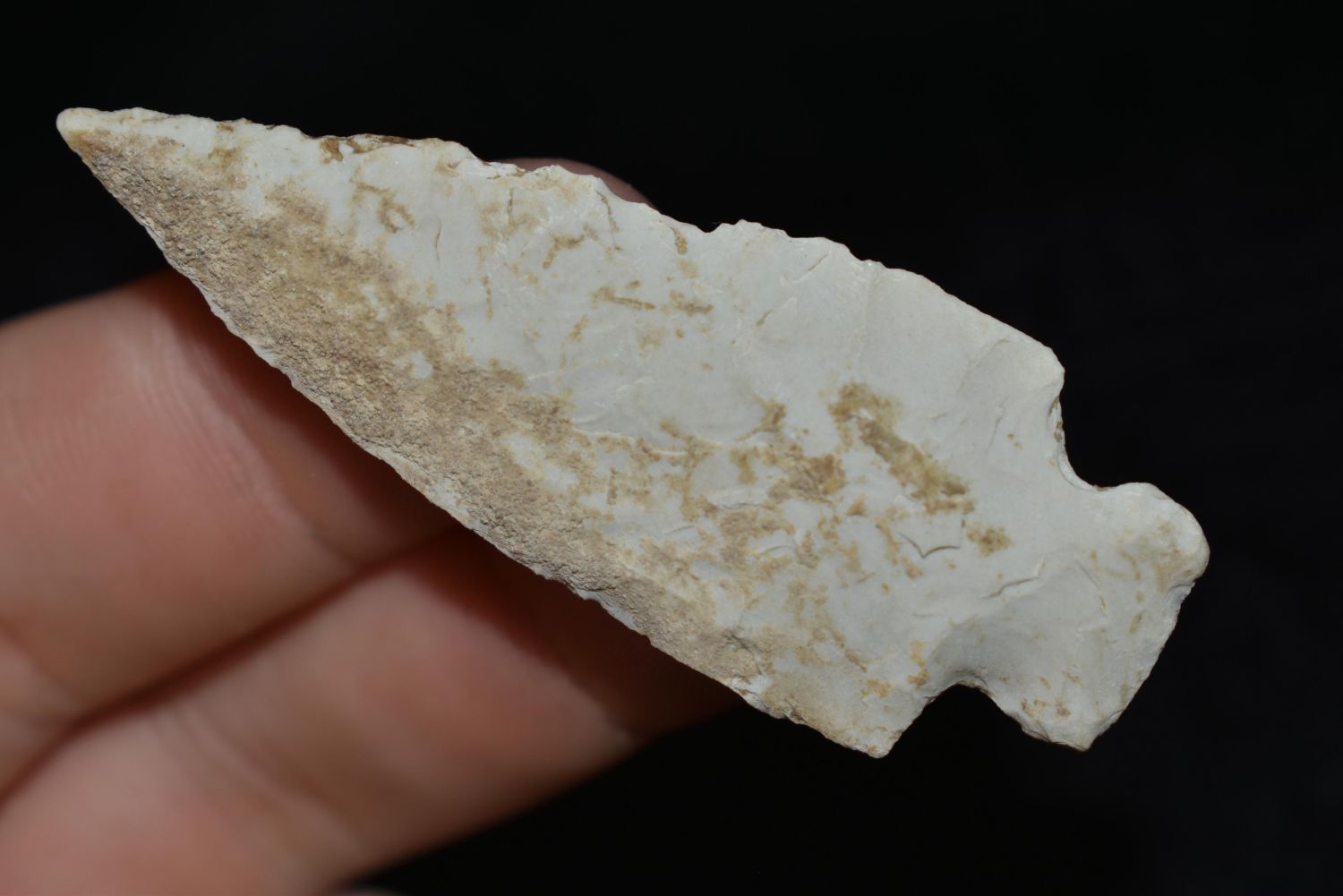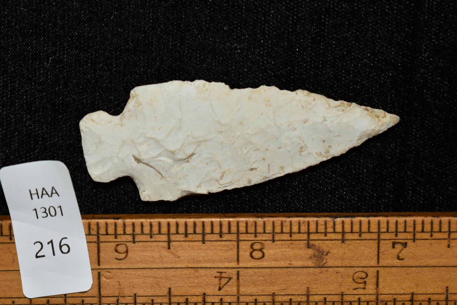 2 1/4" Hanna-Nothern, Found in Musselshell, Montana. Creel Poore was born and raised in Musselshell, Montana where he found his first arrowhead at a very early age. This led Creel on a lifetime search for Montana’s prehistoric past. Creel owned a ranch in Musselshell and collected from sites and in and around the Musselshell River and tributaries. Every piece in Creel’s collection is personally found. He did not purchase pieces, nor did he accept pieces as gifts. He took pride in the fact he found every piece. He also made the cedar frames from cedar trees that were cut on his ranch. Many of the pieces were collected from the buffalo jumps which were plentiful nearby