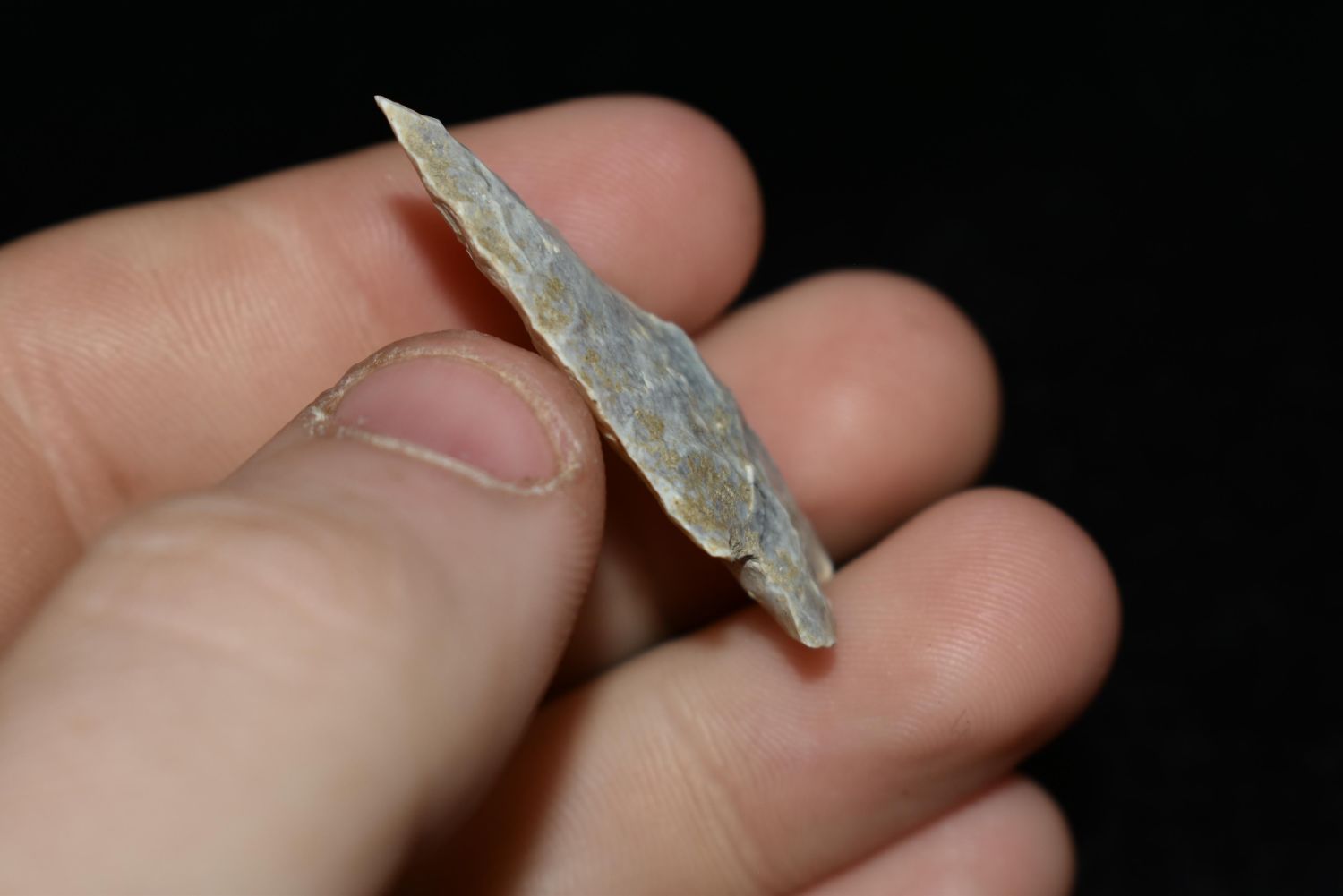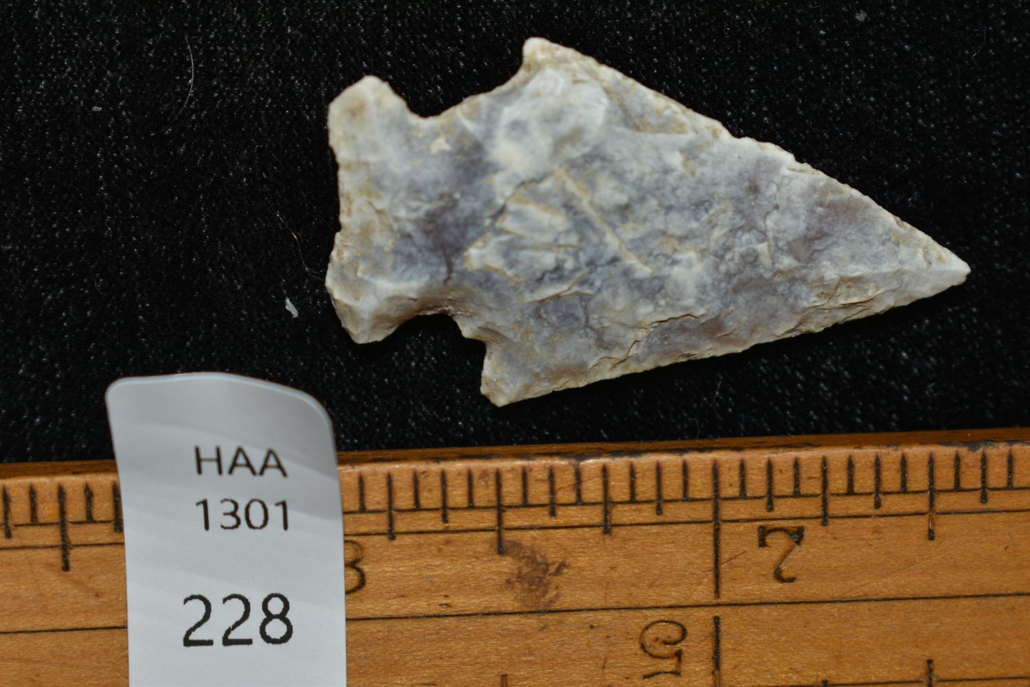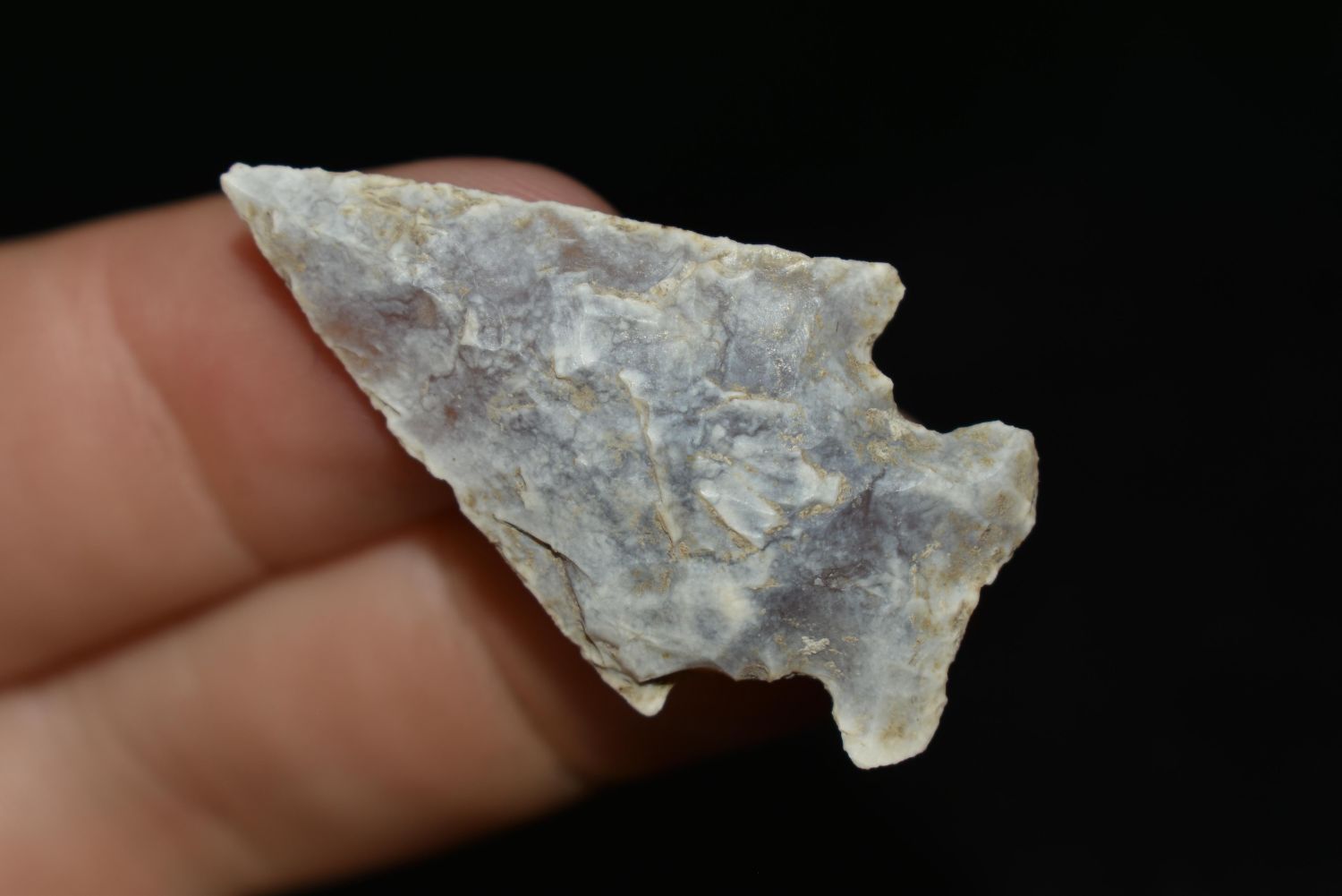 1 1/2" Pelican Lake, Found in Musselshell, Montana. Creel Poore was born and raised in Musselshell, Montana where he found his first arrowhead at a very early age. This led Creel on a lifetime search for Montana’s prehistoric past. Creel owned a ranch in Musselshell and collected from sites and in and around the Musselshell River and tributaries. Every piece in Creel’s collection is personally found. He did not purchase pieces, nor did he accept pieces as gifts. He took pride in the fact he found every piece. He also made the cedar frames from cedar trees that were cut on his ranch. Many of the pieces were collected from the buffalo jumps which were plentiful nearby