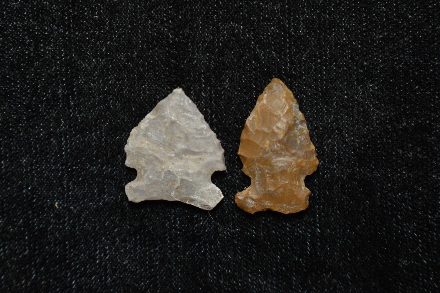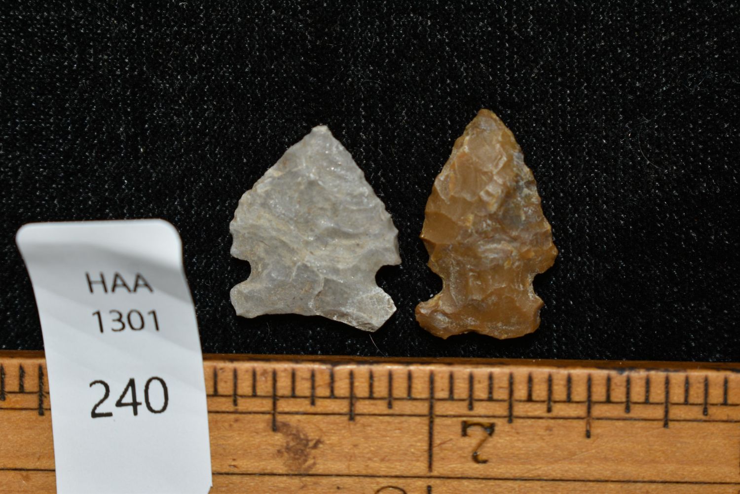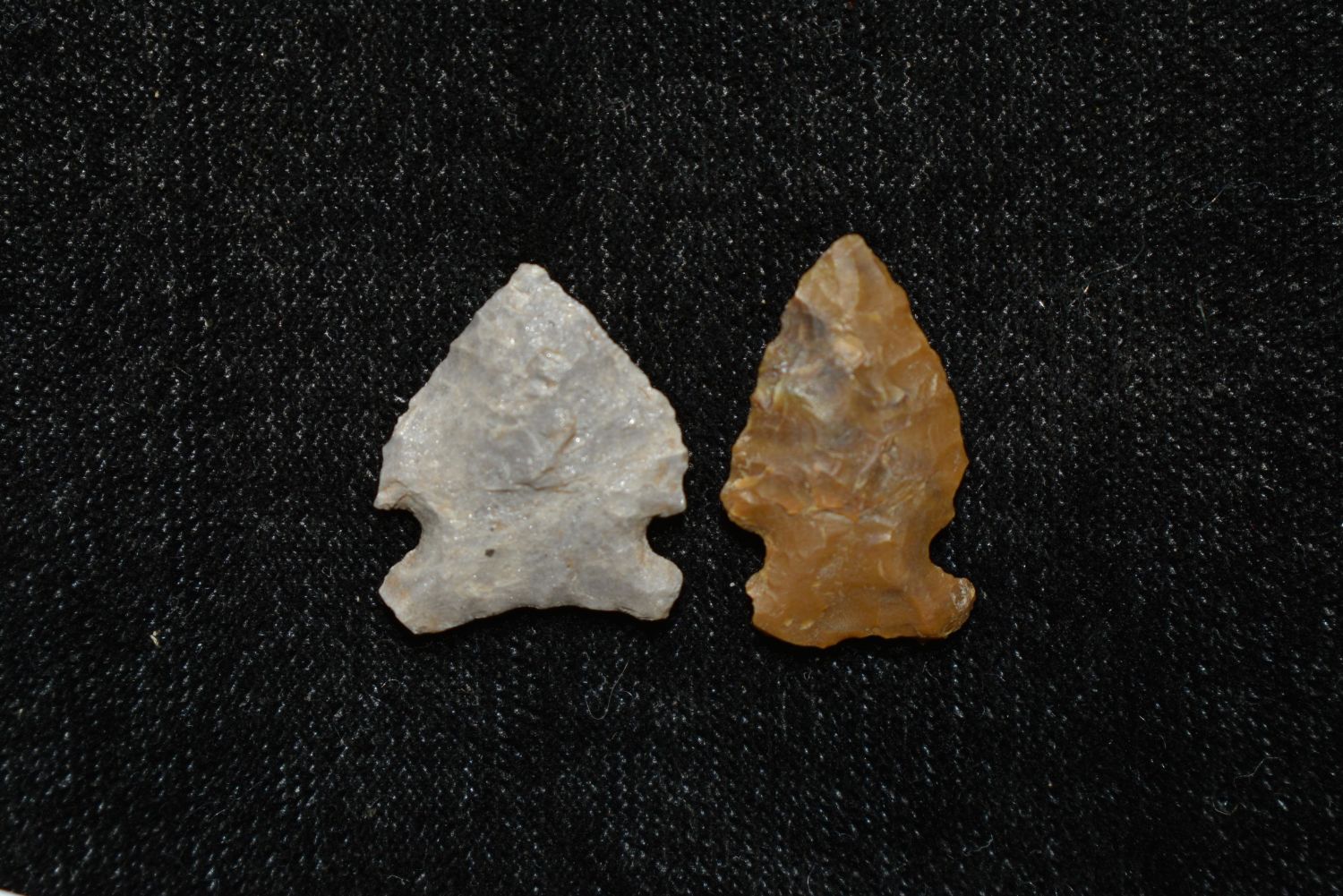 Lot of 2 Avonlea points, Found in Musselshell, Montana. Creel Poore was born and raised in Musselshell, Montana where he found his first arrowhead at a very early age. This led Creel on a lifetime search for Montana’s prehistoric past. Creel owned a ranch in Musselshell and collected from sites and in and around the Musselshell River and tributaries. Every piece in Creel’s collection is personally found. He did not purchase pieces, nor did he accept pieces as gifts. He took pride in the fact he found every piece. He also made the cedar frames from cedar trees that were cut on his ranch. Many of the pieces were collected from the buffalo jumps which were plentiful nearby