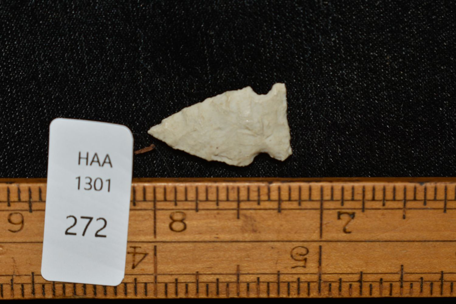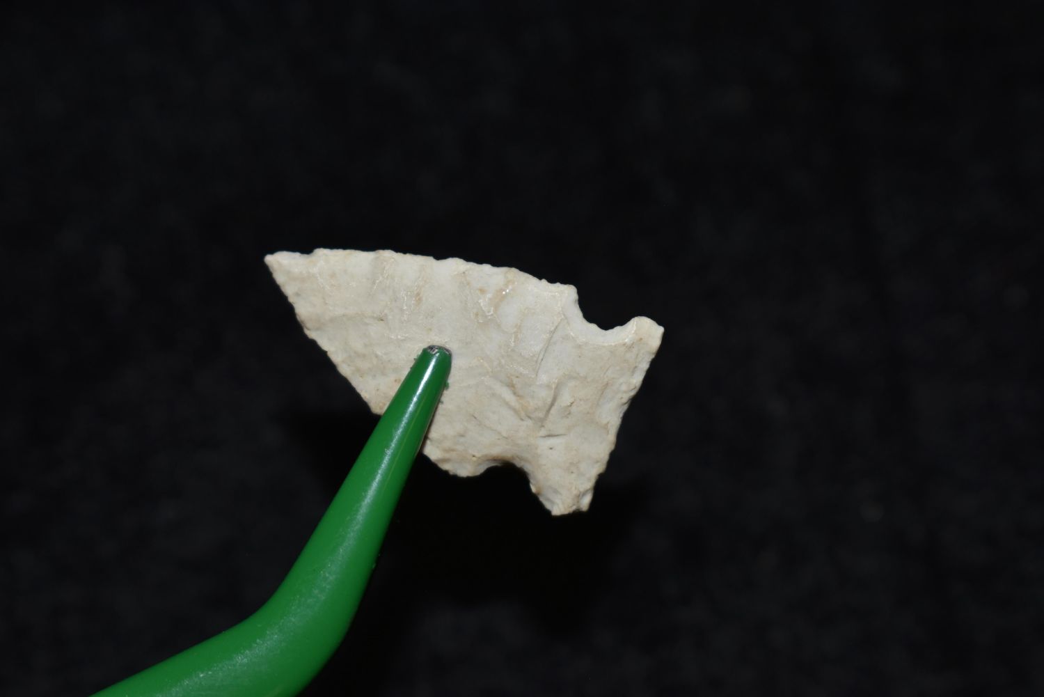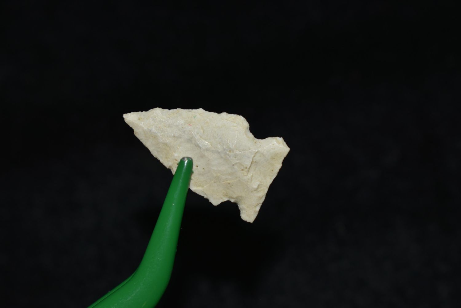 7/8" Besant point, Found in Musselshell, Montana. Creel Poore was born and raised in Musselshell, Montana where he found his first arrowhead at a very early age. This led Creel on a lifetime search for Montana’s prehistoric past. Creel owned a ranch in M