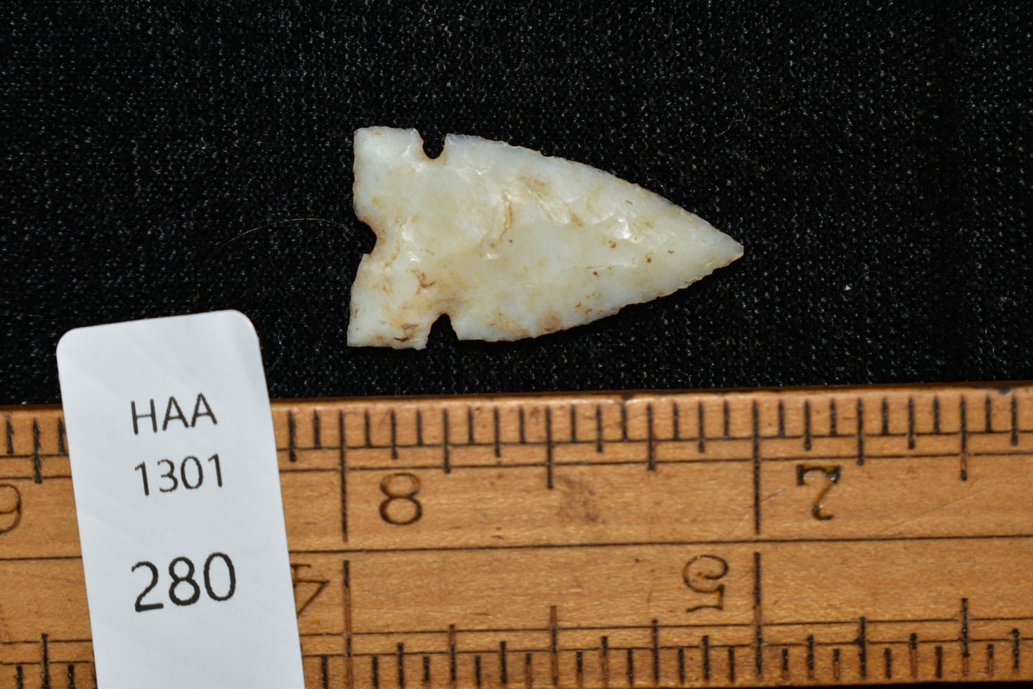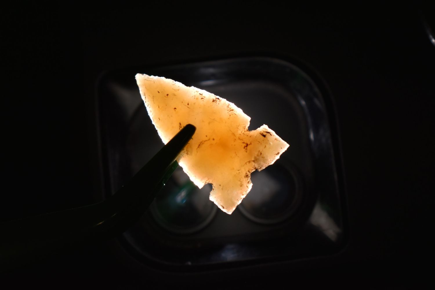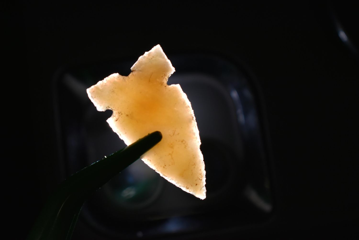 1" Billings Point, Found in Musselshell, Montana. Creel Poore was born and raised in Musselshell, Montana where he found his first arrowhead at a very early age. This led Creel on a lifetime search for Montana’s prehistoric past. Creel owned a ranch in Musselshell and collected from sites and in and around the Musselshell River and tributaries. Every piece in Creel’s collection is personally found. He did not purchase pieces, nor did he accept pieces as gifts. He took pride in the fact he found every piece. He also made the cedar frames from cedar trees that were cut on his ranch. Many of the pieces were collected from the buffalo jumps which were plentiful nearby