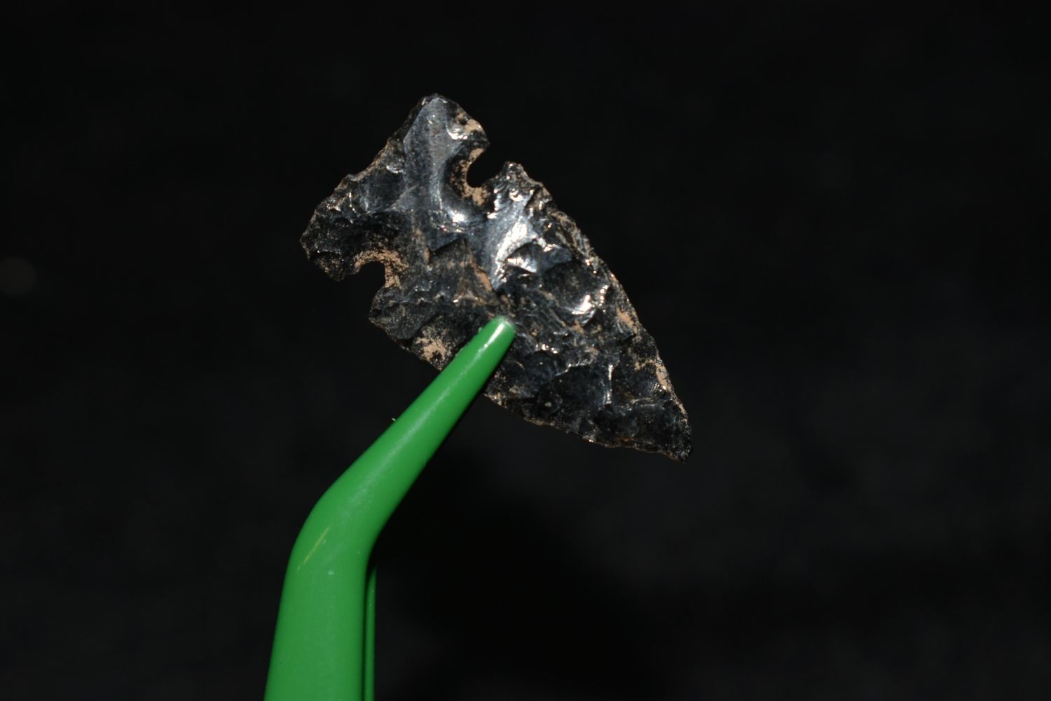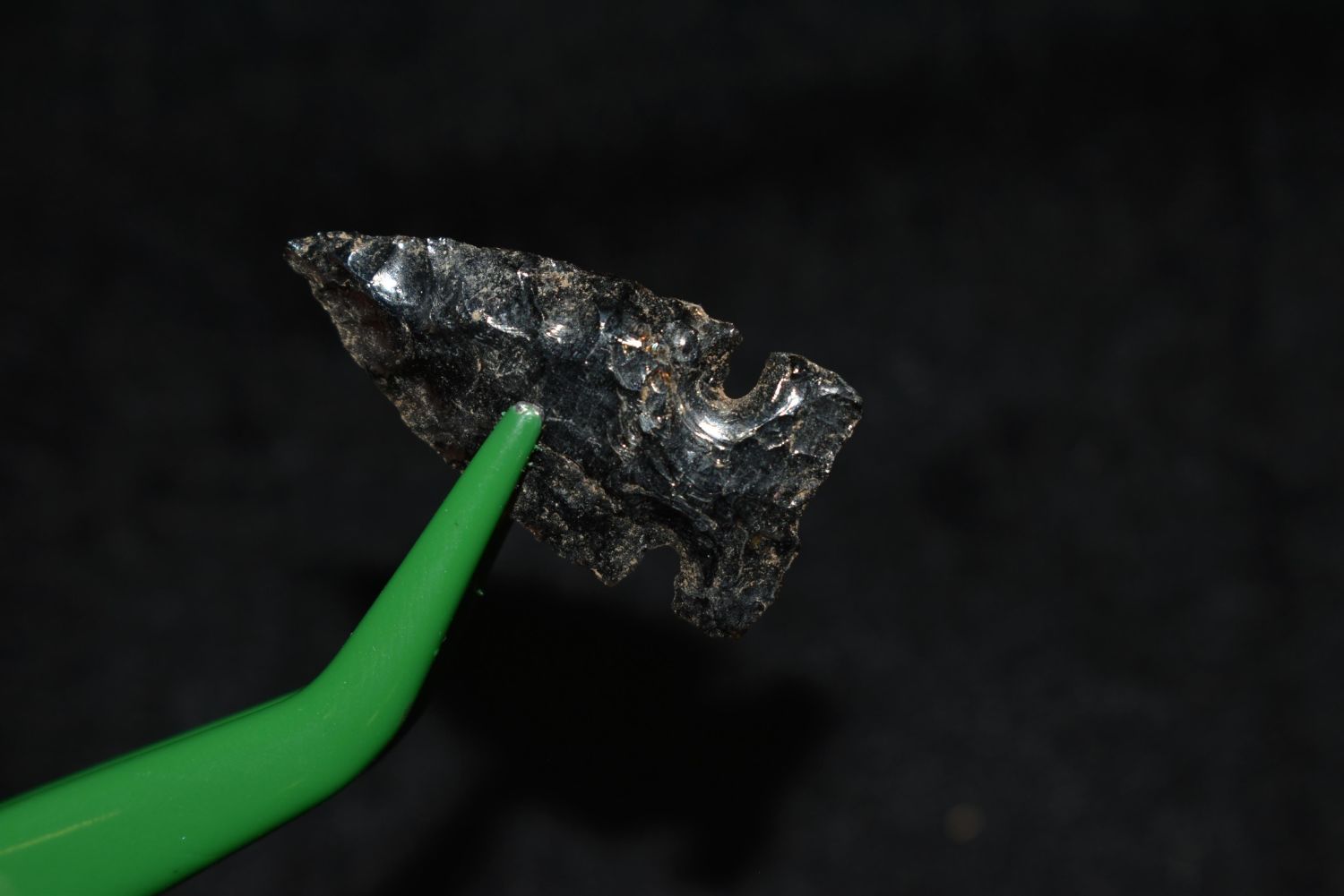 1" Prairie Side Notch Point, Found in Musselshell, Montana. Creel Poore was born and raised in Musselshell, Montana where he found his first arrowhead at a very early age. This led Creel on a lifetime search for Montana’s prehistoric past. Creel owned a ranch in Musselshell and collected from sites and in and around the Musselshell River and tributaries. Every piece in Creel’s collection is personally found. He did not purchase pieces, nor did he accept pieces as gifts. He took pride in the fact he found every piece. He also made the cedar frames from cedar trees that were cut on his ranch. Many of the pieces were collected from the buffalo jumps which were plentiful nearby