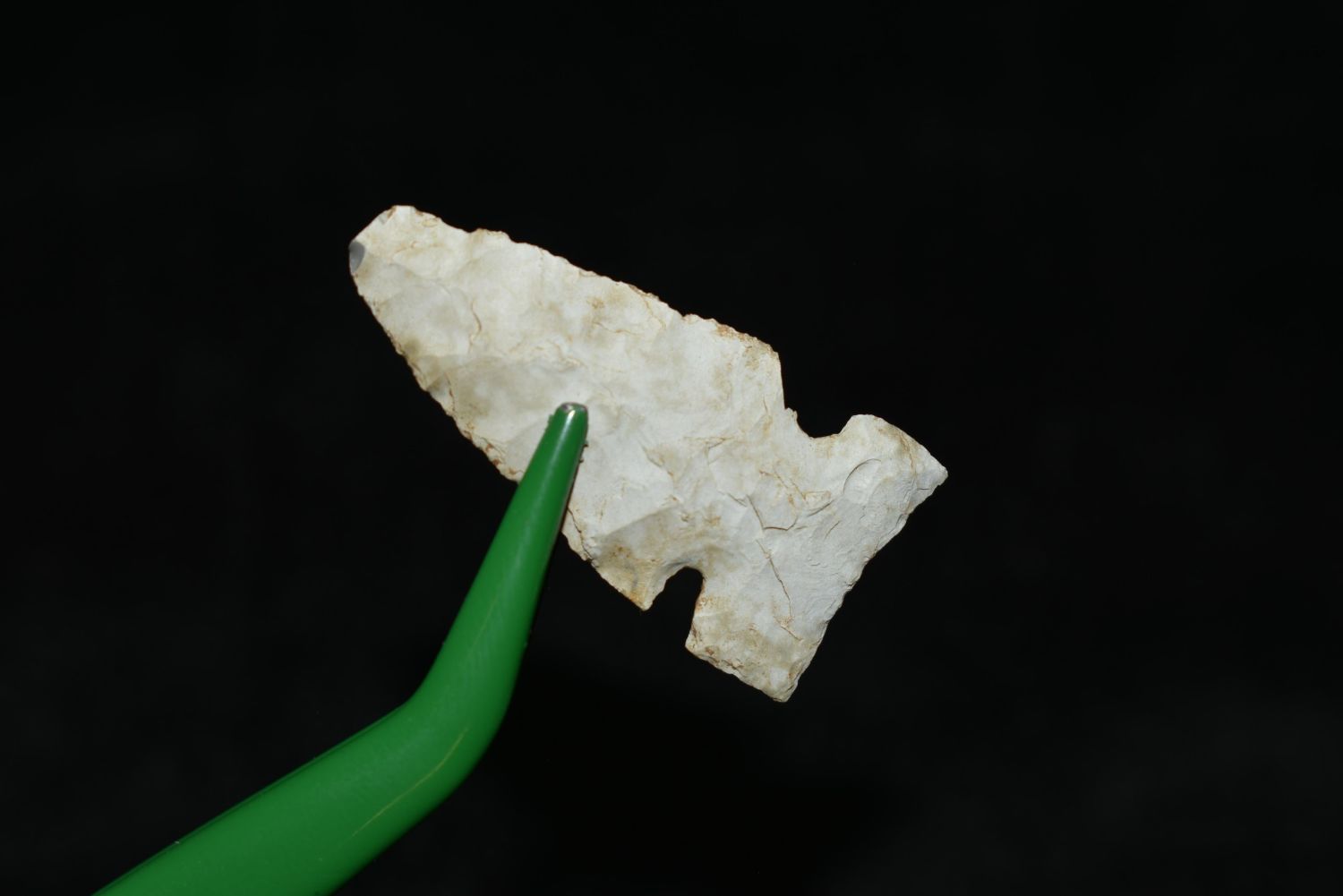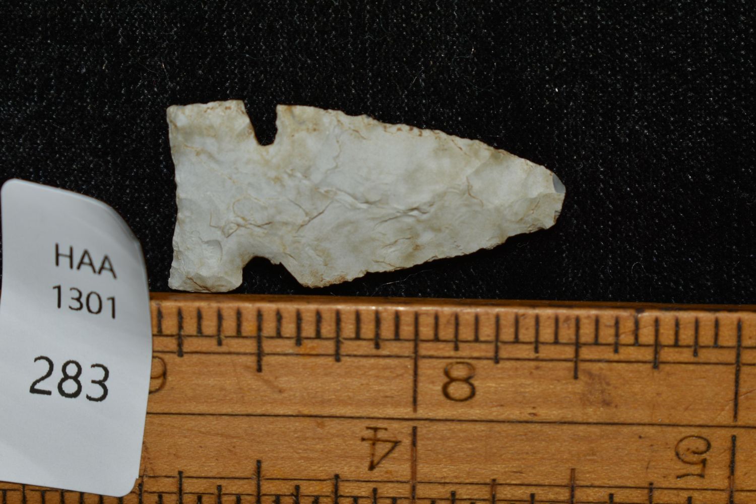 1 1/4" Prairie Side Notch Points, Found in Musselshell, Montana. Creel Poore was born and raised in Musselshell, Montana where he found his first arrowhead at a very early age. This led Creel on a lifetime search for Montana’s prehistoric past. Creel owned a ranch in Musselshell and collected from sites and in and around the Musselshell River and tributaries. Every piece in Creel’s collection is personally found. He did not purchase pieces, nor did he accept pieces as gifts. He took pride in the fact he found every piece. He also made the cedar frames from cedar trees that were cut on his ranch. Many of the pieces were collected from the buffalo jumps which were plentiful nearby