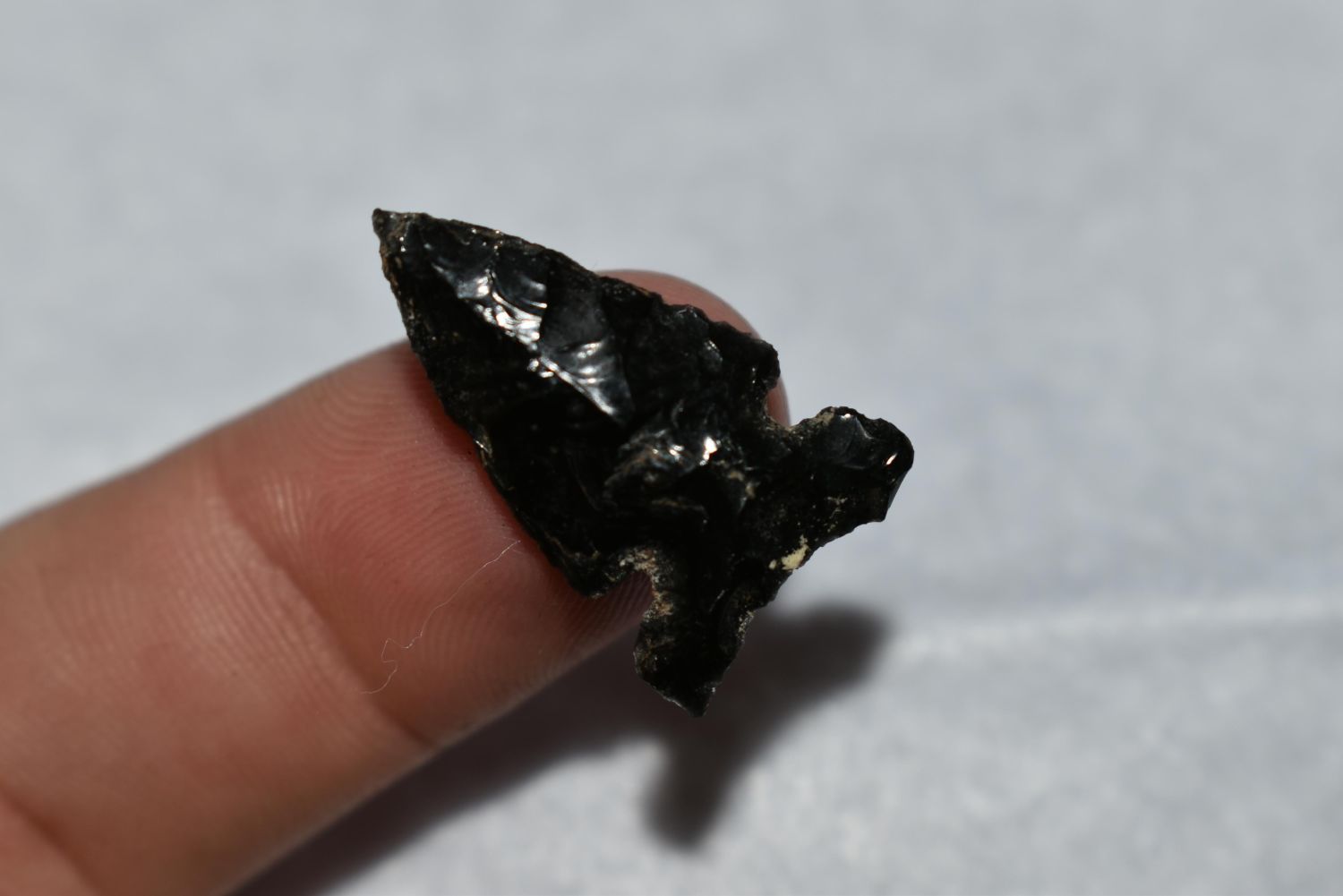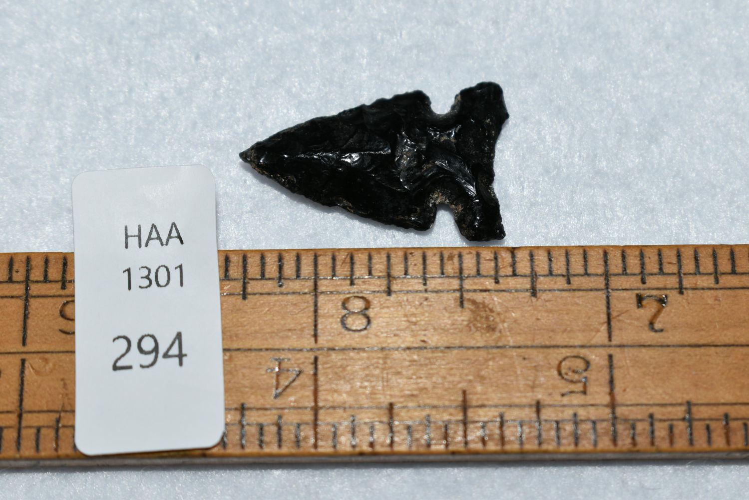1 7/8" Avonlea Point, Found in Musselshell, Montana. Creel Poore was born and raised in Musselshell, Montana where he found his first arrowhead at a very early age. This led Creel on a lifetime search for Montana’s prehistoric past. Creel owned a ranch in Musselshell and collected from sites and in and around the Musselshell River and tributaries. Every piece in Creel’s collection is personally found. He did not purchase pieces, nor did he accept pieces as gifts. He took pride in the fact he found every piece. He also made the cedar frames from cedar trees that were cut on his ranch. Many of the pieces were collected from the buffalo jumps which were plentiful nearby
