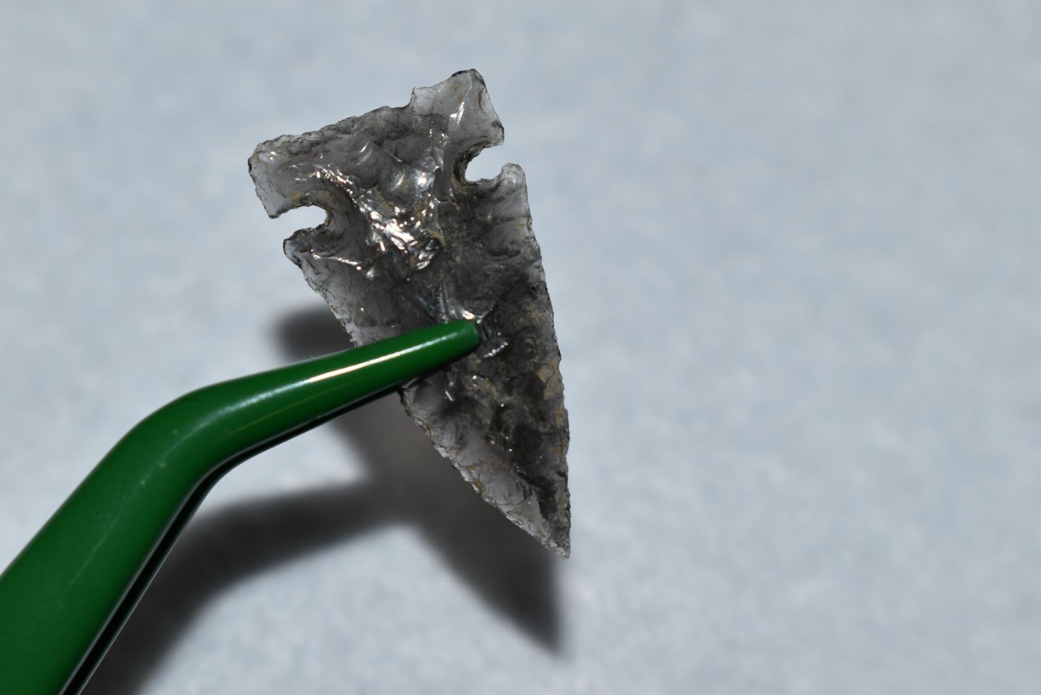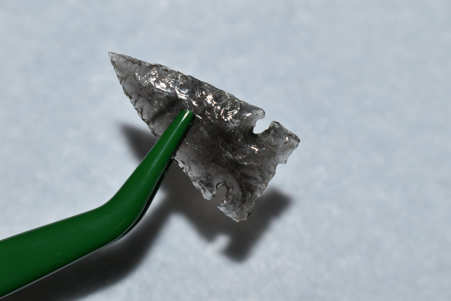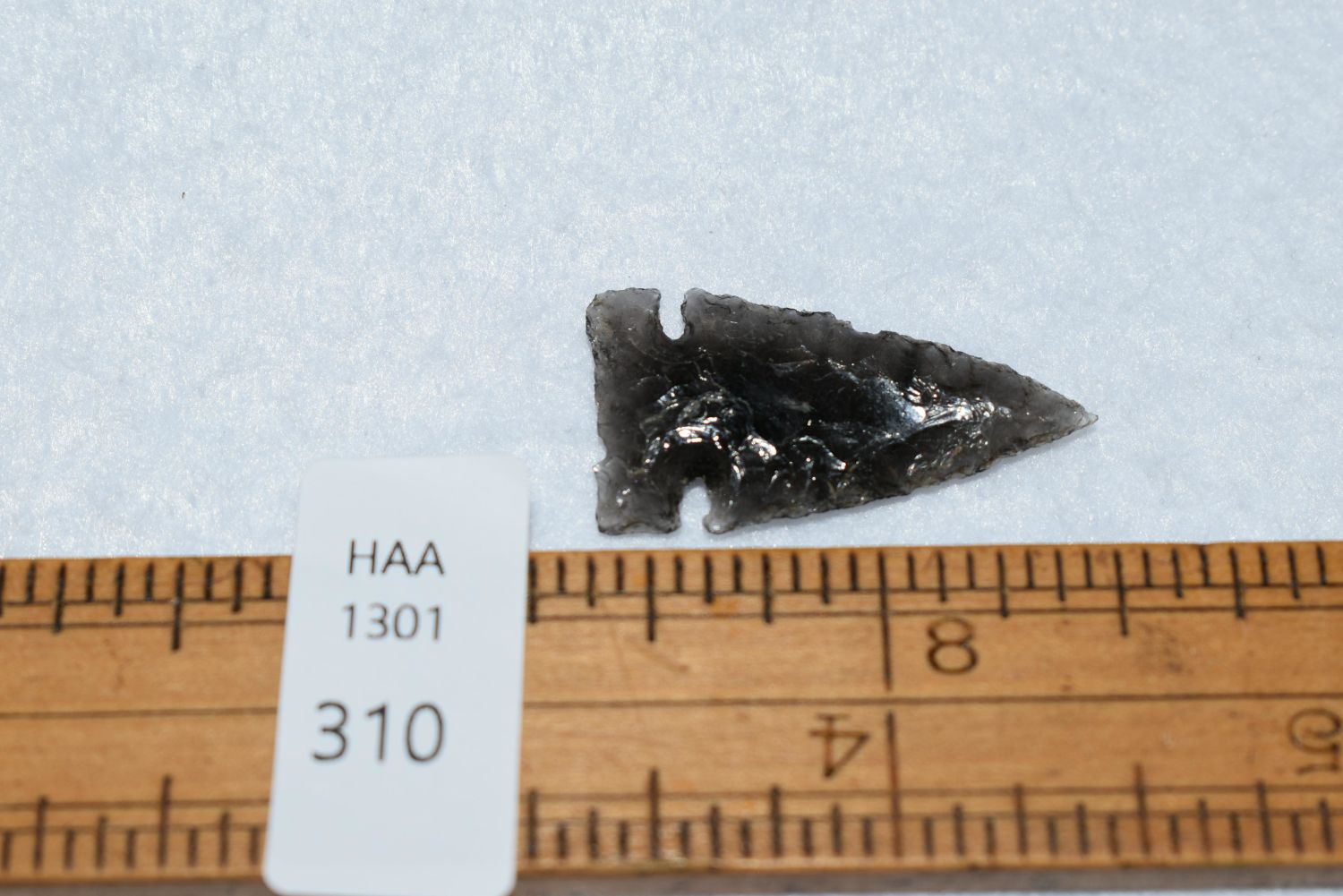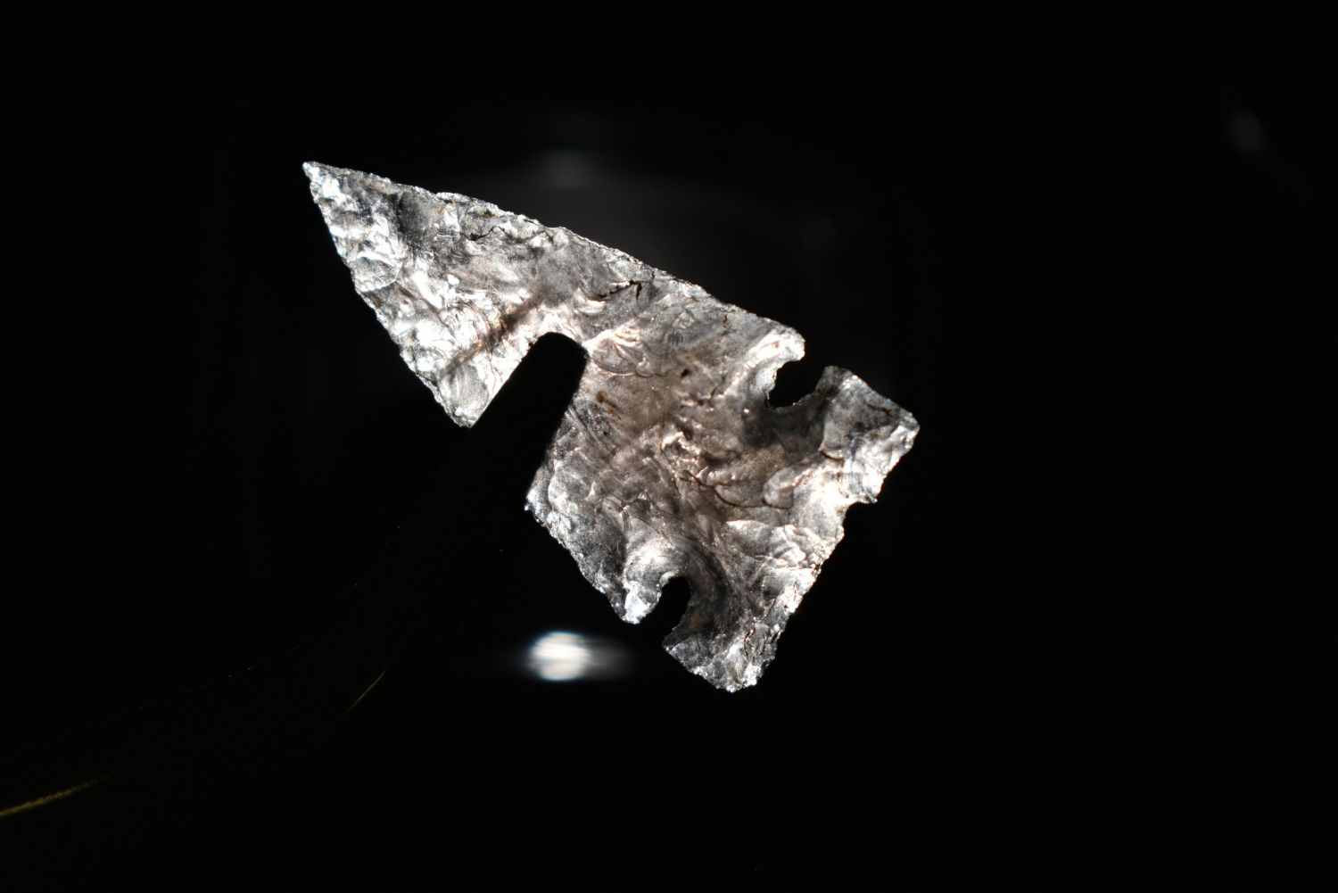 1/8" Avonlea Point, Obsidian, Found in Musselshell, Montana. Creel Poore was born and raised in Musselshell, Montana where he found his first arrowhead at a very early age. This led Creel on a lifetime search for Montana’s prehistoric past. Creel owned a ranch in Musselshell and collected from sites and in and around the Musselshell River and tributaries. Every piece in Creel’s collection is personally found. He did not purchase pieces, nor did he accept pieces as gifts. He took pride in the fact he found every piece. He also made the cedar frames from cedar trees that were cut on his ranch. Many of the pieces were collected from the buffalo jumps which were plentiful nearby