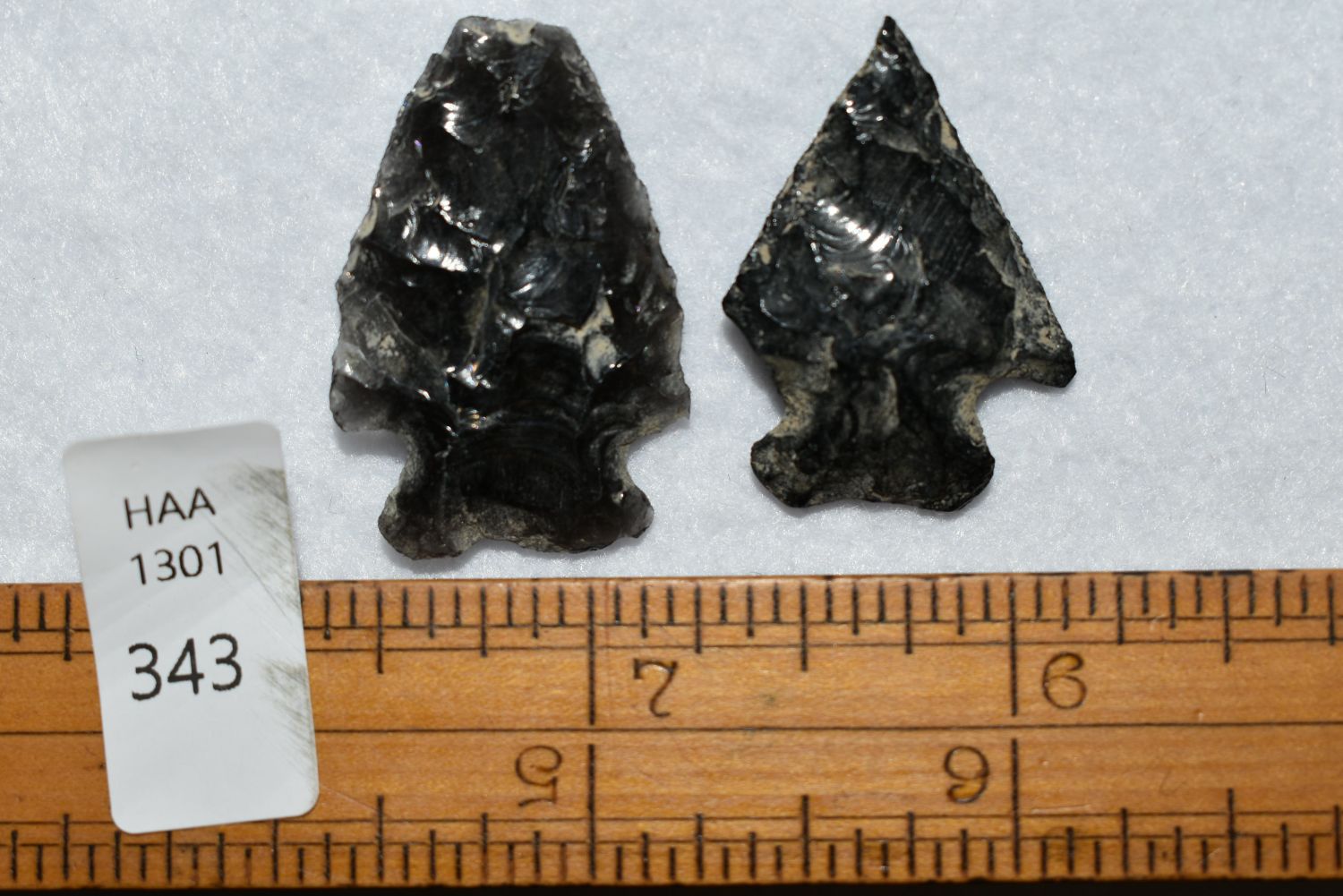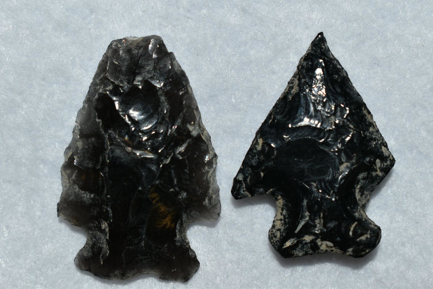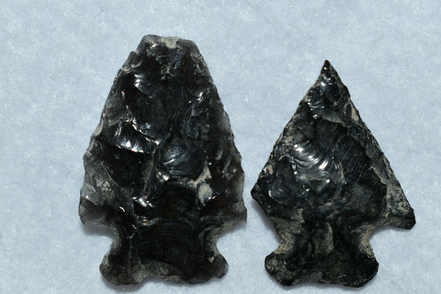 Lot of 2 Pelican Lake Points, Found in Musselshell, Montana. Creel Poore was born and raised in Musselshell, Montana where he found his first arrowhead at a very early age. This led Creel on a lifetime search for Montana’s prehistoric past. Creel owned a ranch in Musselshell and collected from sites and in and around the Musselshell River and tributaries. Every piece in Creel’s collection is personally found. He did not purchase pieces, nor did he accept pieces as gifts. He took pride in the fact he found every piece. He also made the cedar frames from cedar trees that were cut on his ranch. Many of the pieces were collected from the buffalo jumps which were plentiful nearby