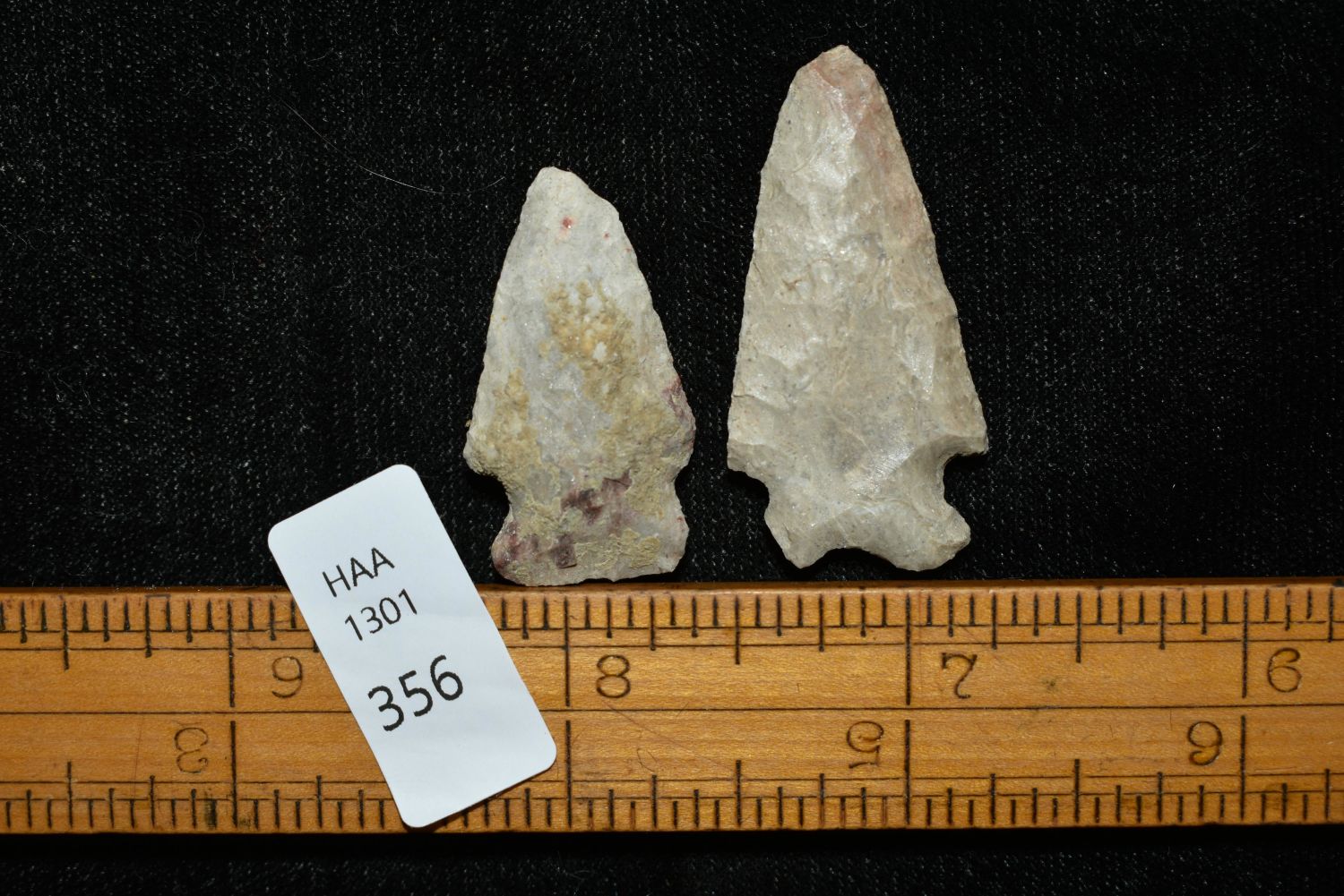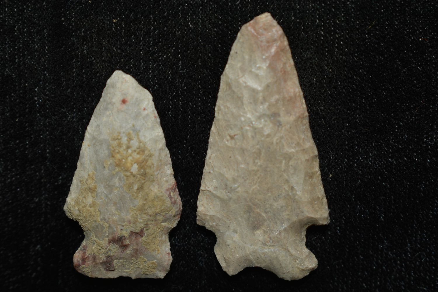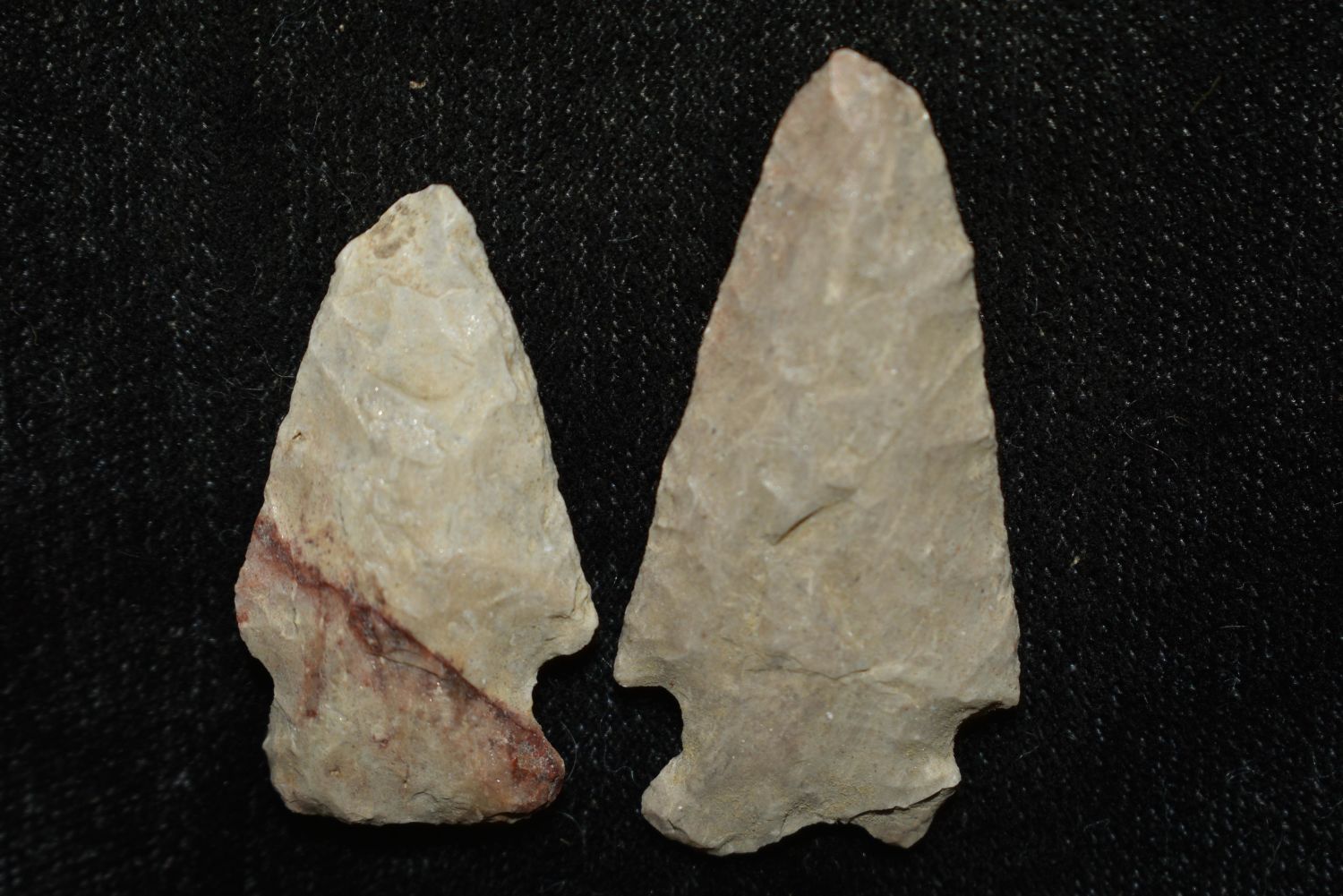 Lot of 2, Besant Point, Emigrant Point, Found in Musselshell, Montana. Creel Poore was born and raised in Musselshell, Montana where he found his first arrowhead at a very early age. This led Creel on a lifetime search for Montana’s prehistoric past. Creel owned a ranch in Musselshell and collected from sites and in and around the Musselshell River and tributaries. Every piece in Creel’s collection is personally found. He did not purchase pieces, nor did he accept pieces as gifts. He took pride in the fact he found every piece. He also made the cedar frames from cedar trees that were cut on his ranch. Many of the pieces were collected from the buffalo jumps which were plentiful nearby