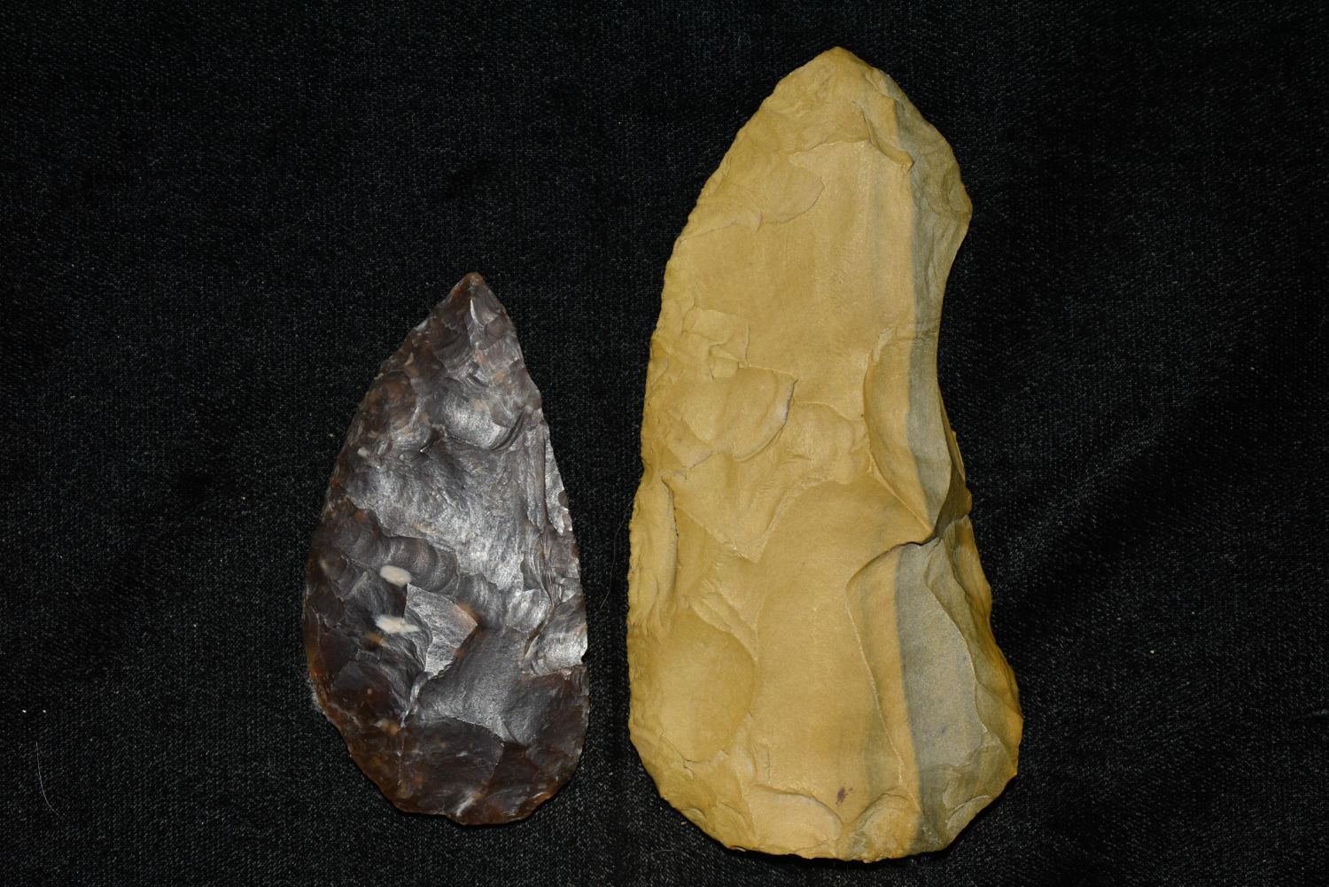 Lot of 2 Blades, Knife River Flint, 4 1/2" Porcellanite, Found in Musselshell, Montana. Creel Poore was born and raised in Musselshell, Montana where he found his first arrowhead at a very early age. This led Creel on a lifetime search for Montana’s prehistoric past. Creel owned a ranch in Musselshell and collected from sites and in and around the Musselshell River and tributaries. Every piece in Creel’s collection is personally found. He did not purchase pieces, nor did he accept pieces as gifts. He took pride in the fact he found every piece. He also made the cedar frames from cedar trees that were cut on his ranch. Many of the pieces were collected from the buffalo jumps which were plentiful nearby