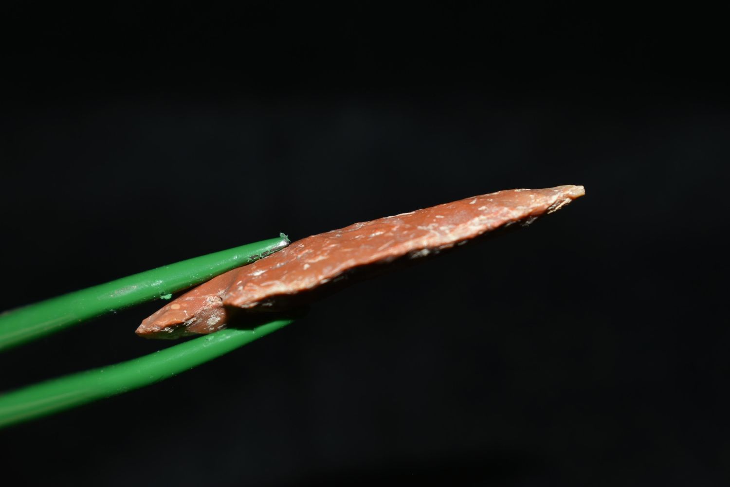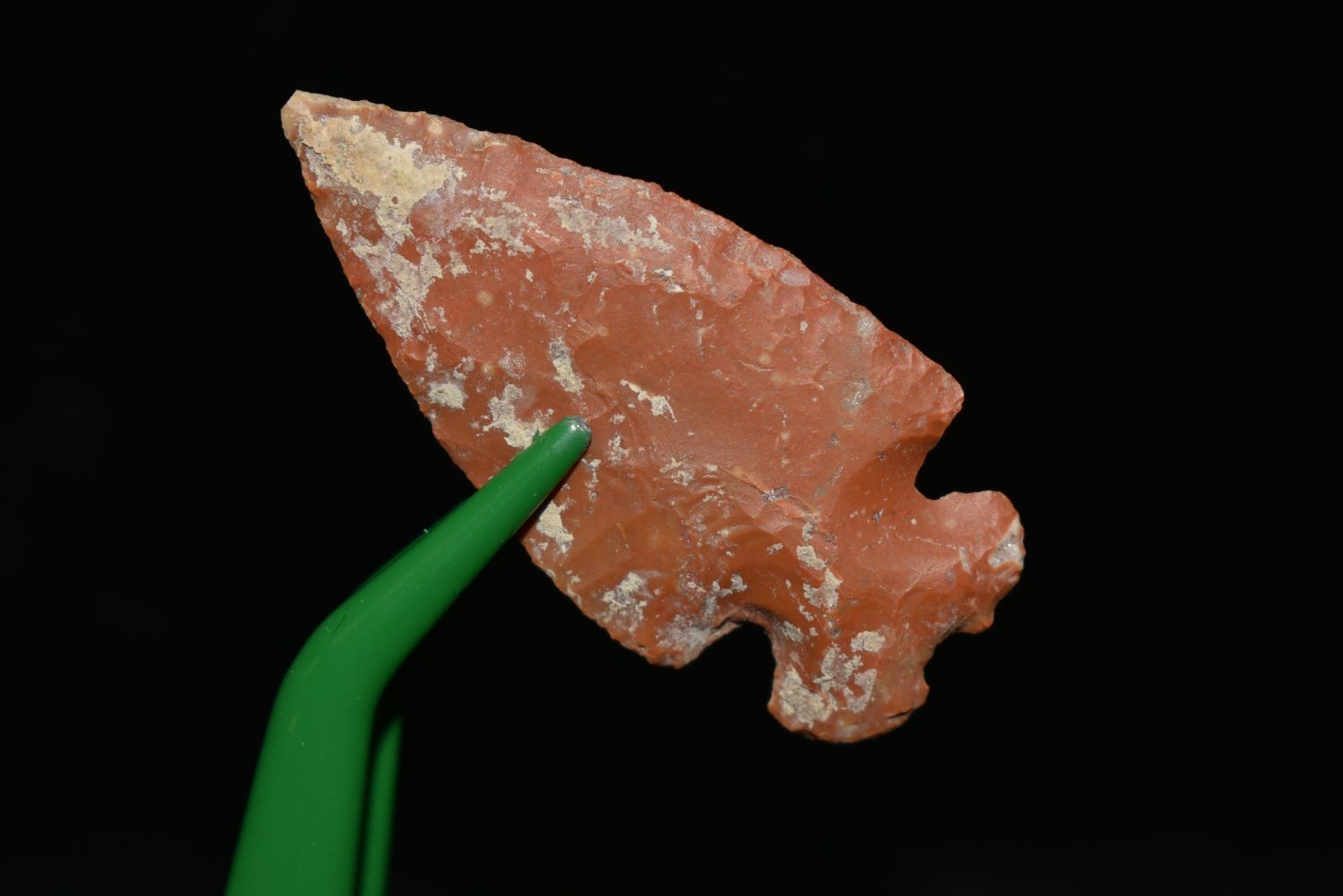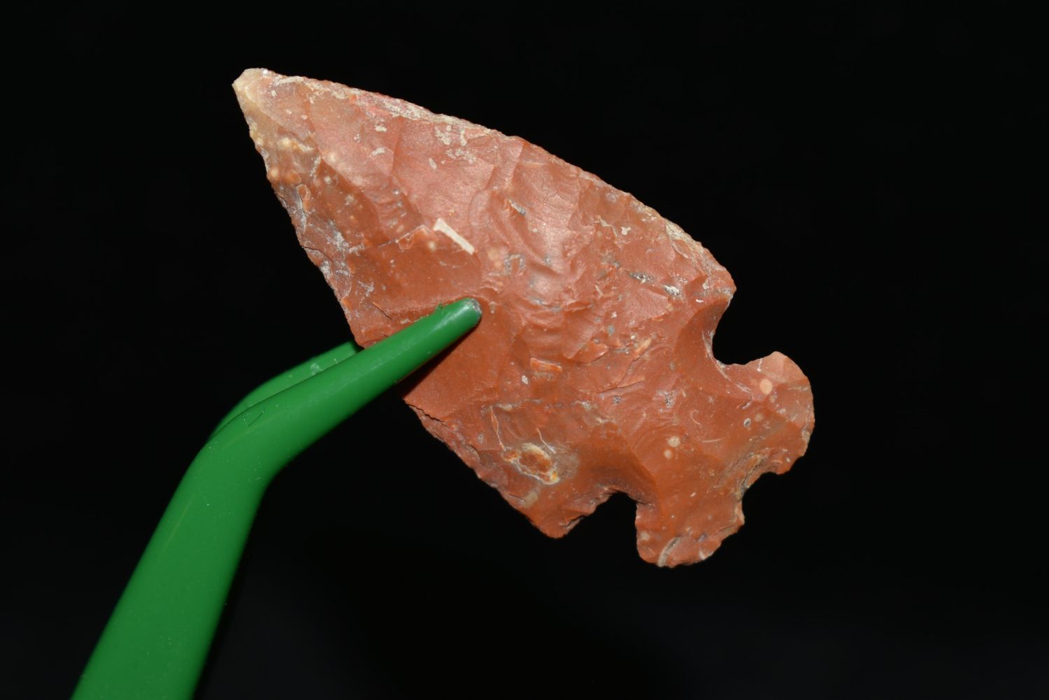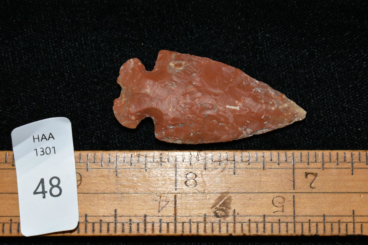 1 1/5" Emigrant point Creel Poore was born and raised in Musselshell, Montana where he found his first arrowhead at a very early age. This led Creel on a lifetime search for Montana’s prehistoric past. Creel owned a ranch in Musselshell and collected from sites and in and around the Musselshell River and tributaries. Every piece in Creel’s collection is personally found. He did not purchase pieces, nor did he accept pieces as gifts. He took pride in the fact he found every piece. He also made the cedar frames from cedar trees that were cut on his ranch. Many of the pieces were collected from the buffalo jumps which were plentiful nearby