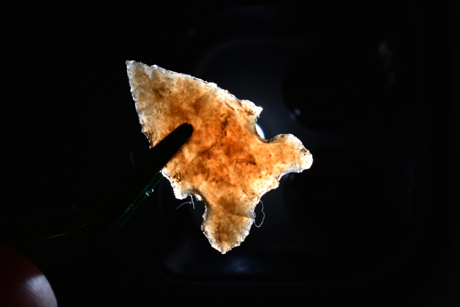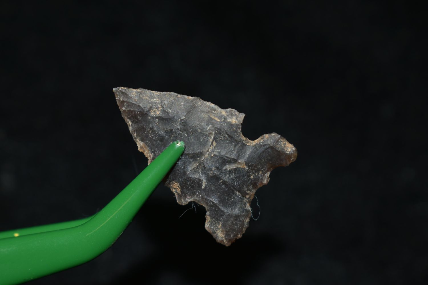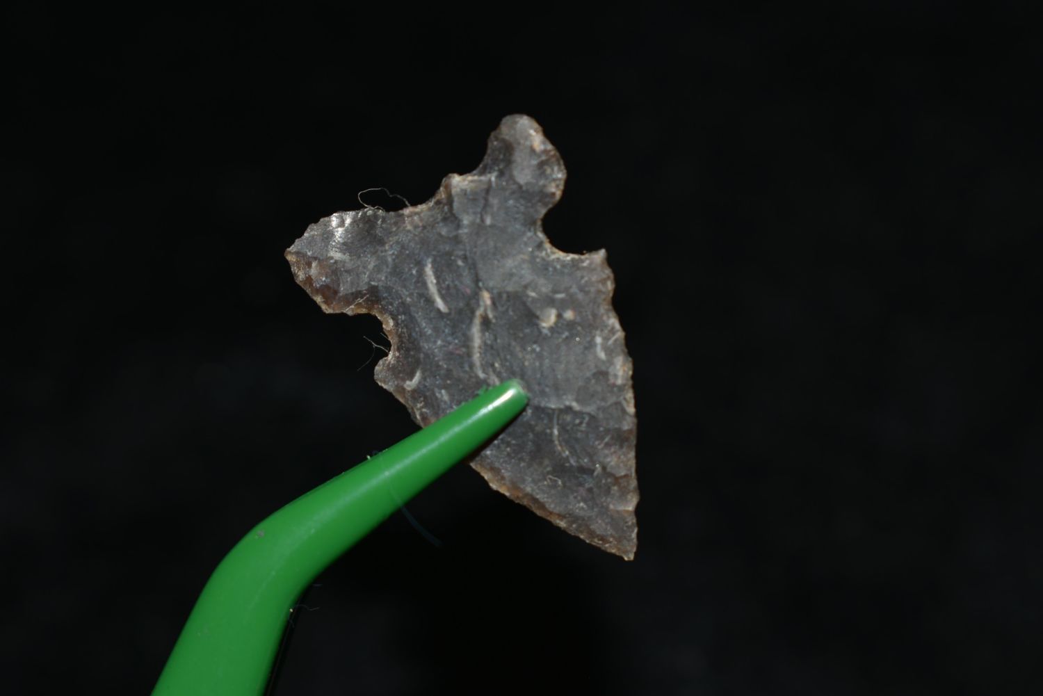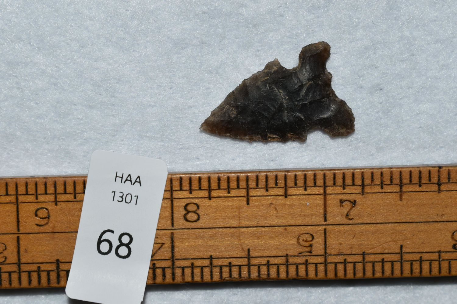 1" Avonlea point – made out of Qaurtzite material. Found in Musselshell, Montana. Creel Poore was born and raised in Musselshell, Montana where he found his first arrowhead at a very early age. This led Creel on a lifetime search for Montana’s prehistoric past. Creel owned a ranch in Musselshell and collected from sites and in and around the Musselshell River and tributaries. Every piece in Creel’s collection is personally found. He did not purchase pieces, nor did he accept pieces as gifts. He took pride in the fact he found every piece. He also made the cedar frames from cedar trees that were cut on his ranch. Many of the pieces were collected from the buffalo jumps which were plentiful nearby