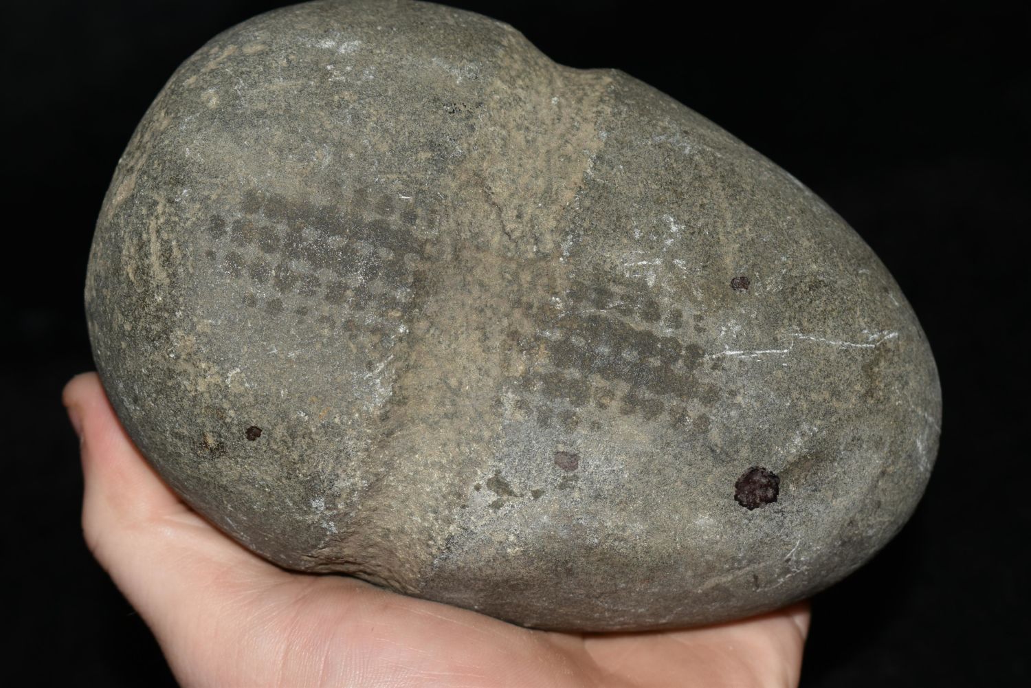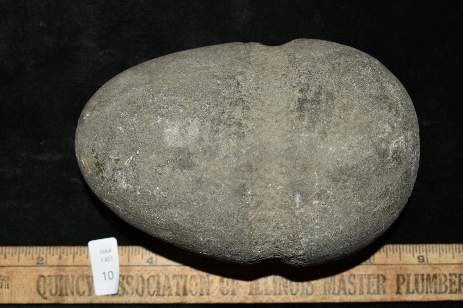5 1/2" Grooved Hammerstone, Musselshell, MT, Creel Poore was born and raised in Musselshell, Montana where he found his first arrowhead at a very early age. This led Creel on a lifetime search for Montana’s prehistoric past. Creel owned a ranch in Musselshell and collected from sites and in and around the Musselshell River and tributaries. Every piece in Creel’s collection is personally found. He did not purchase pieces, nor did he accept pieces as gifts. He took pride in the fact he found every piece. He also made the cedar frames from cedar trees that were cut on his ranch. Many of the pieces were collected from the buffalo jumps which were plentiful nearby