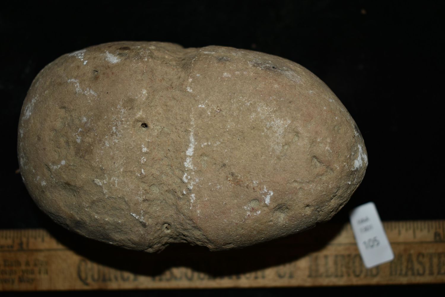 4 3/4" Grooved Hammerstone, Musselshell, MT, Creel Poore was born and raised in Musselshell, Montana where he found his first arrowhead at a very early age. This led Creel on a lifetime search for Montana’s prehistoric past. Creel owned a ranch in Musselshell and collected from sites and in and around the Musselshell River and tributaries. Every piece in Creel’s collection is personally found. He did not purchase pieces, nor did he accept pieces as gifts. He took pride in the fact he found every piece. He also made the cedar frames from cedar trees that were cut on his ranch. Many of the pieces were collected from the buffalo jumps which were plentiful nearby