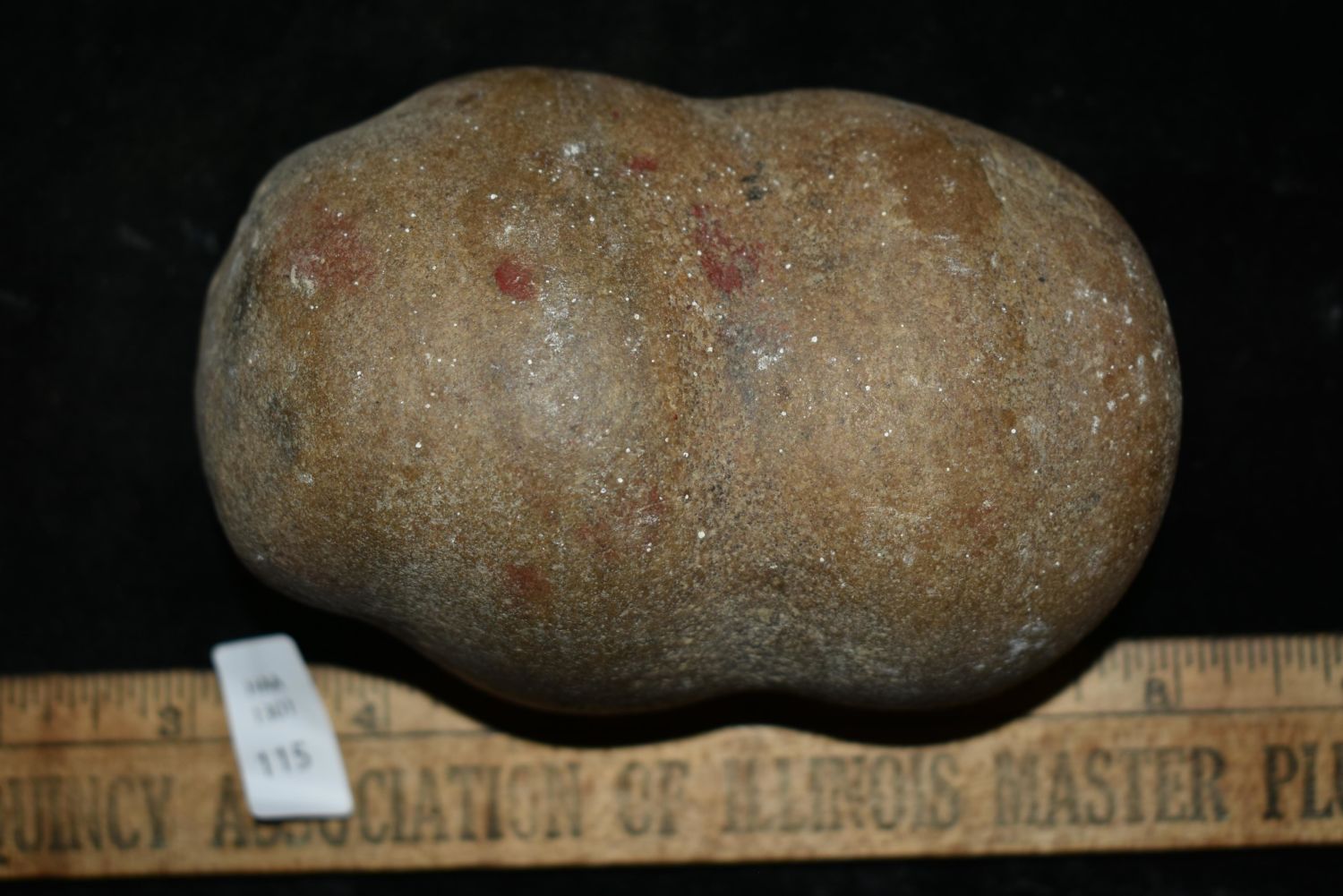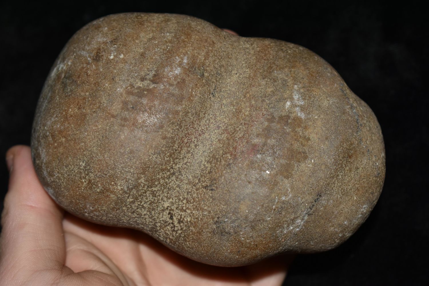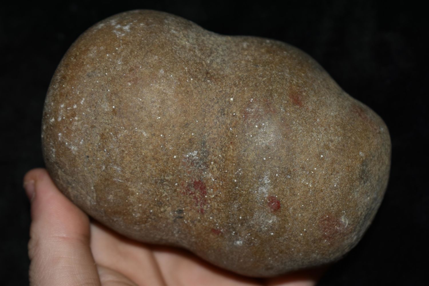 4 1/2" Grooved Maul, Musselshell, MT, Creel Poore was born and raised in Musselshell, Montana where he found his first arrowhead at a very early age. This led Creel on a lifetime search for Montana’s prehistoric past. Creel owned a ranch in Musselshell and collected from sites and in and around the Musselshell River and tributaries. Every piece in Creel’s collection is personally found. He did not purchase pieces, nor did he accept pieces as gifts. He took pride in the fact he found every piece. He also made the cedar frames from cedar trees that were cut on his ranch. Many of the pieces were collected from the buffalo jumps which were plentiful nearby