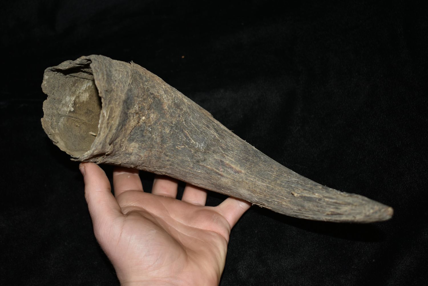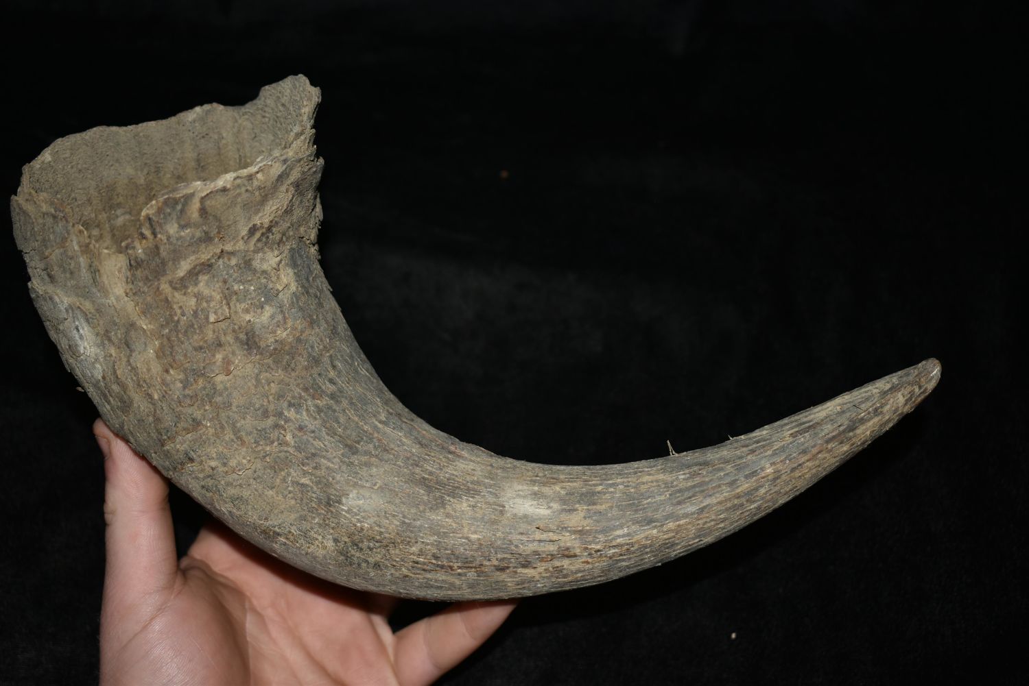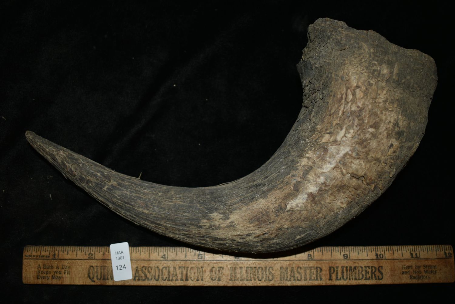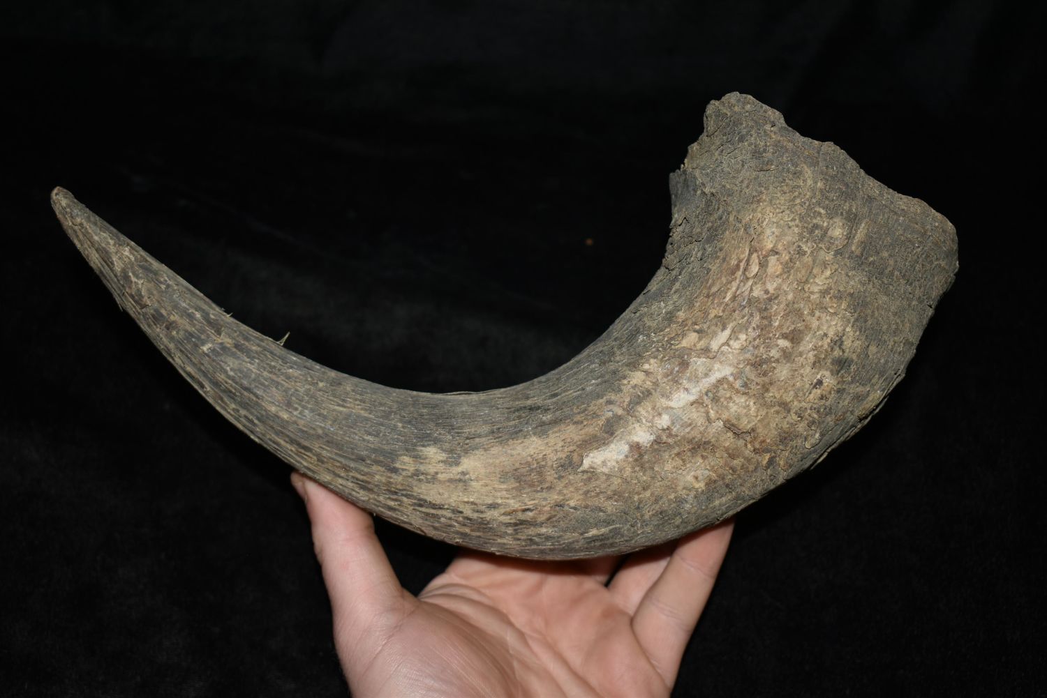 10 1/4" Buffalo Horn, Musselshell, MT, Creel Poore was born and raised in Musselshell, Montana where he found his first arrowhead at a very early age. This led Creel on a lifetime search for Montana’s prehistoric past. Creel owned a ranch in Musselshell and collected from sites and in and around the Musselshell River and tributaries. Every piece in Creel’s collection is personally found. He did not purchase pieces, nor did he accept pieces as gifts. He took pride in the fact he found every piece. He also made the cedar frames from cedar trees that were cut on his ranch. Many of the pieces were collected from the buffalo jumps which were plentiful nearby